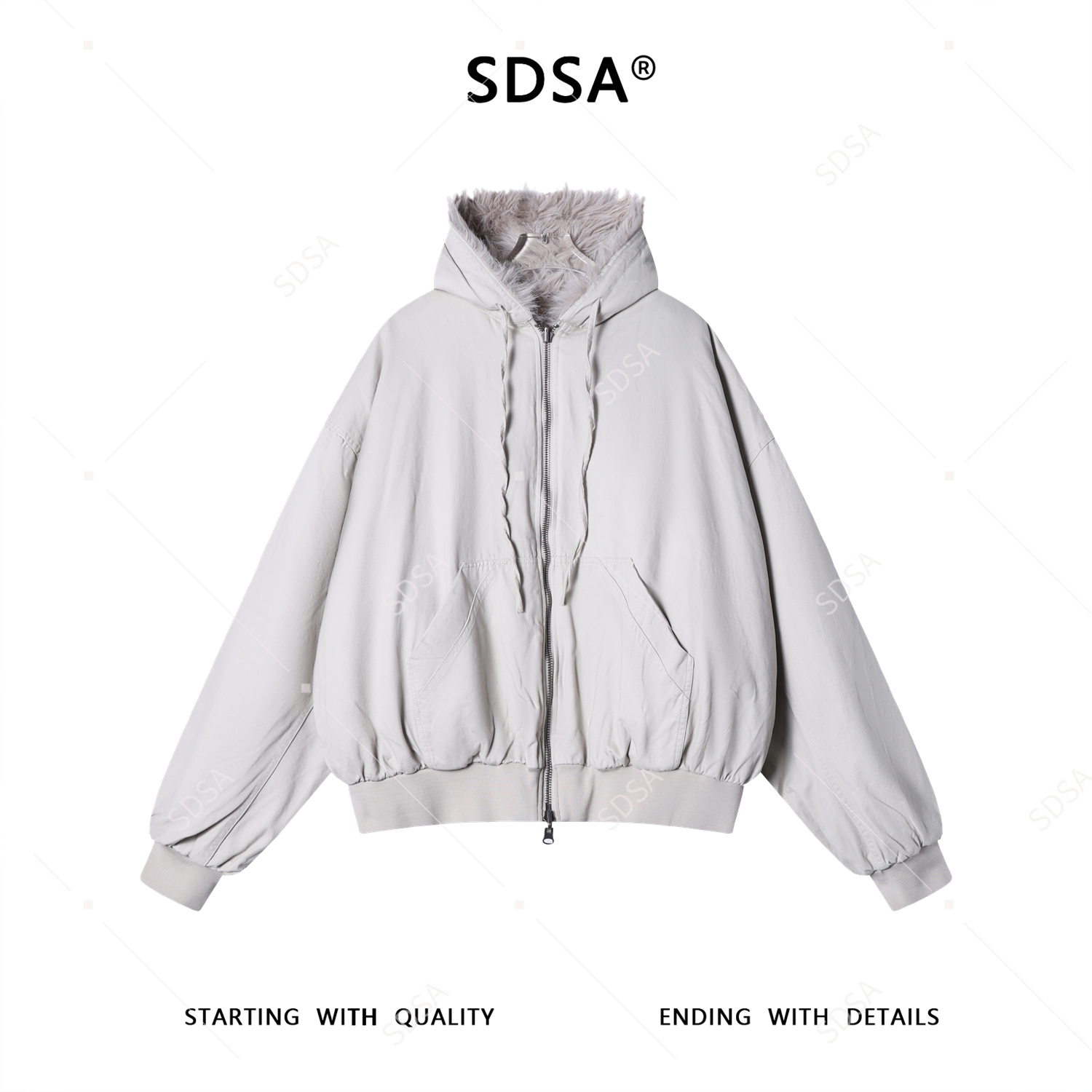 FC0034SDSA男士秋冬新款痞帅男装美式复古简约毛毛双面可穿连帽卫衣外套