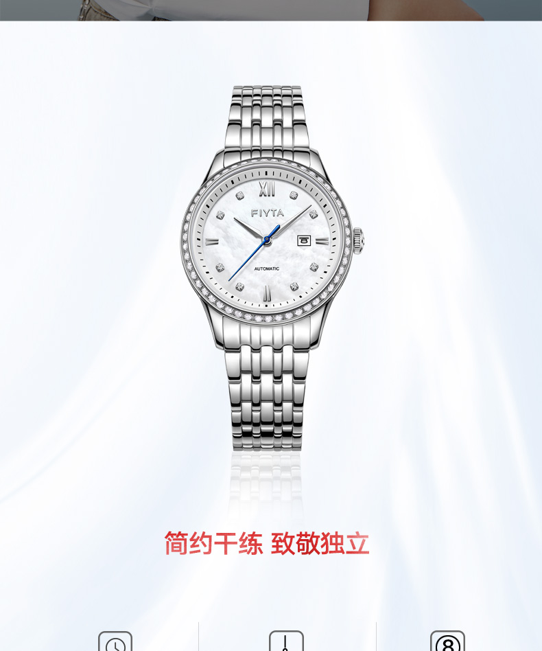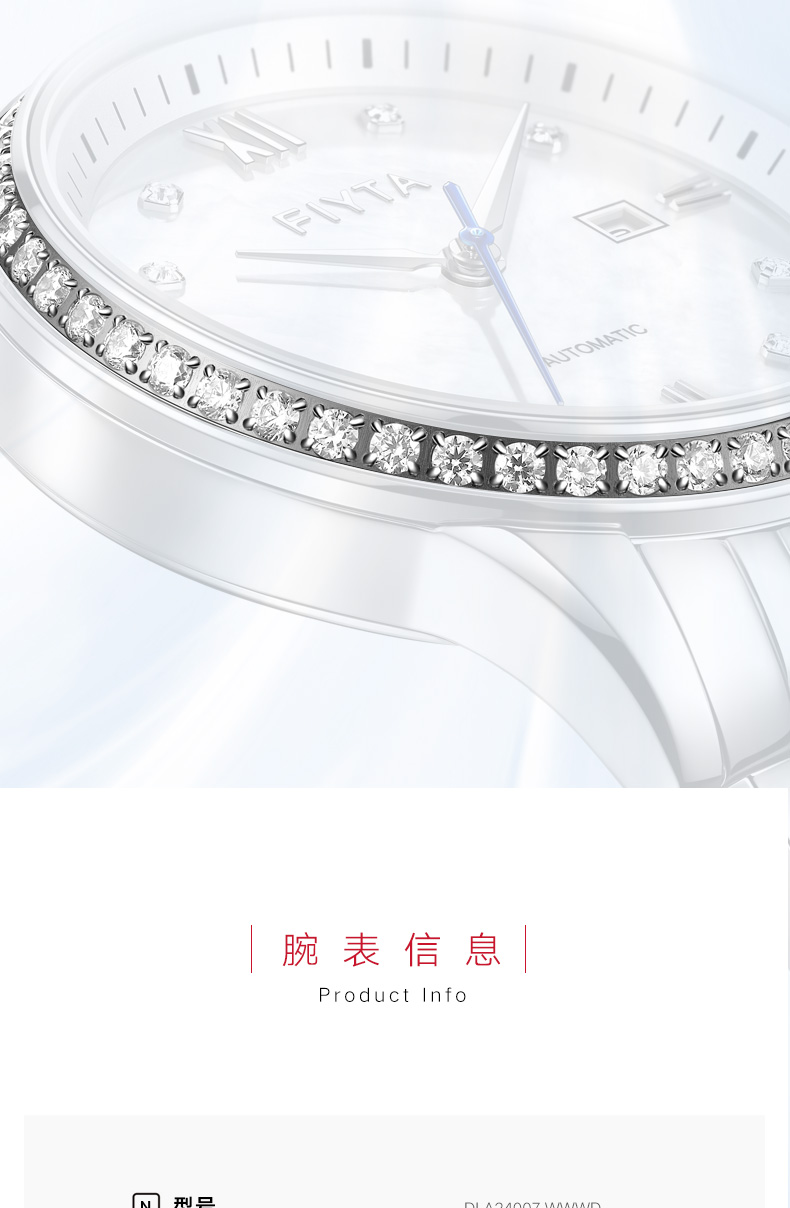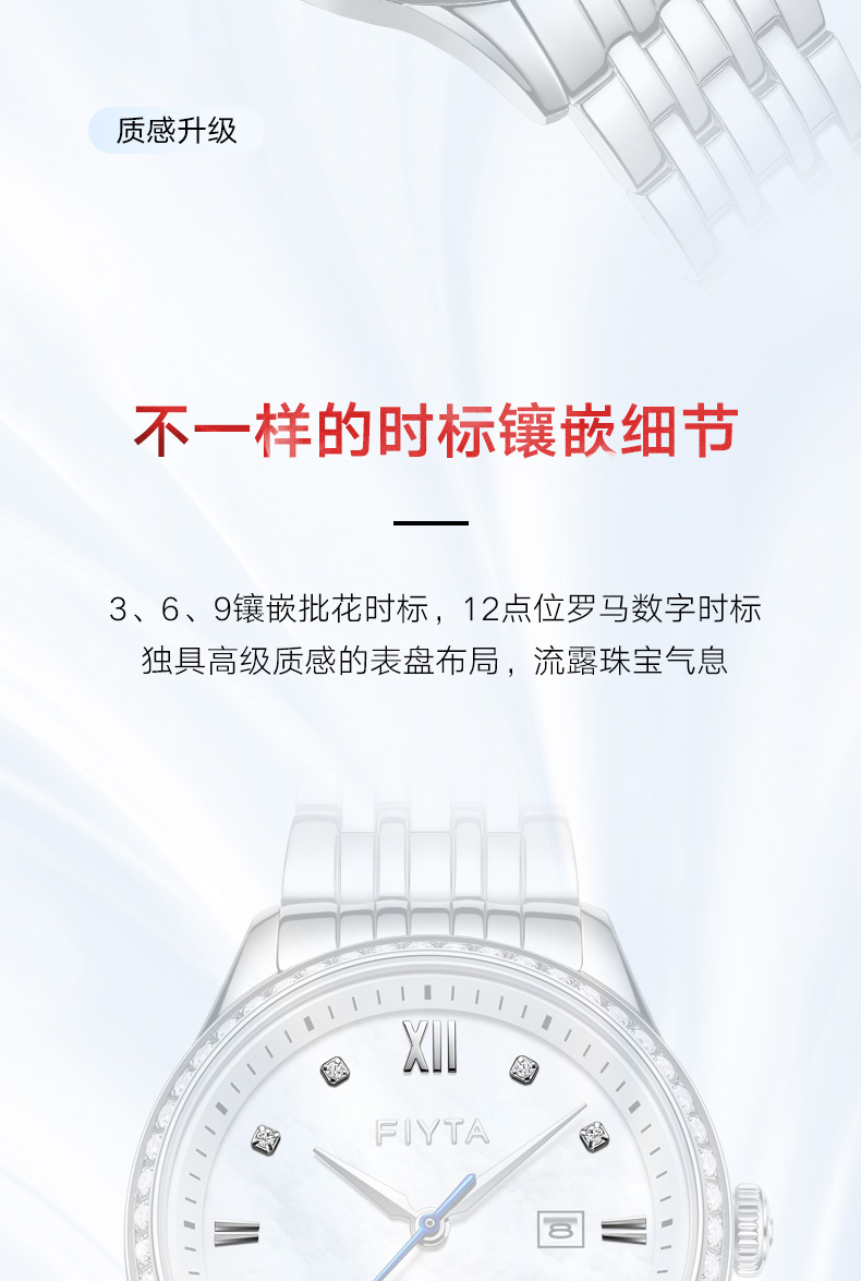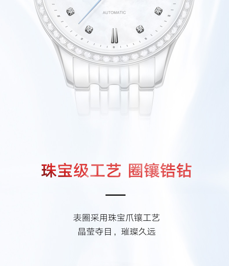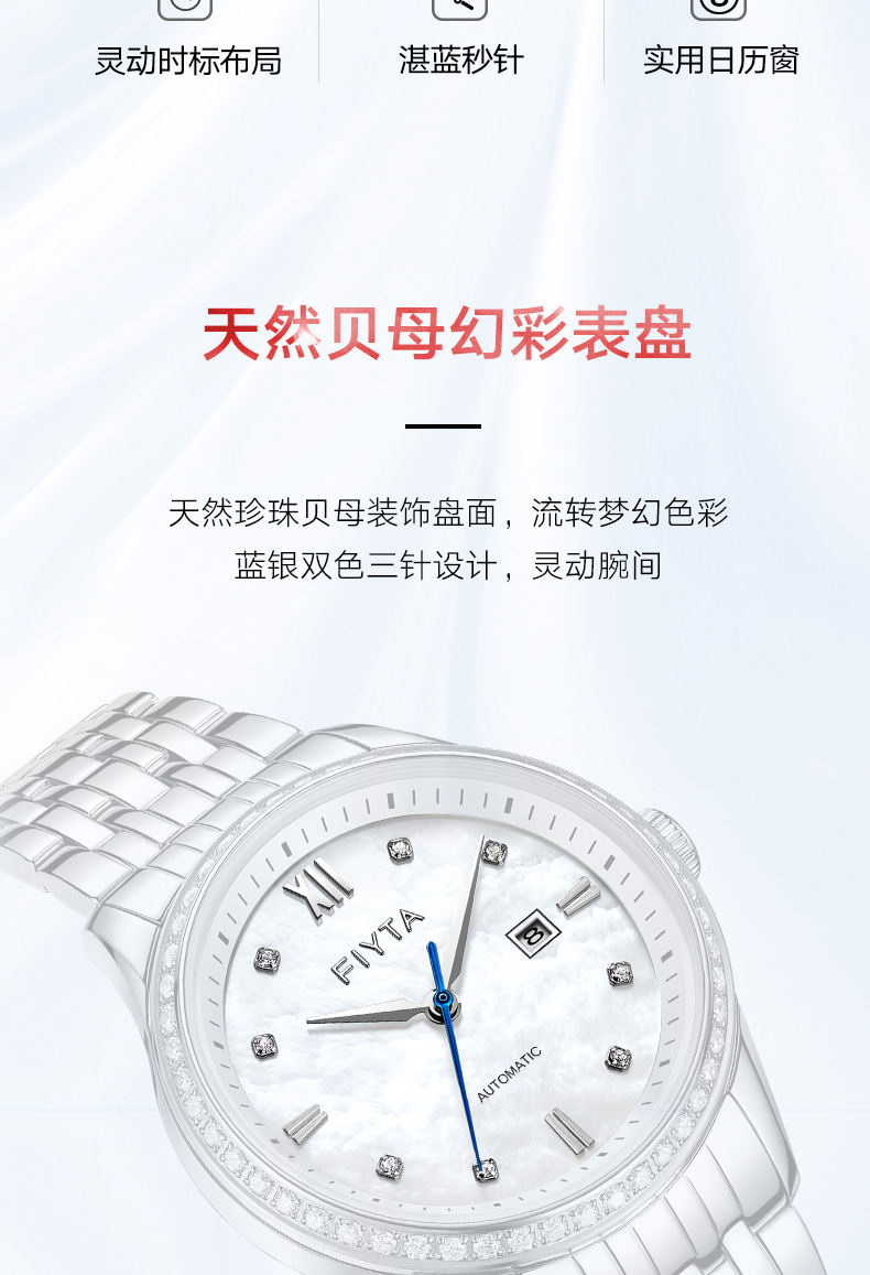 飞亚达经典系列机械女表贝母盘镶钻时尚手表