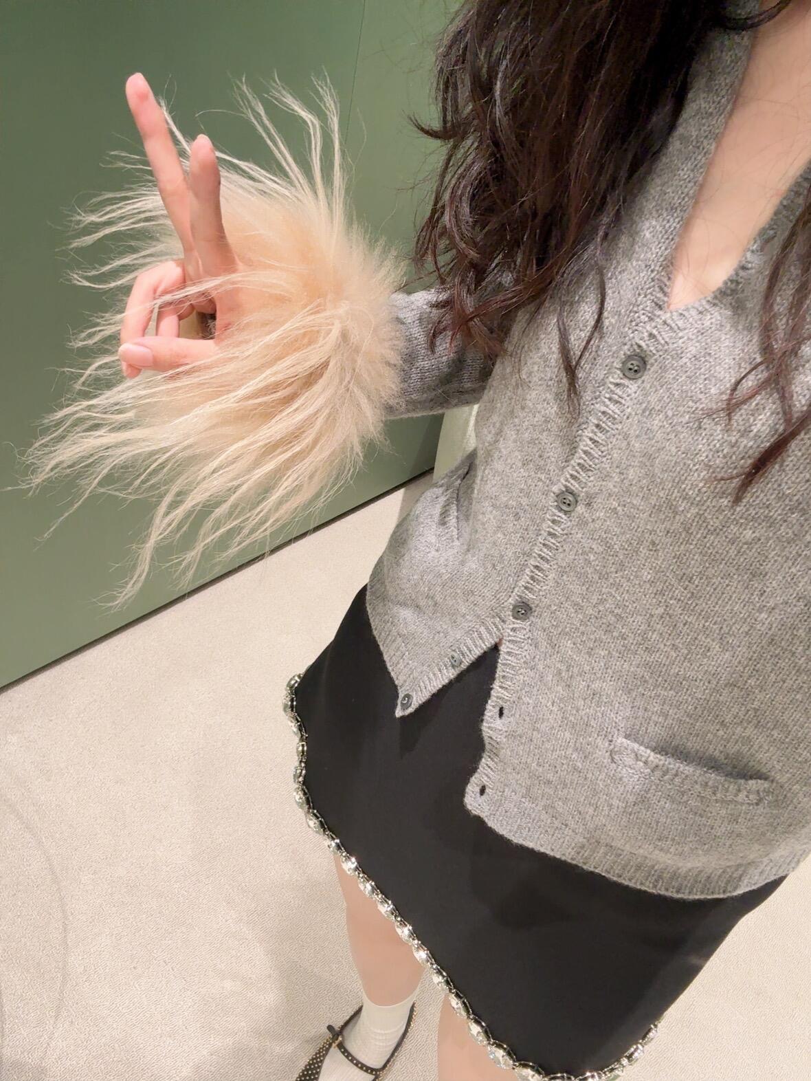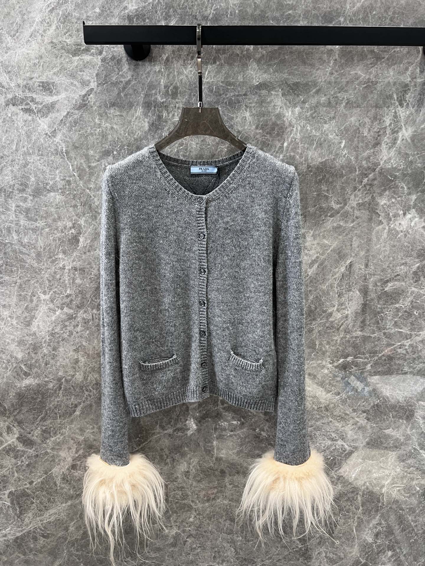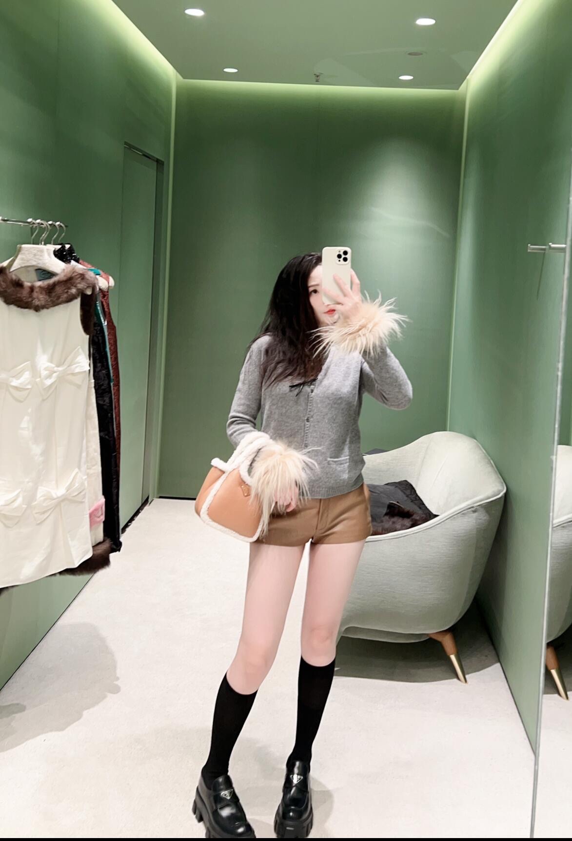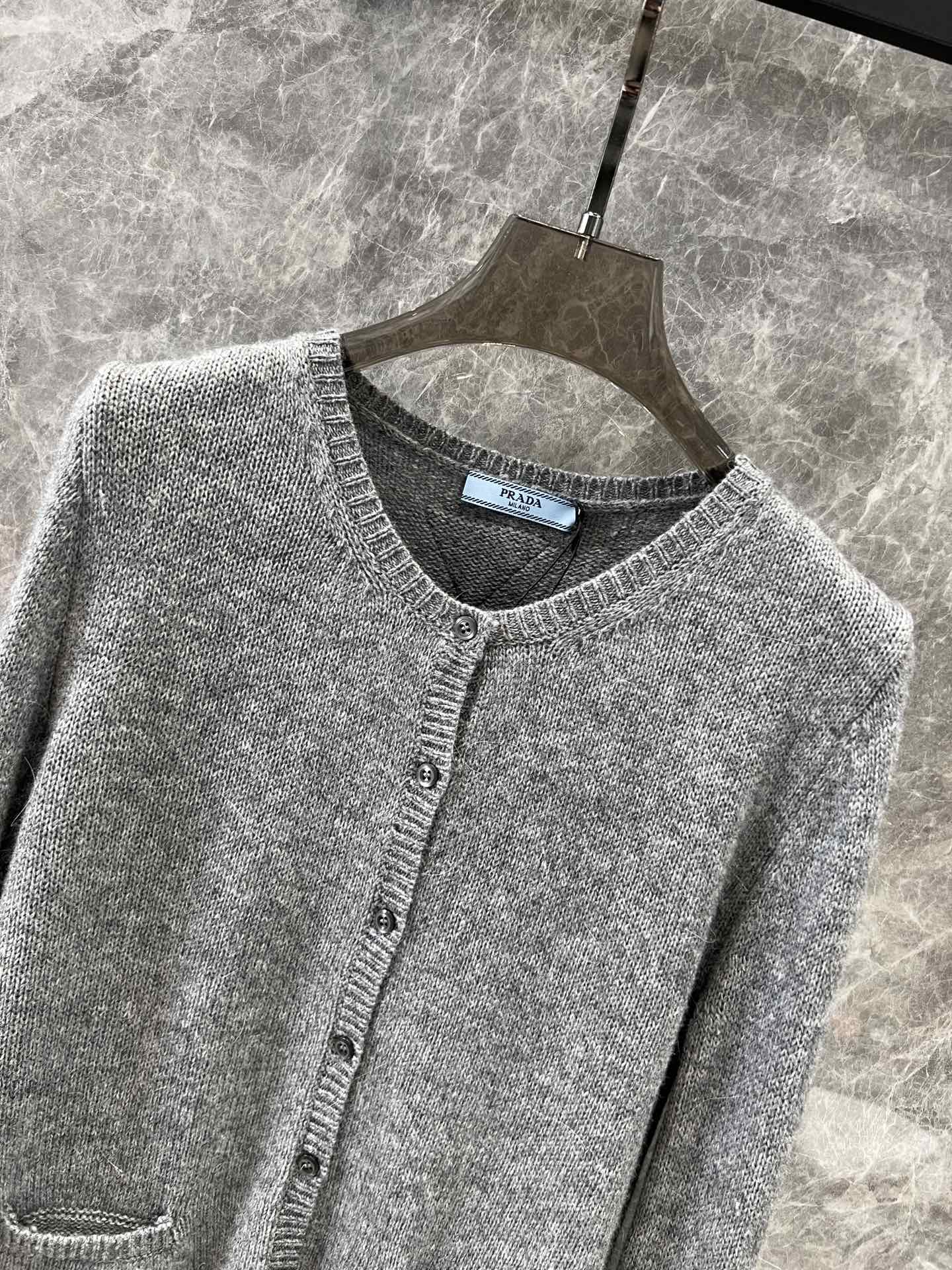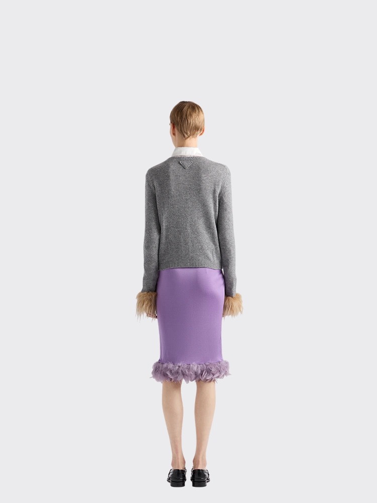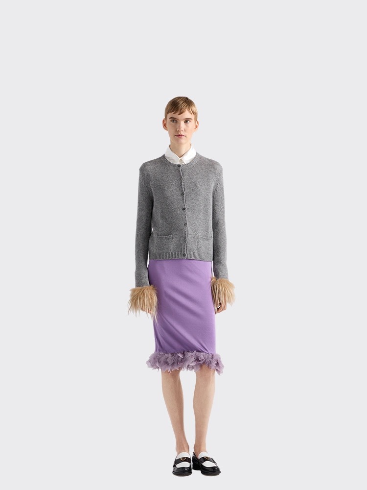 Prad* 24Fw秋冬新款 袖子羽毛羊绒针织开衫独家yb开发!高版出品!