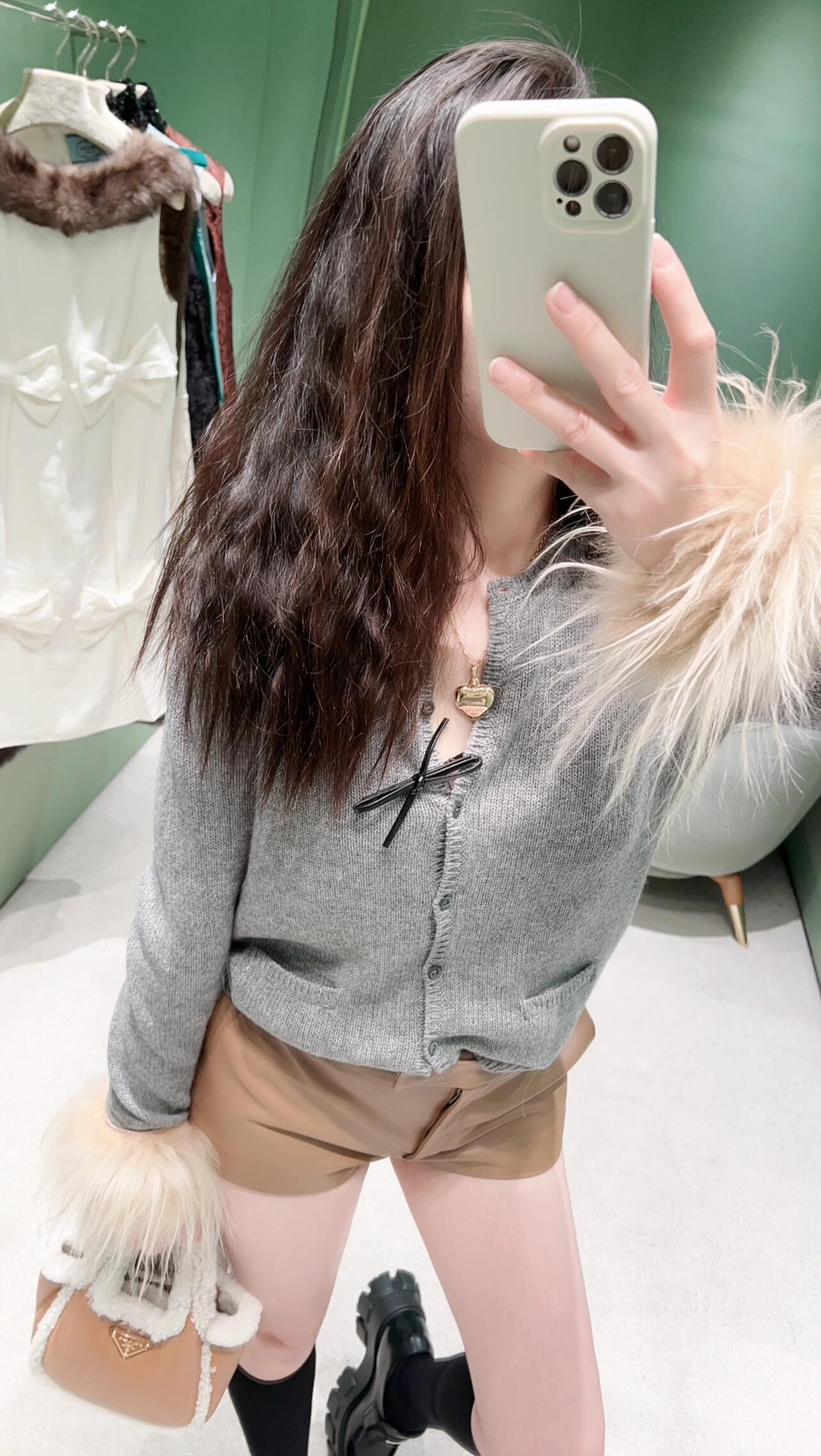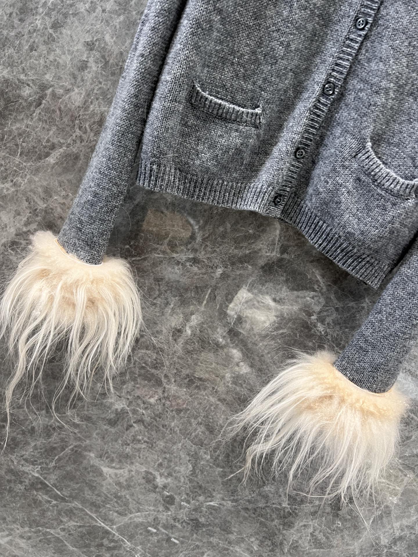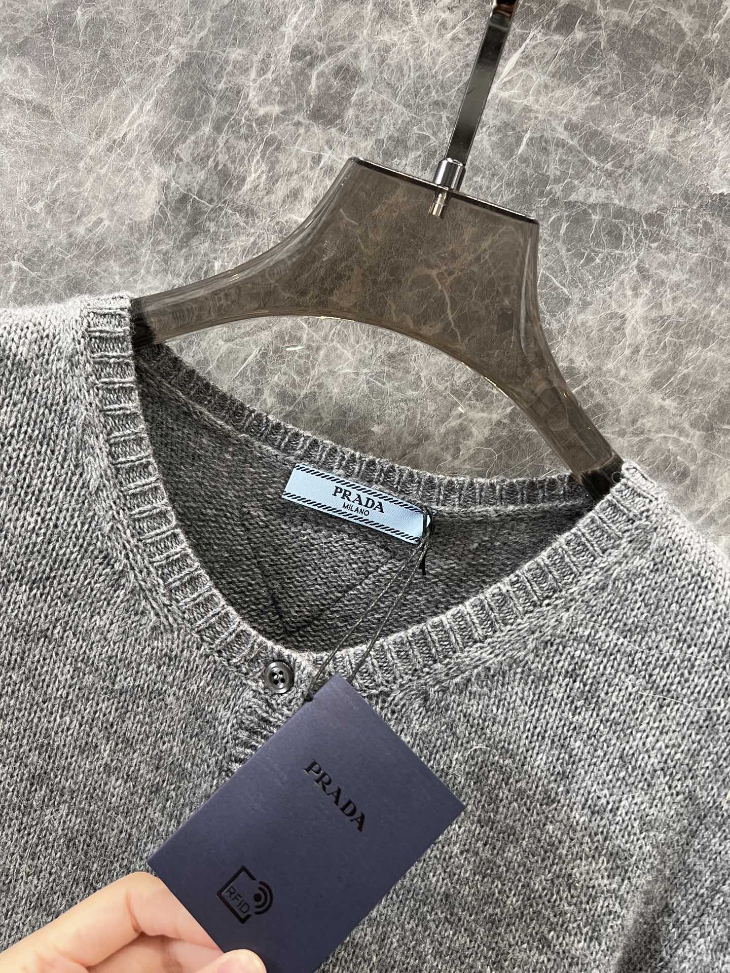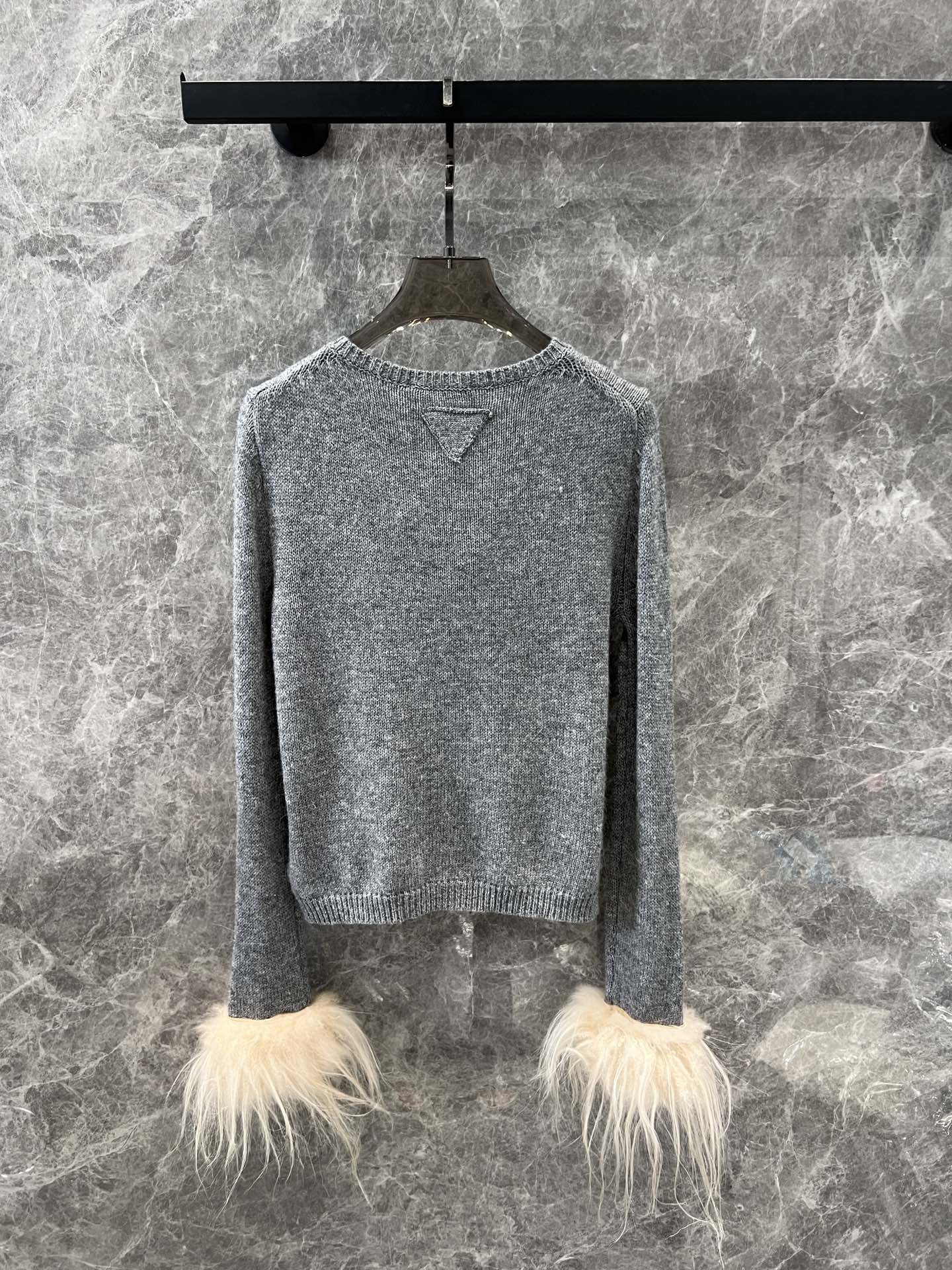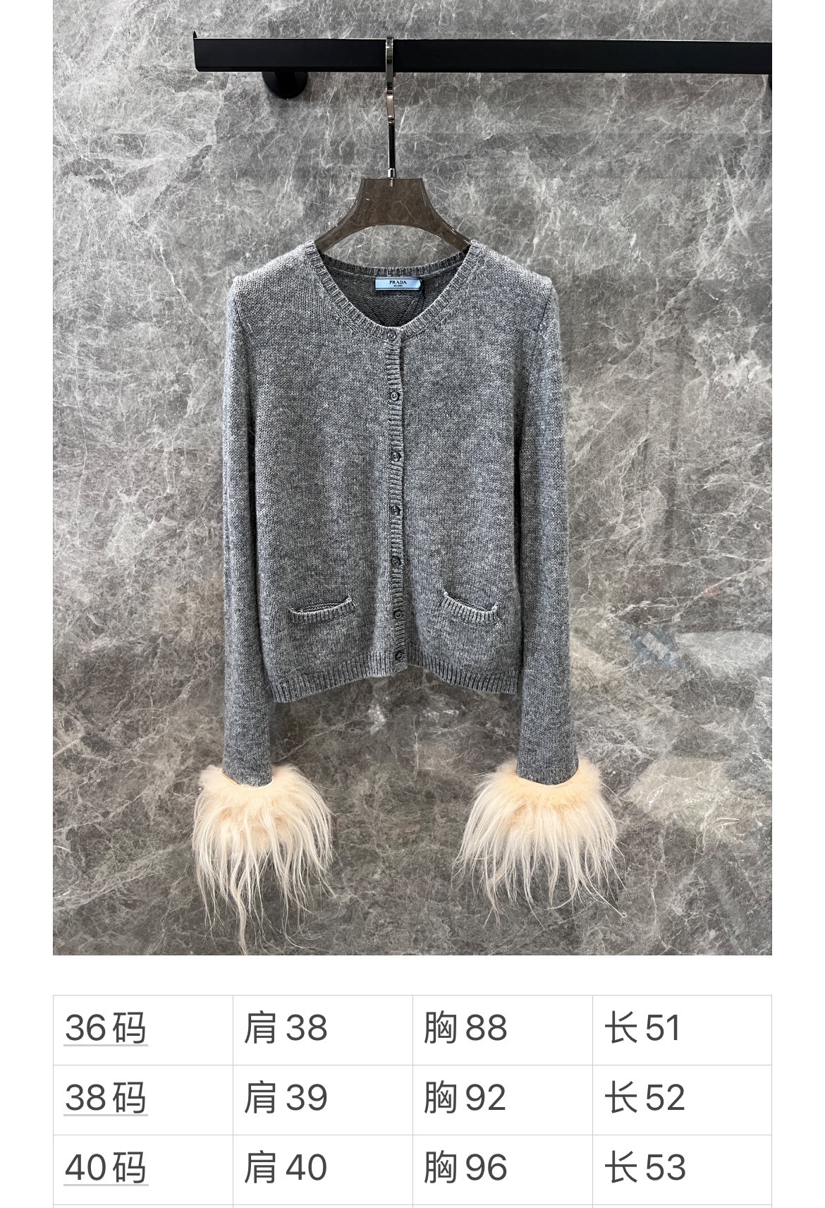 Prad* 24Fw秋冬新款 袖子羽毛羊绒针织开衫独家yb开发!高版出品!