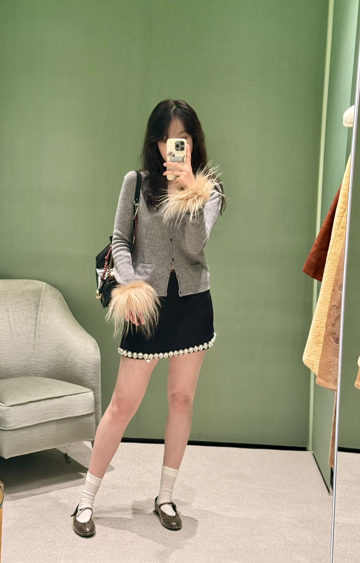 袖子超密真羽毛整圈镶嵌 举手之间更显仙气女人味 氛围感直接拿捏 简约高级~~