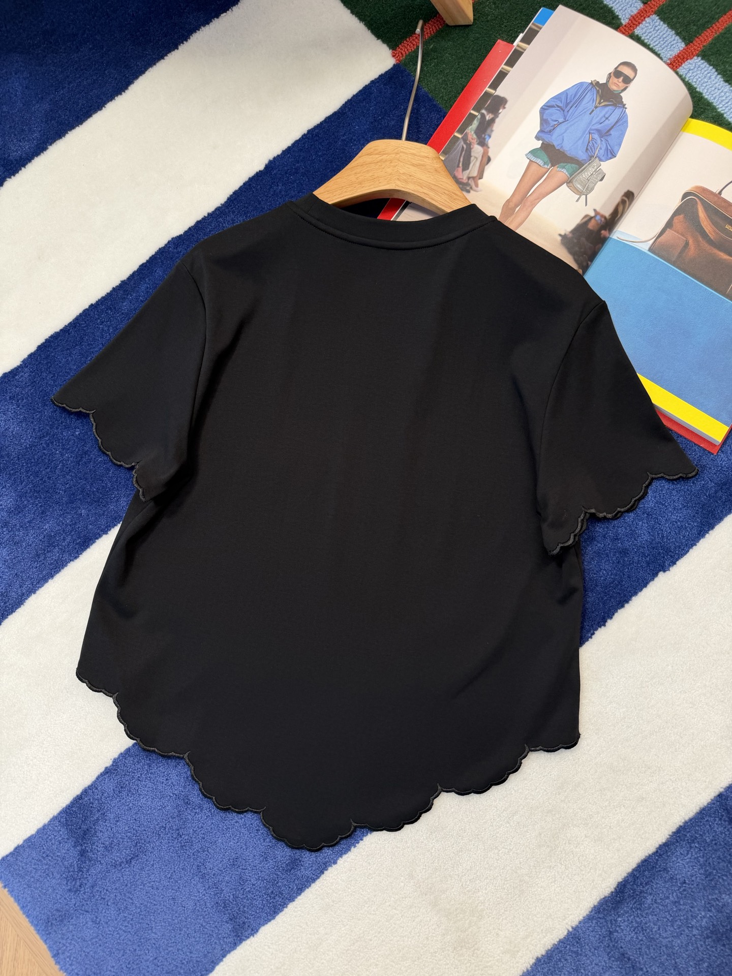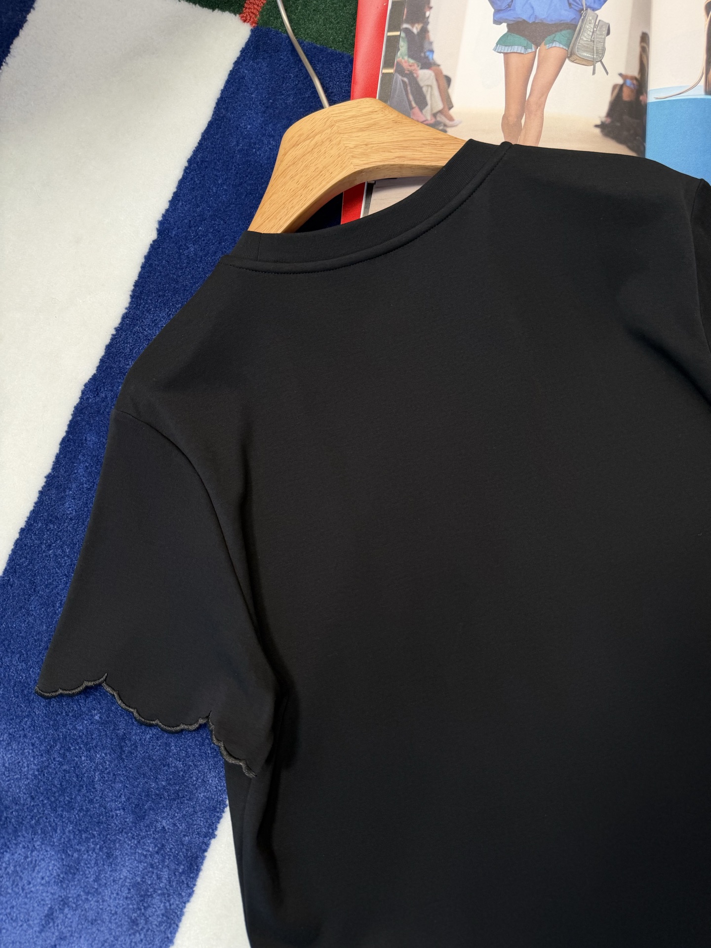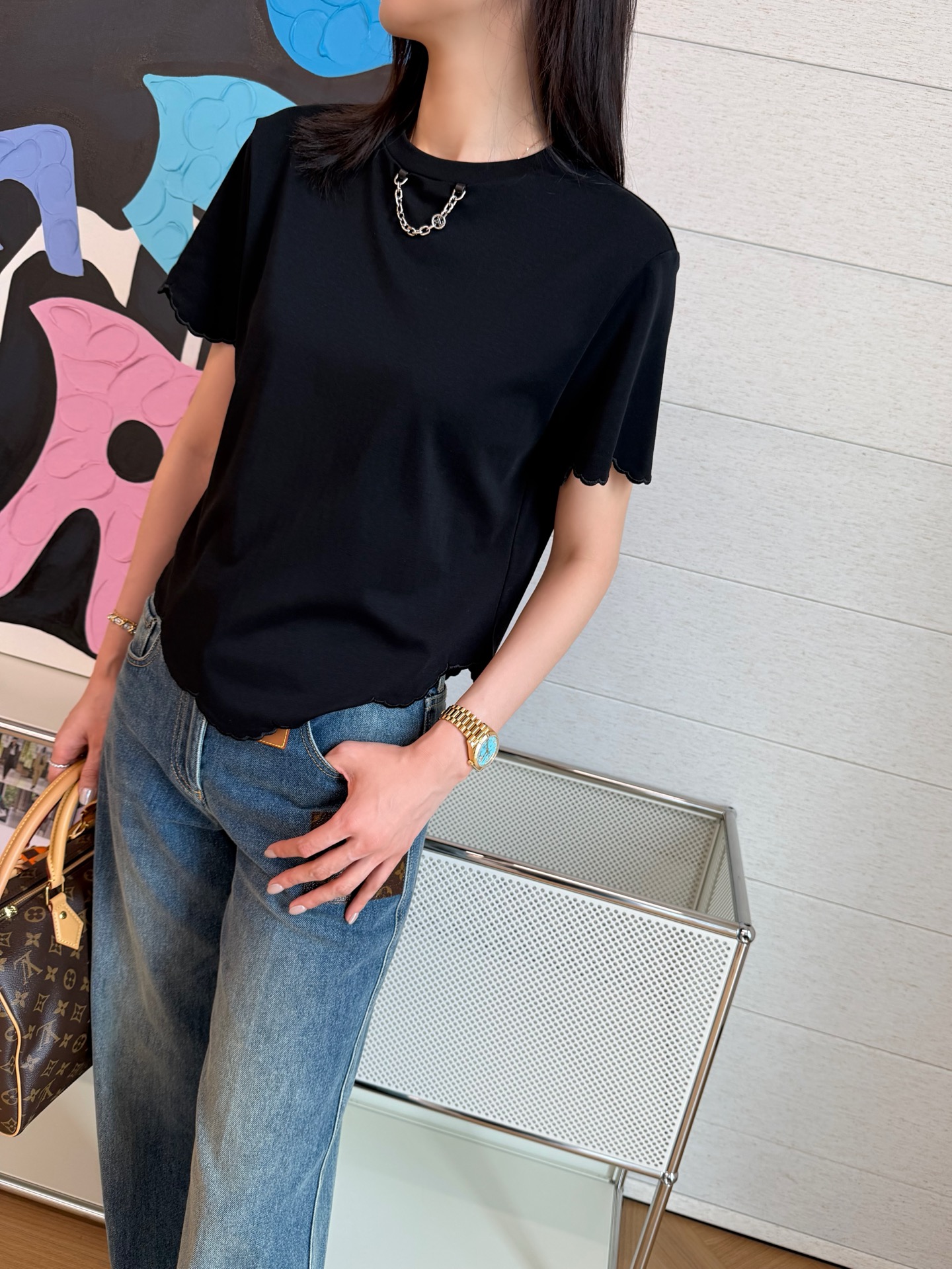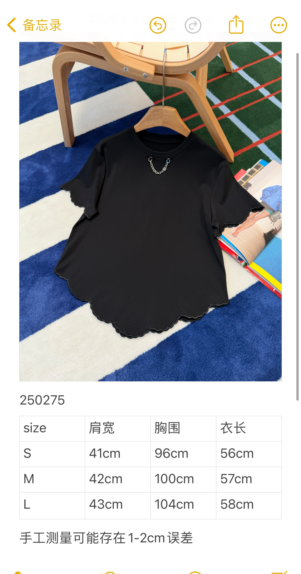 【新款现货发售】2026春夏最新款🆕软糯垂顺的高定面料🥰上身亲肤又透气,下摆的波浪边剪裁自带柔焦感,悄悄藏住小肚腩还超显比例‼️领口的金属链设计更是点睛之笔,告别单调,把基础款穿出了精致松弛感🉑