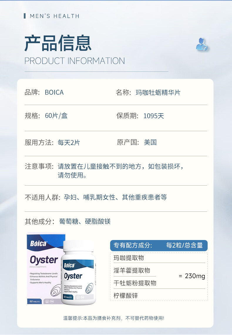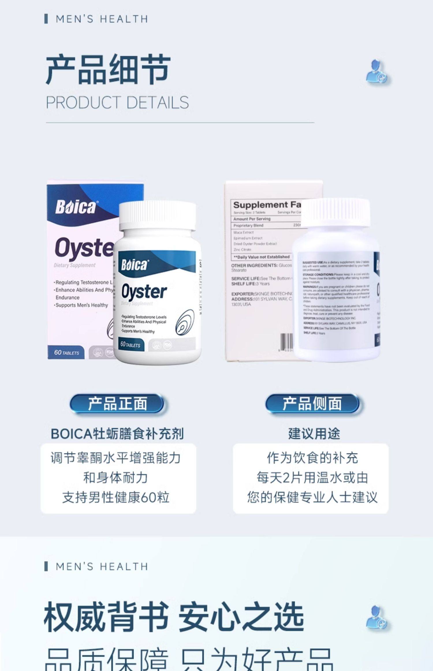 美国进口BOICA牡蛎精华牡蛎片补锌片玛咖淫羊藿男士男性补充活力