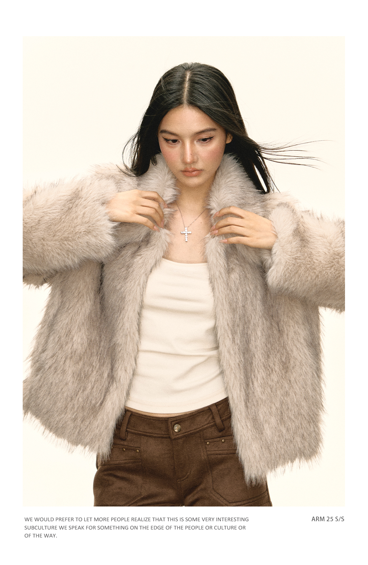 Ariseism 美式复古毛绒短外套女秋季新款保暖外套