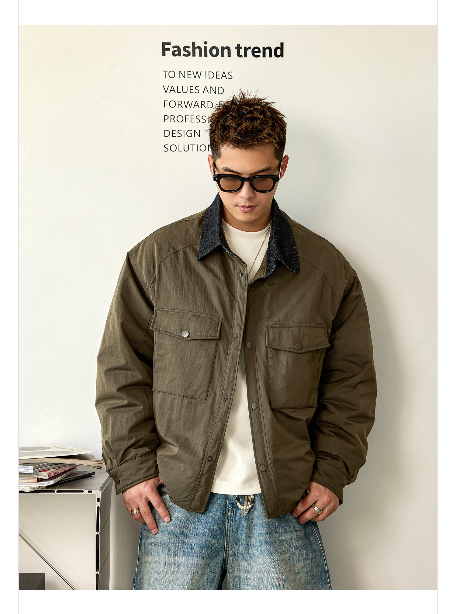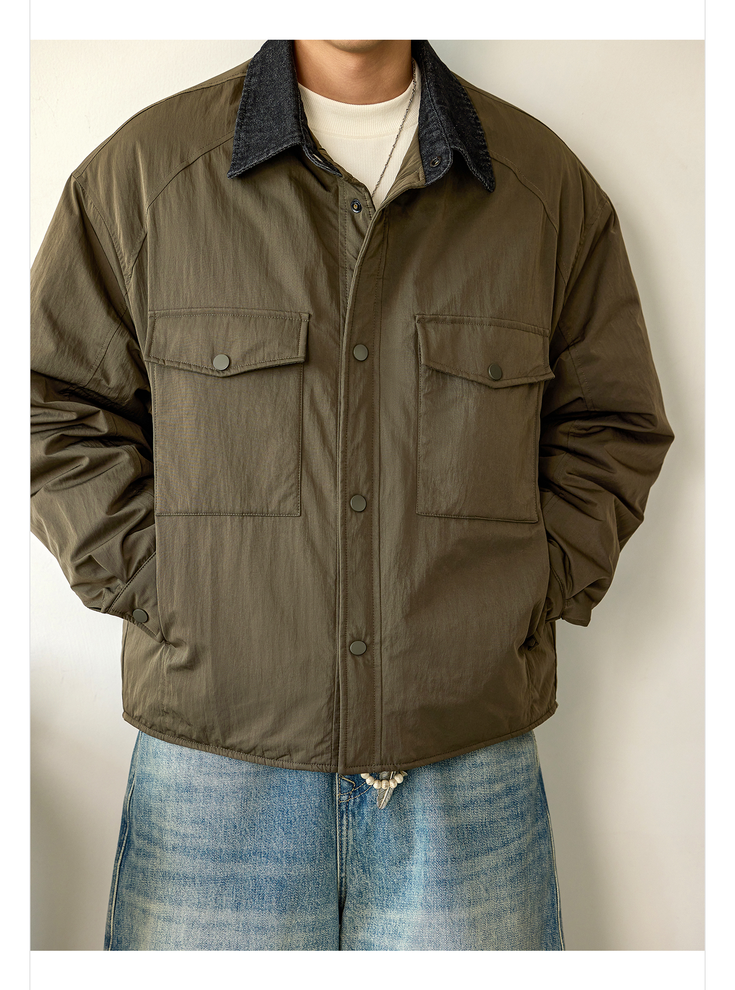 徐太浪【拼接翻领 大口袋】大码羽绒服男冬季保暖宽松防寒服外套