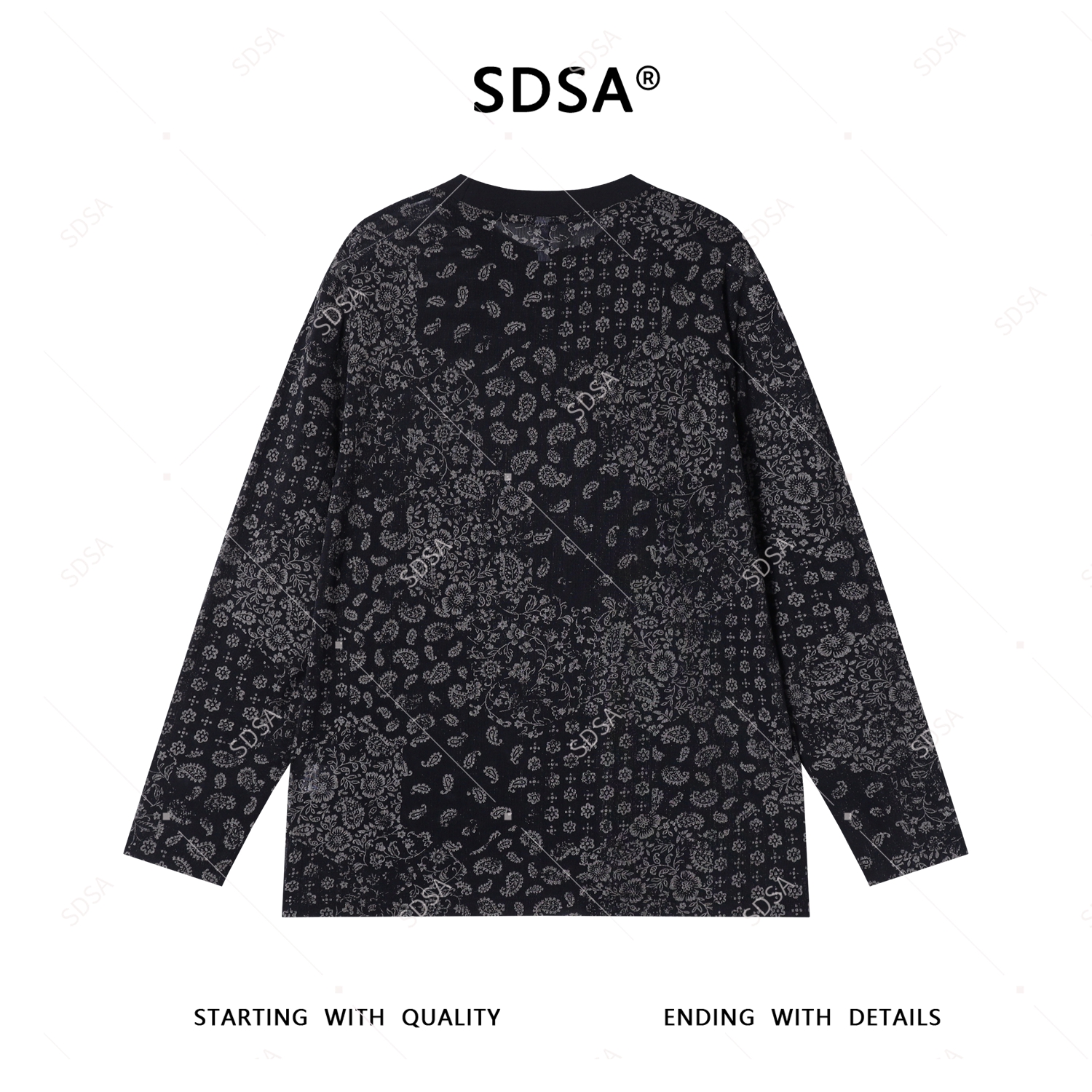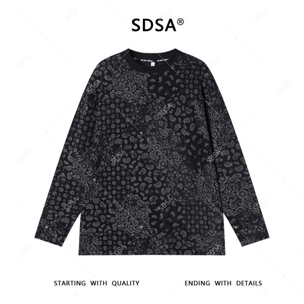 T4515SDSA秋季新款男士痞帅简约撞色花卉设计长袖T恤气质百搭圆领上衣
