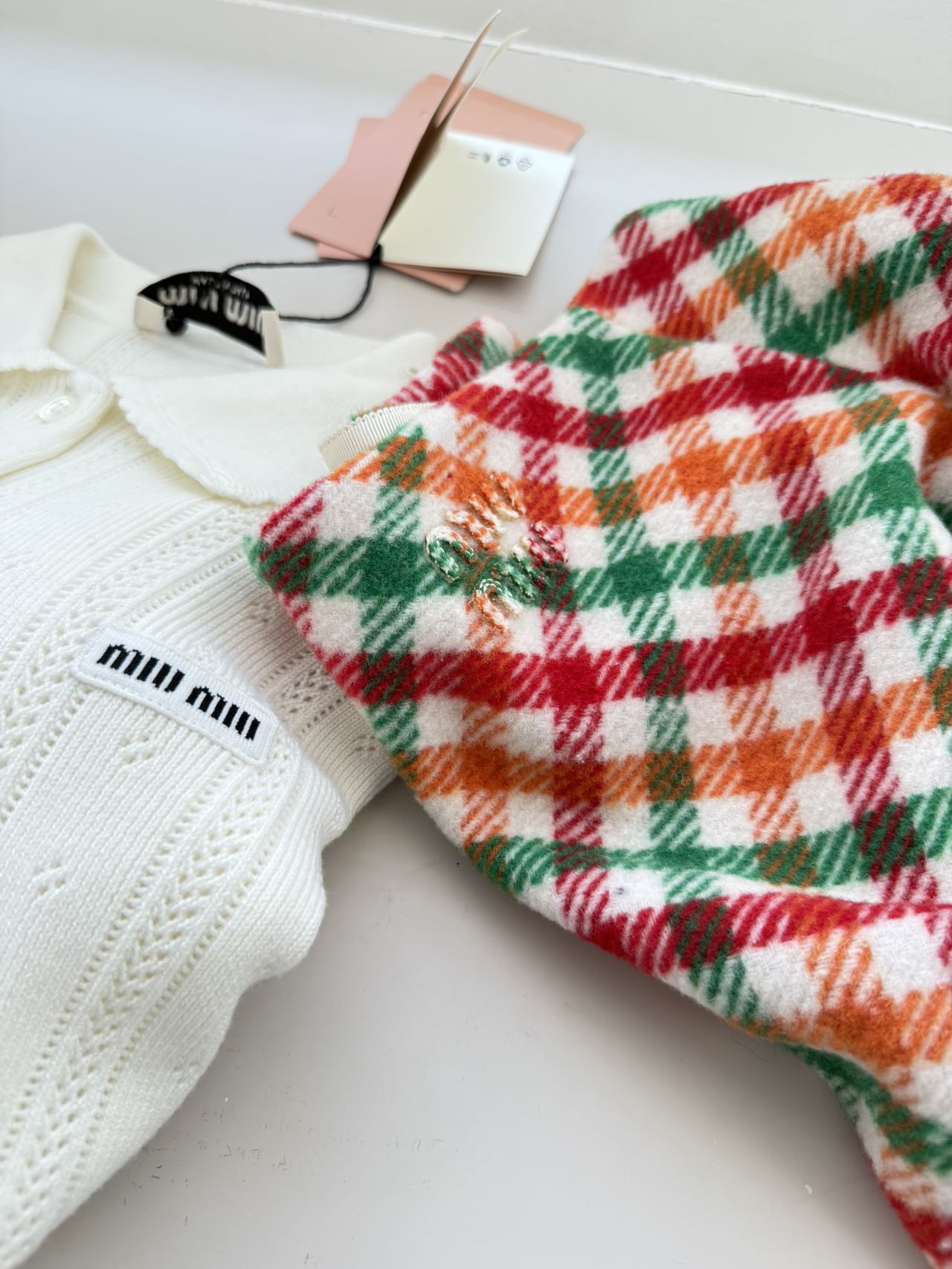 羊毛面料经抗皱、防缩水处理,挺括不易变形,哑光质感契合Miu Miu“甜酷轻奢”风格;