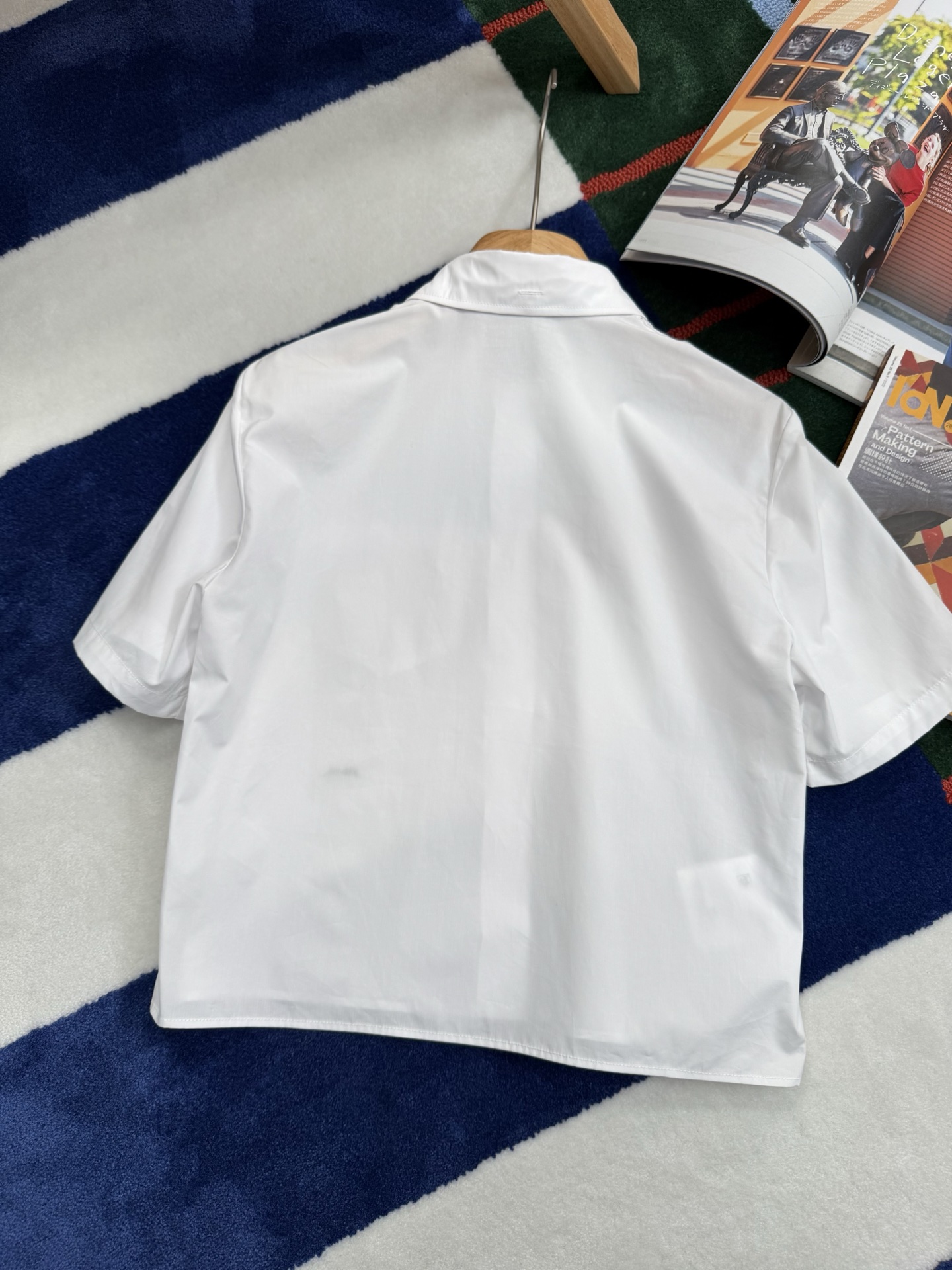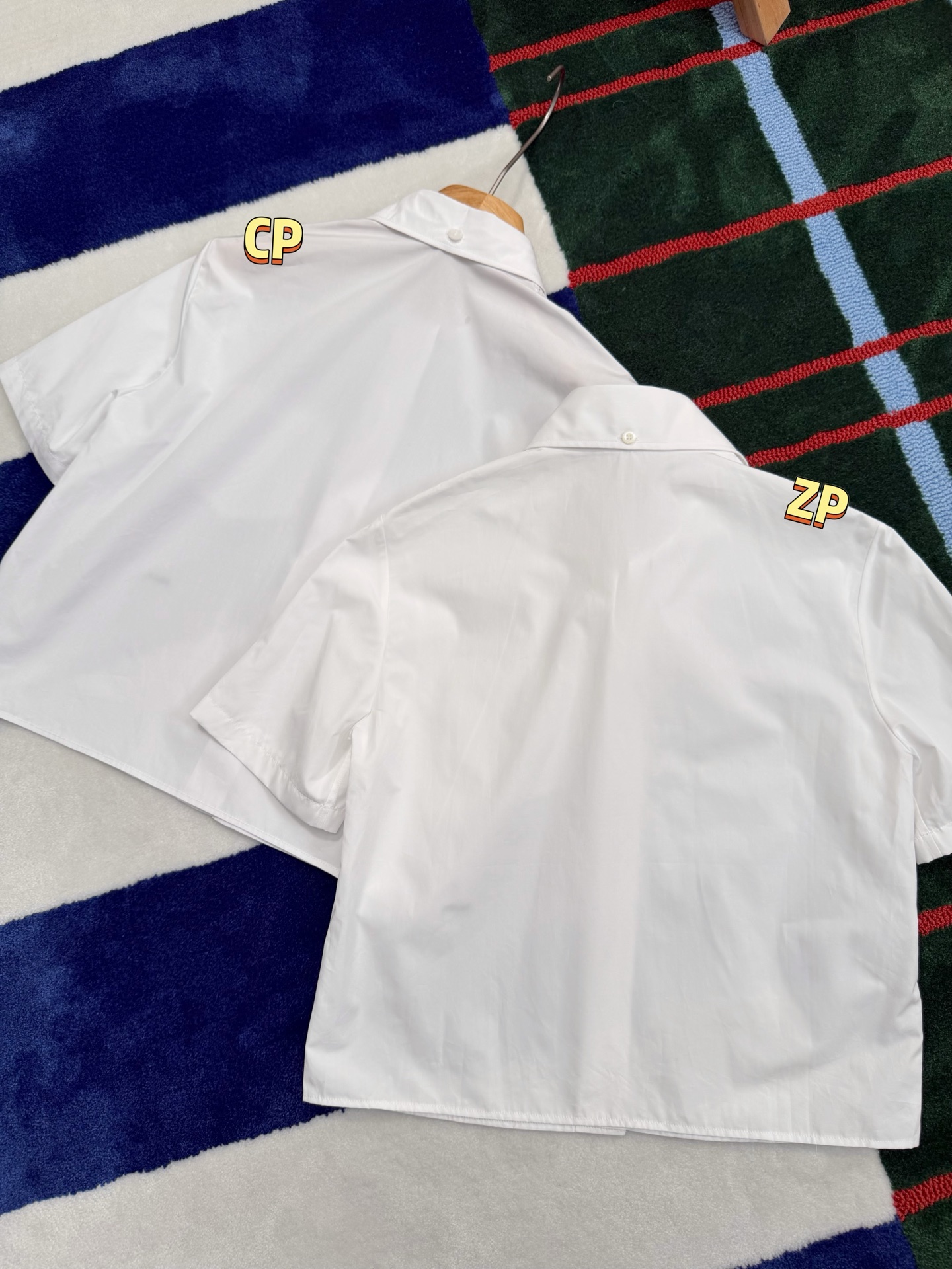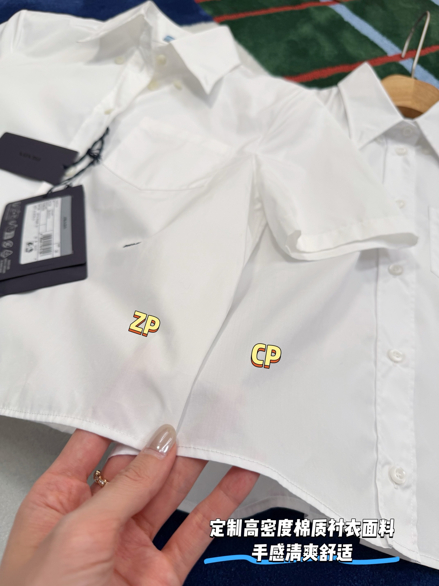 【现货发售】最新款🆕🆕短袖衬衣🔥 此款简约衬衫灵动随身✨直筒剪裁和整洁下摆搭配低调刺绣,打造出自由轮廓💕版型无敌啦👍减龄又休闲💫细节处处动人✨很难不爱啊😘 定织面料,触感舒适,并且拥有极强的透气性能😜厚薄程度恰到好处面料💗工艺完全跟足☑️ 短款设计,上身立马拉长比例🔜非常百搭,学院风精致优雅,超有气质的高级感 ✨码数SML