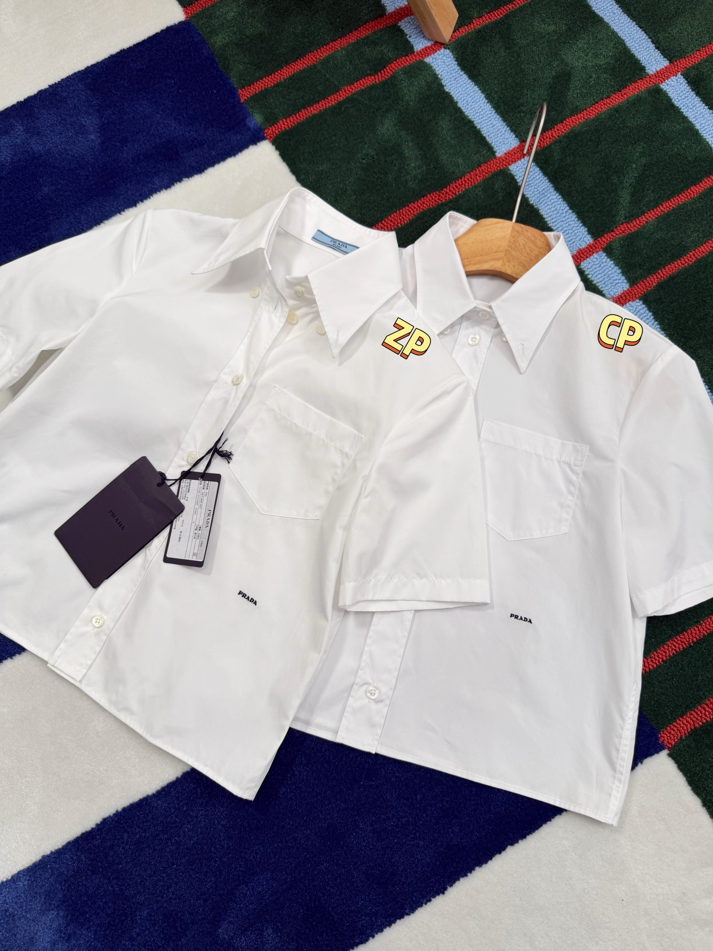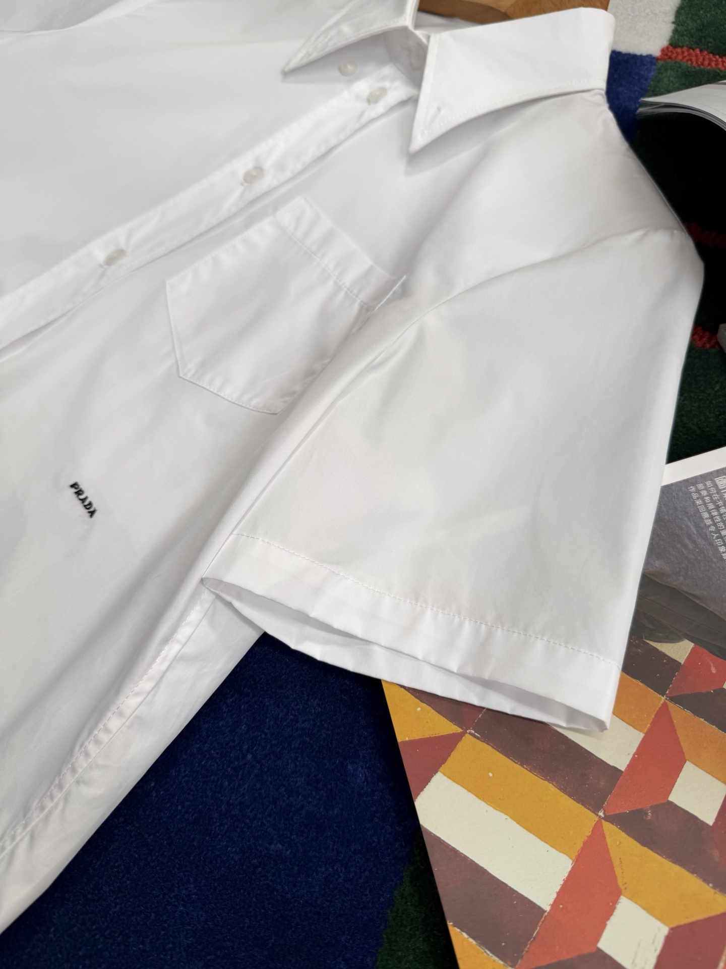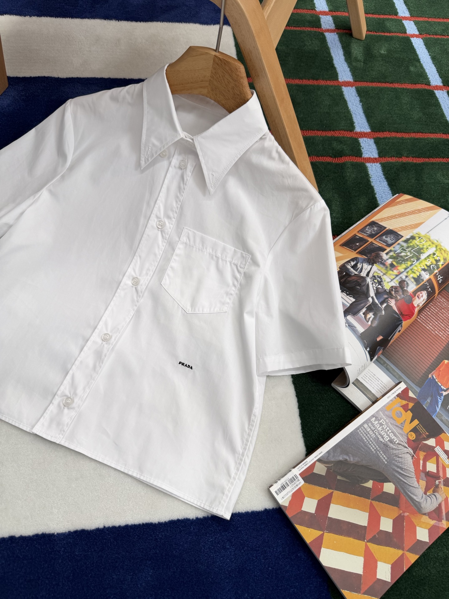 【现货发售】最新款🆕🆕短袖衬衣🔥 此款简约衬衫灵动随身✨直筒剪裁和整洁下摆搭配低调刺绣,打造出自由轮廓💕版型无敌啦👍减龄又休闲💫细节处处动人✨很难不爱啊😘 定织面料,触感舒适,并且拥有极强的透气性能😜厚薄程度恰到好处面料💗工艺完全跟足☑️ 短款设计,上身立马拉长比例🔜非常百搭,学院风精致优雅,超有气质的高级感 ✨码数SML