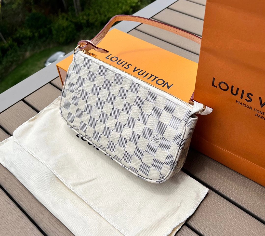 LouIs VUITTON 棋盘格 Damier Azu帆布 帆布包麻将包配饰包腋下包单肩包 常规 女款 米黄色(CB)