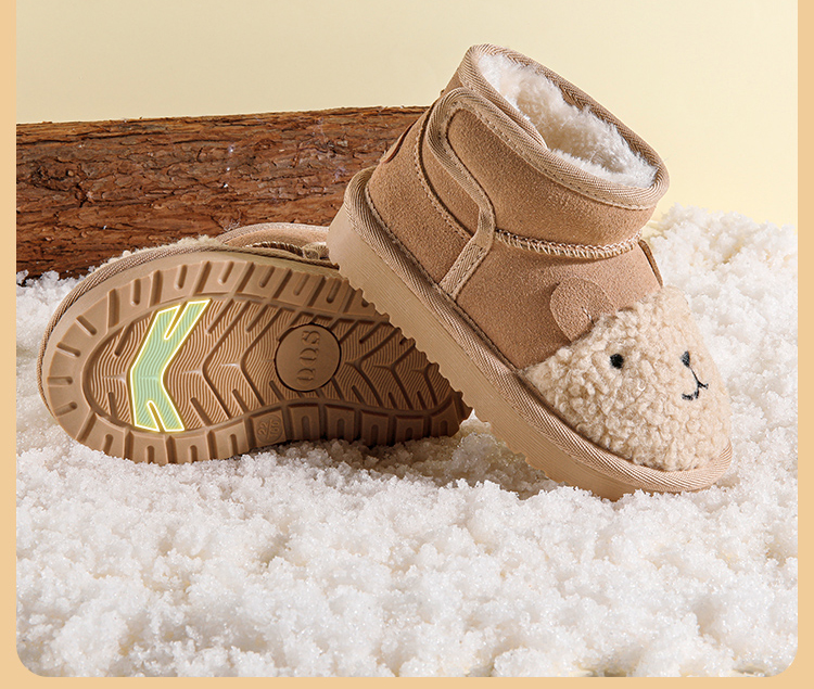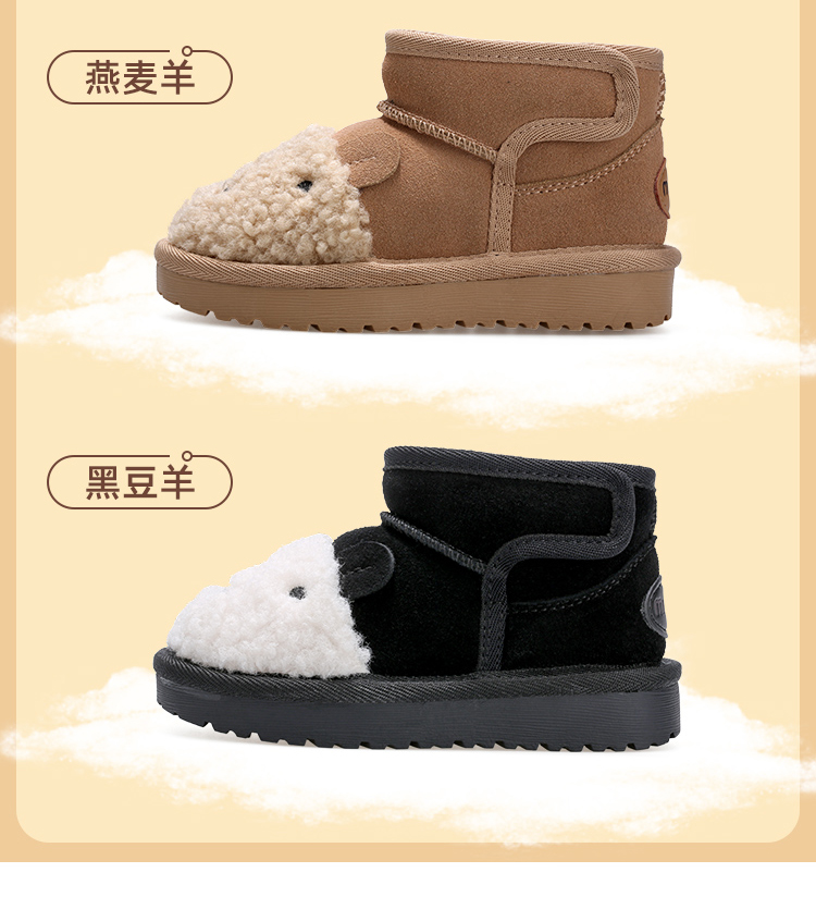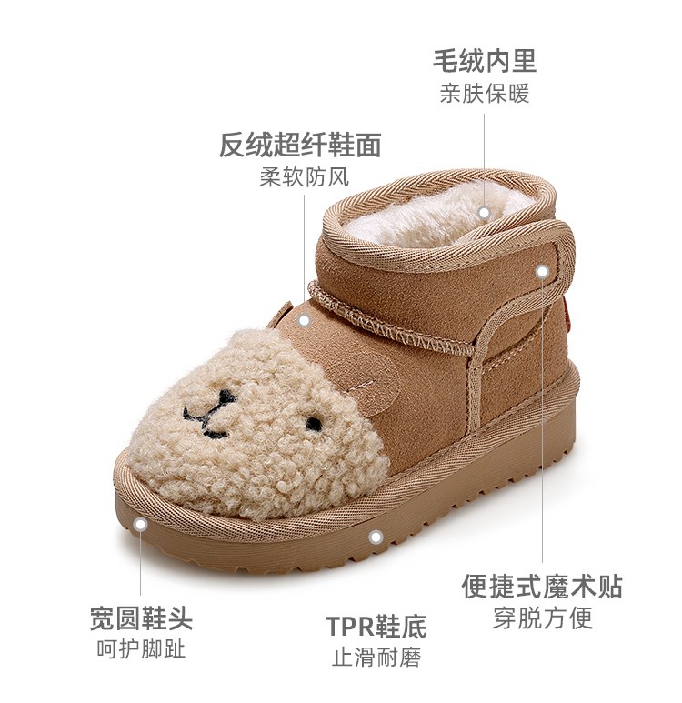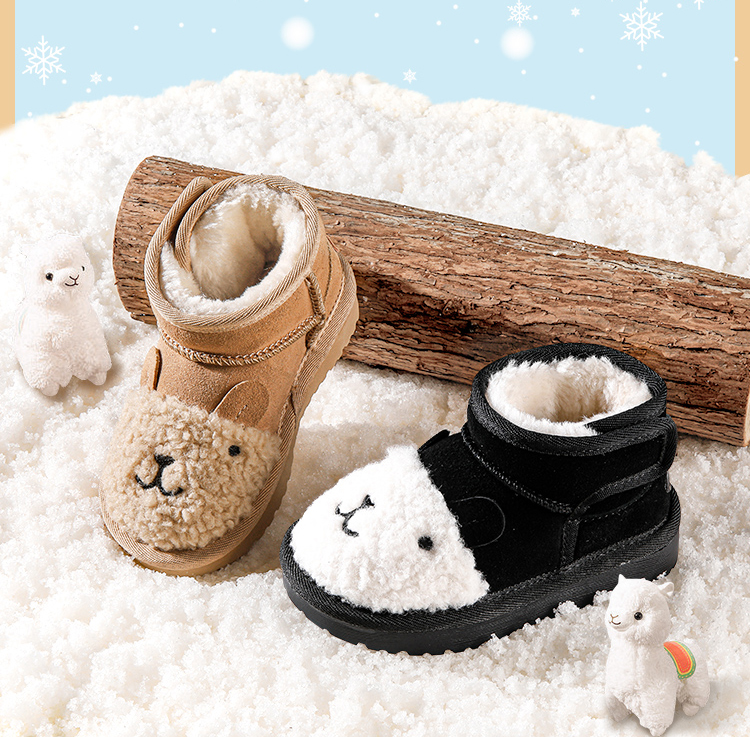 牧童2025冬季卡通雪地靴保暖加绒女宝棉鞋室外防滑加绒男童雪地靴