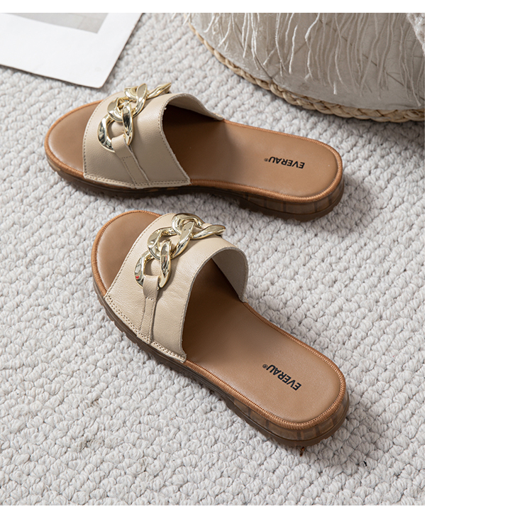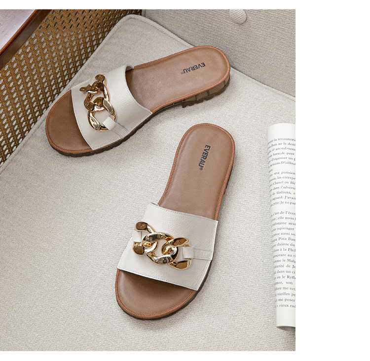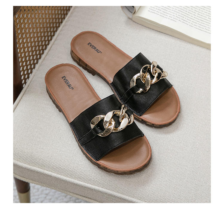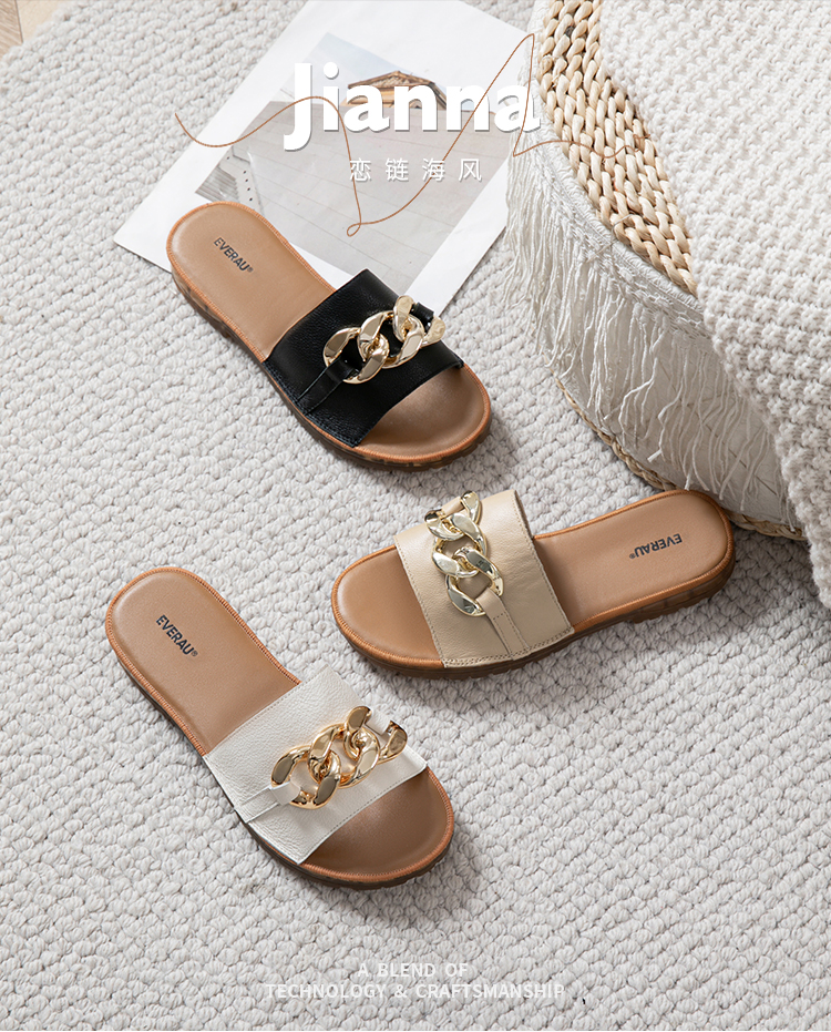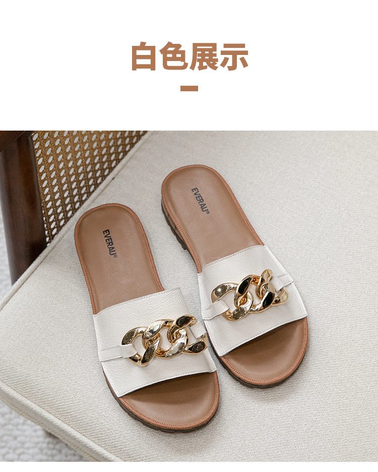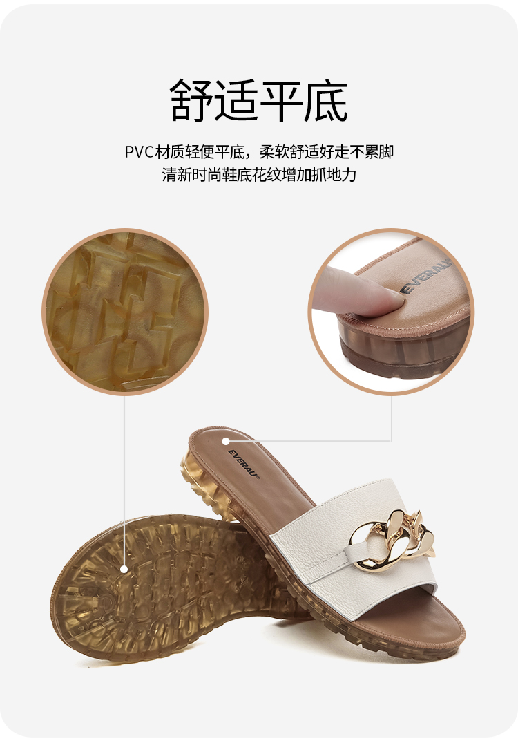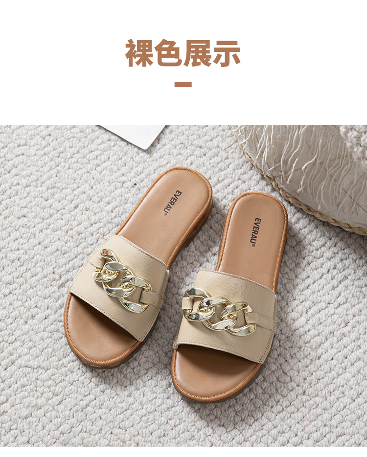 【澳洲品牌】EVERAU真皮头层牛皮拖鞋女外穿皮面沙滩一字拖半拖夏季EA7050