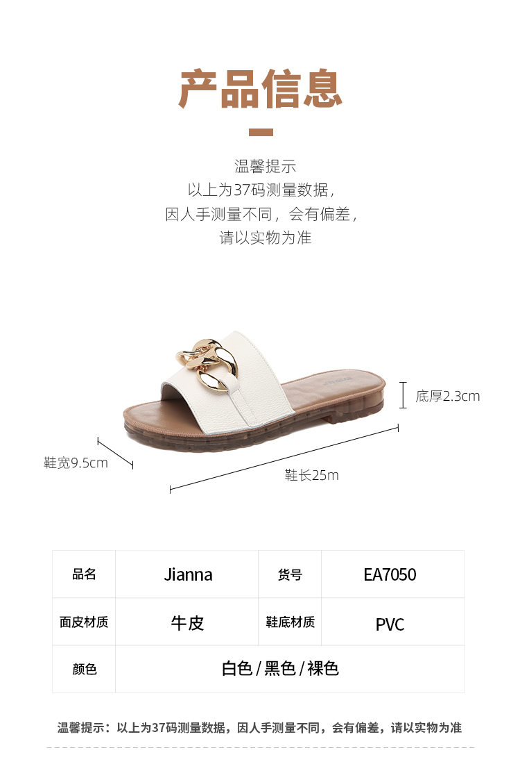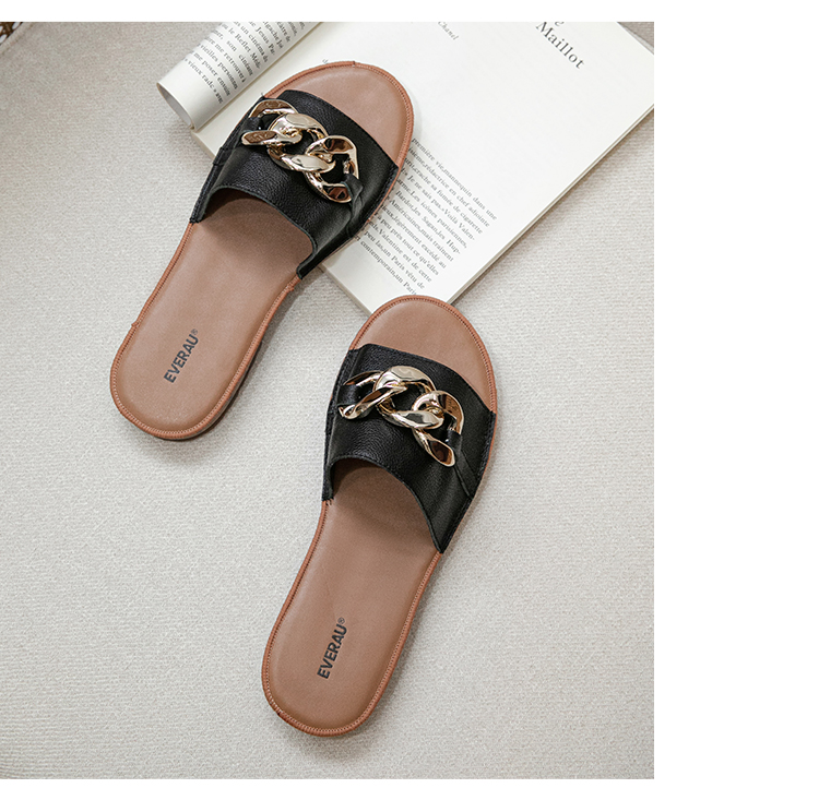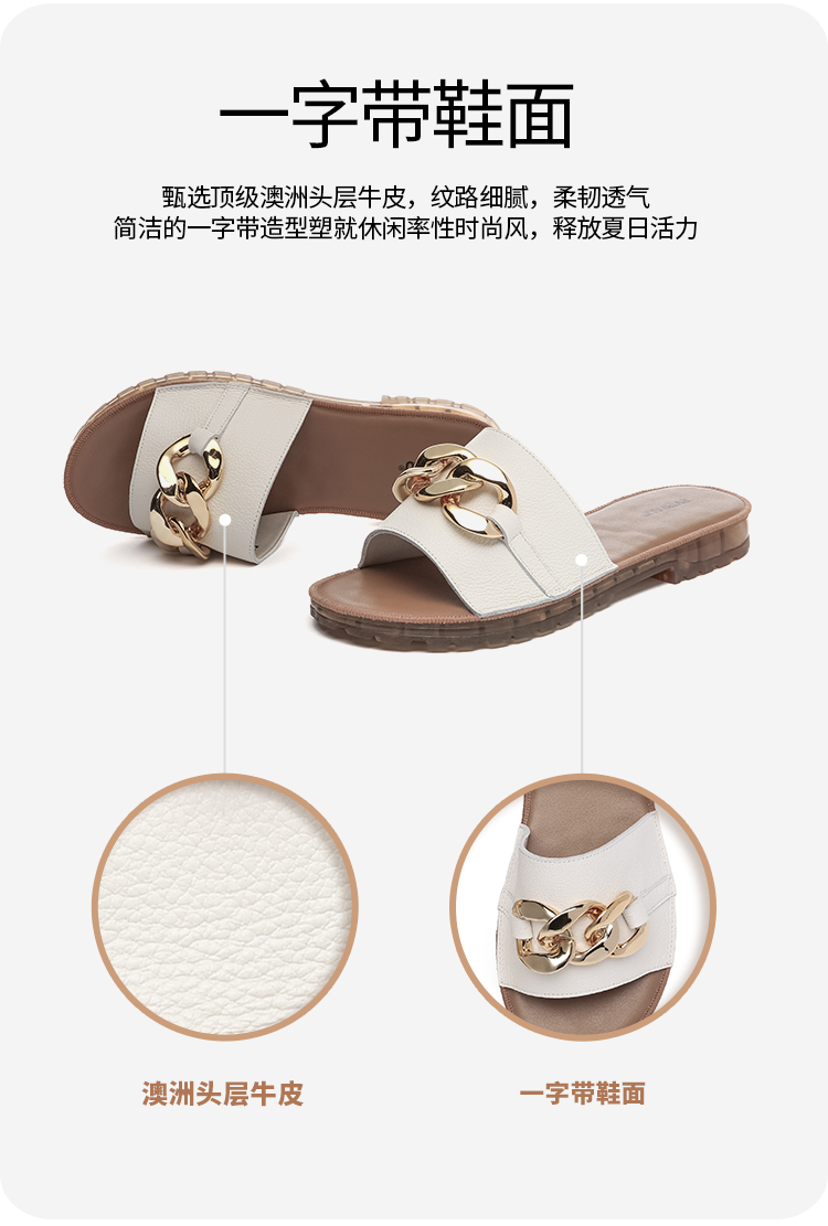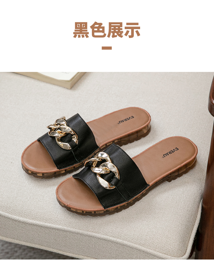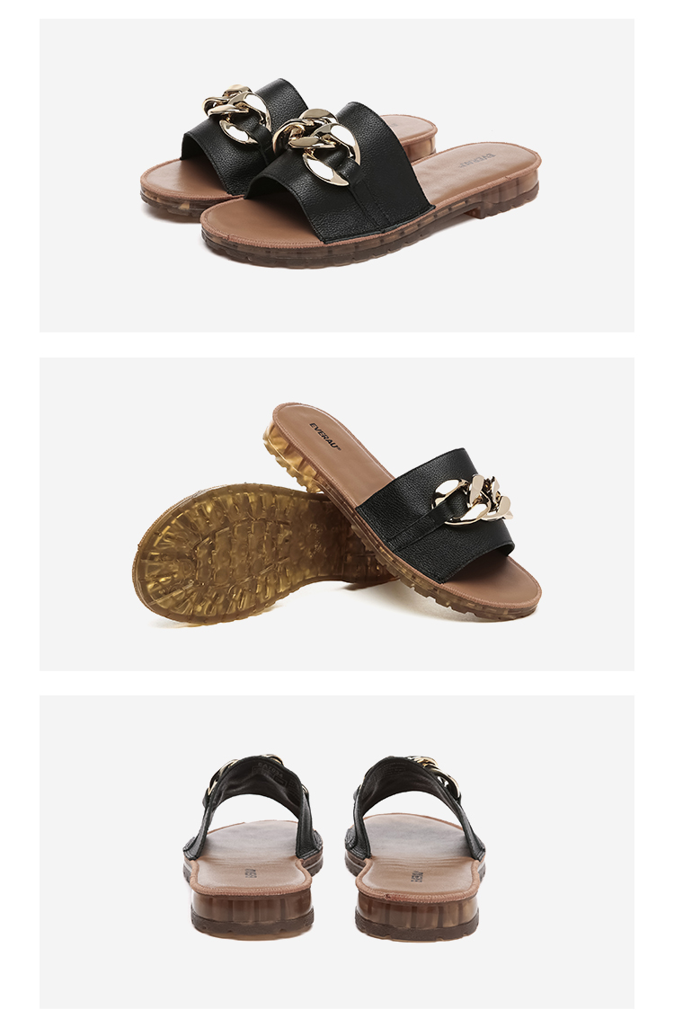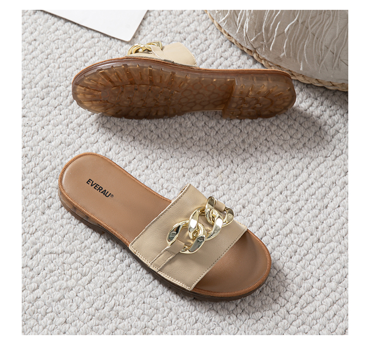 【澳洲品牌】EVERAU真皮头层牛皮拖鞋女外穿皮面沙滩一字拖半拖夏季EA7050