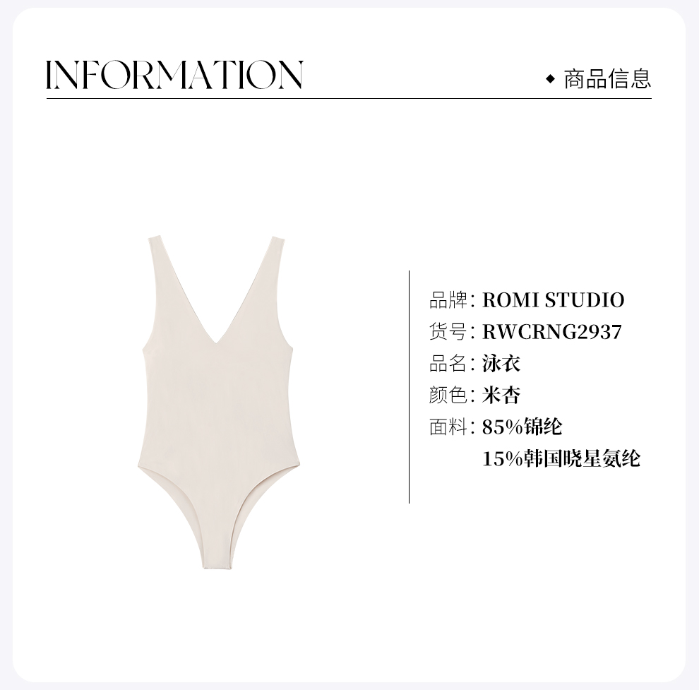 ROMI STUDIO 海边沙滩度假 前后V领高弹力紧身连体衣 RWCRNG2937