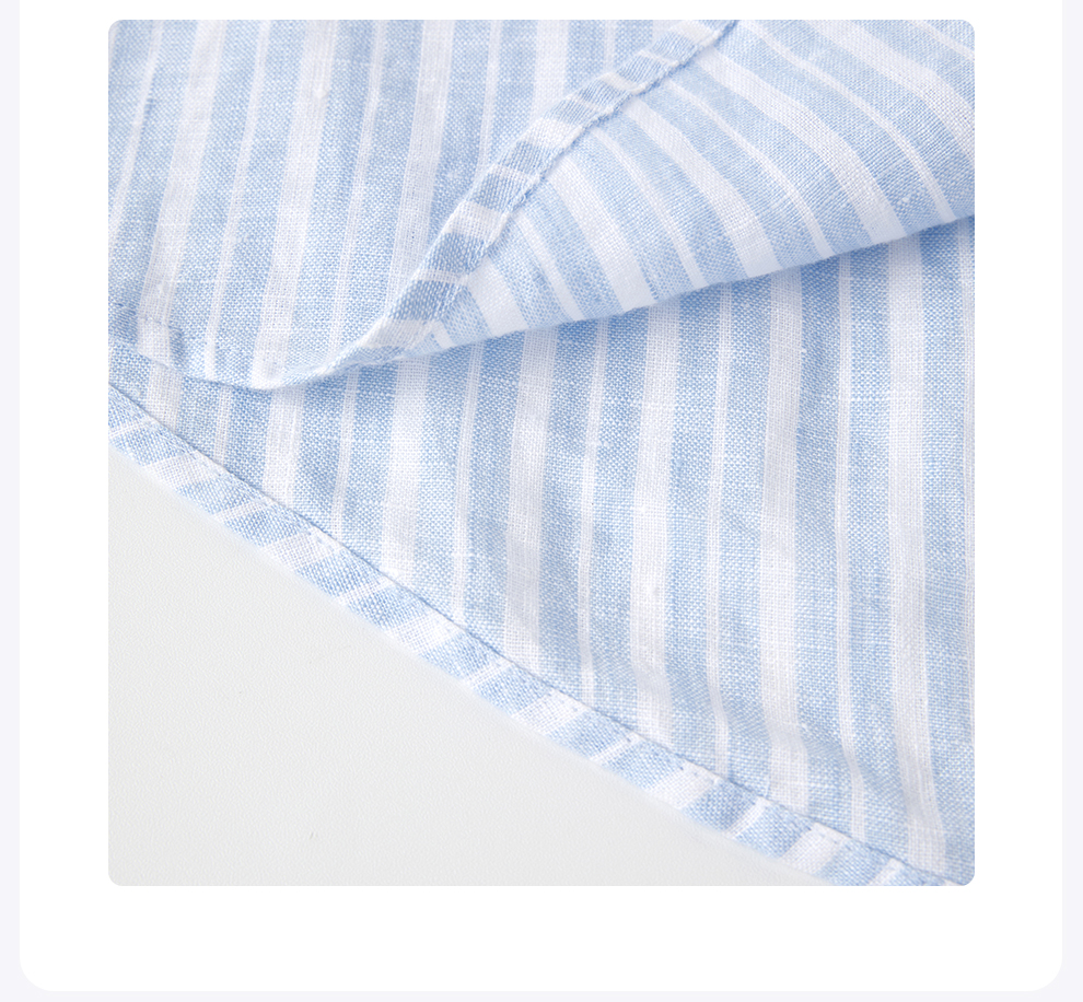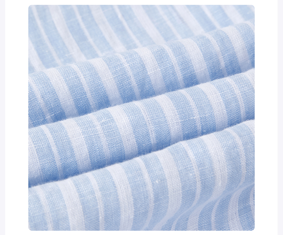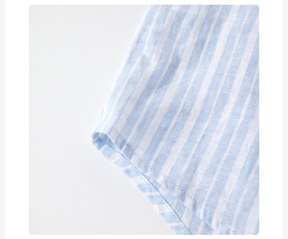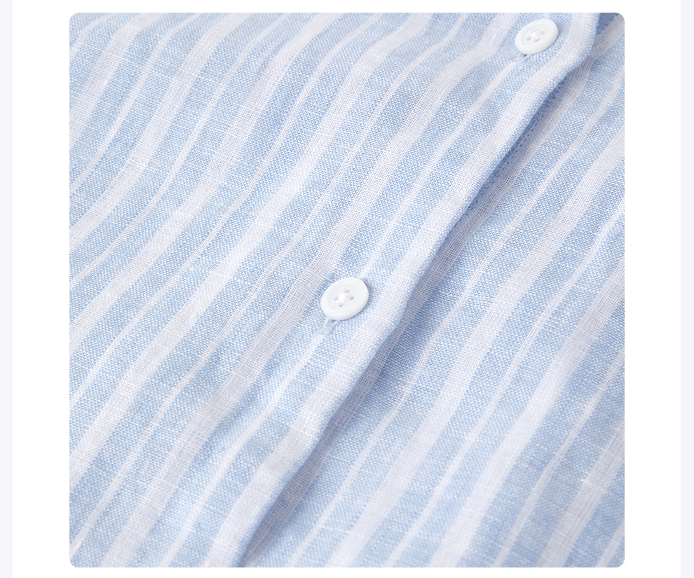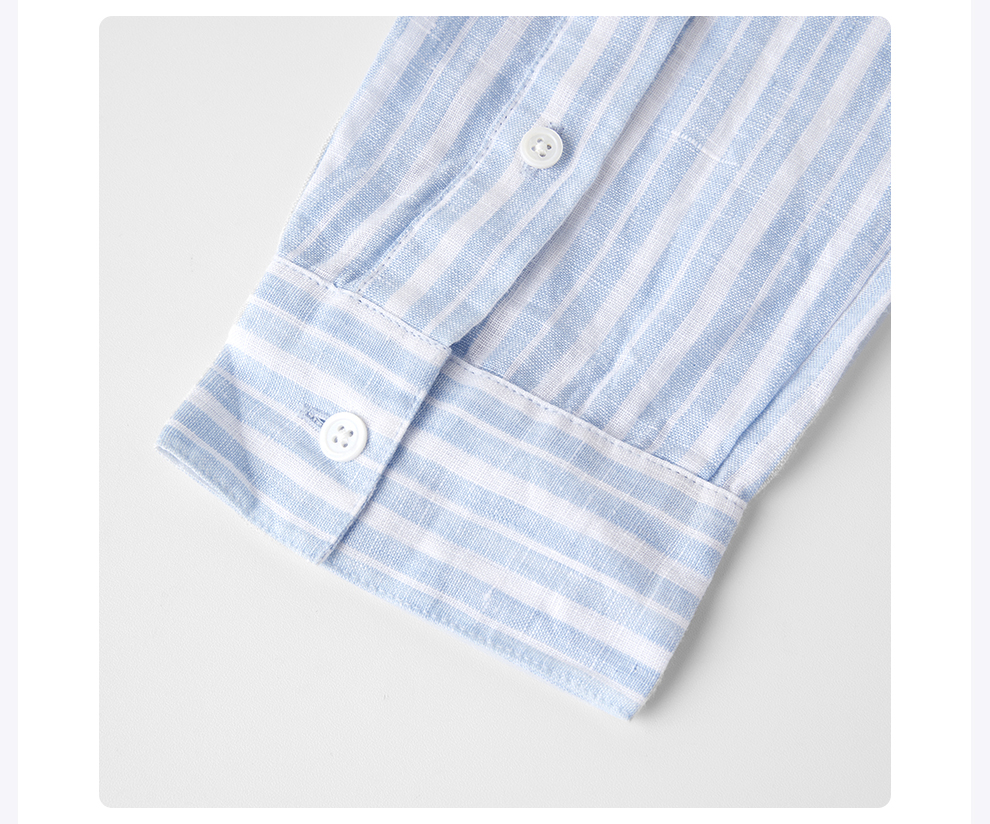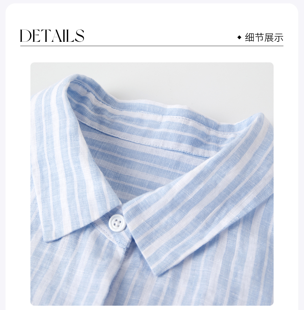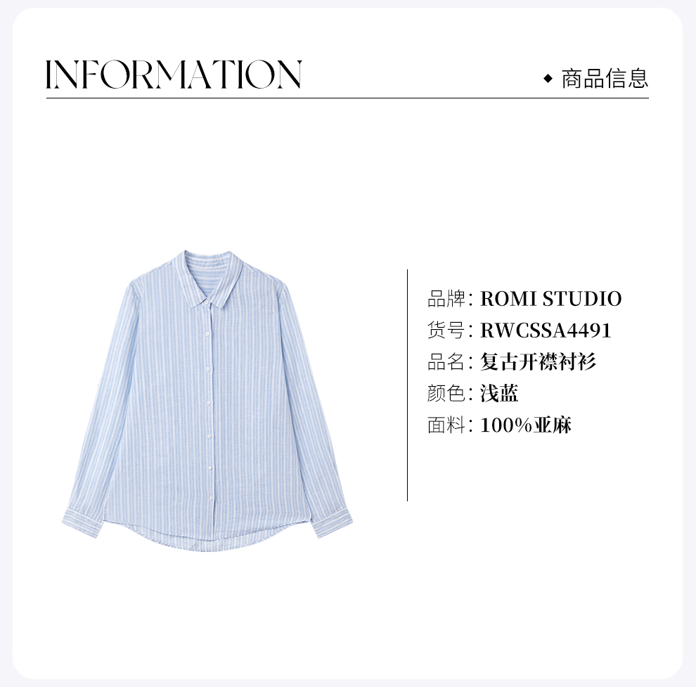 ROMI STUDIO“夏日清新”100%色织亚麻浅蓝条纹翻领衬衫 RWCSSA4491【发货时间:25-30天】