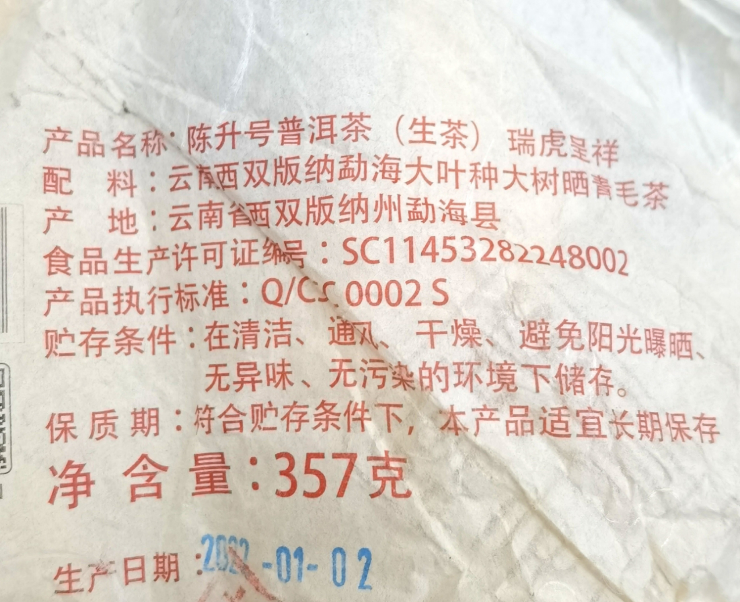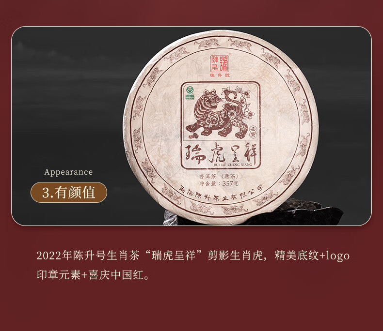 陈升号 2022年瑞虎呈祥生肖茶357g(熟茶)