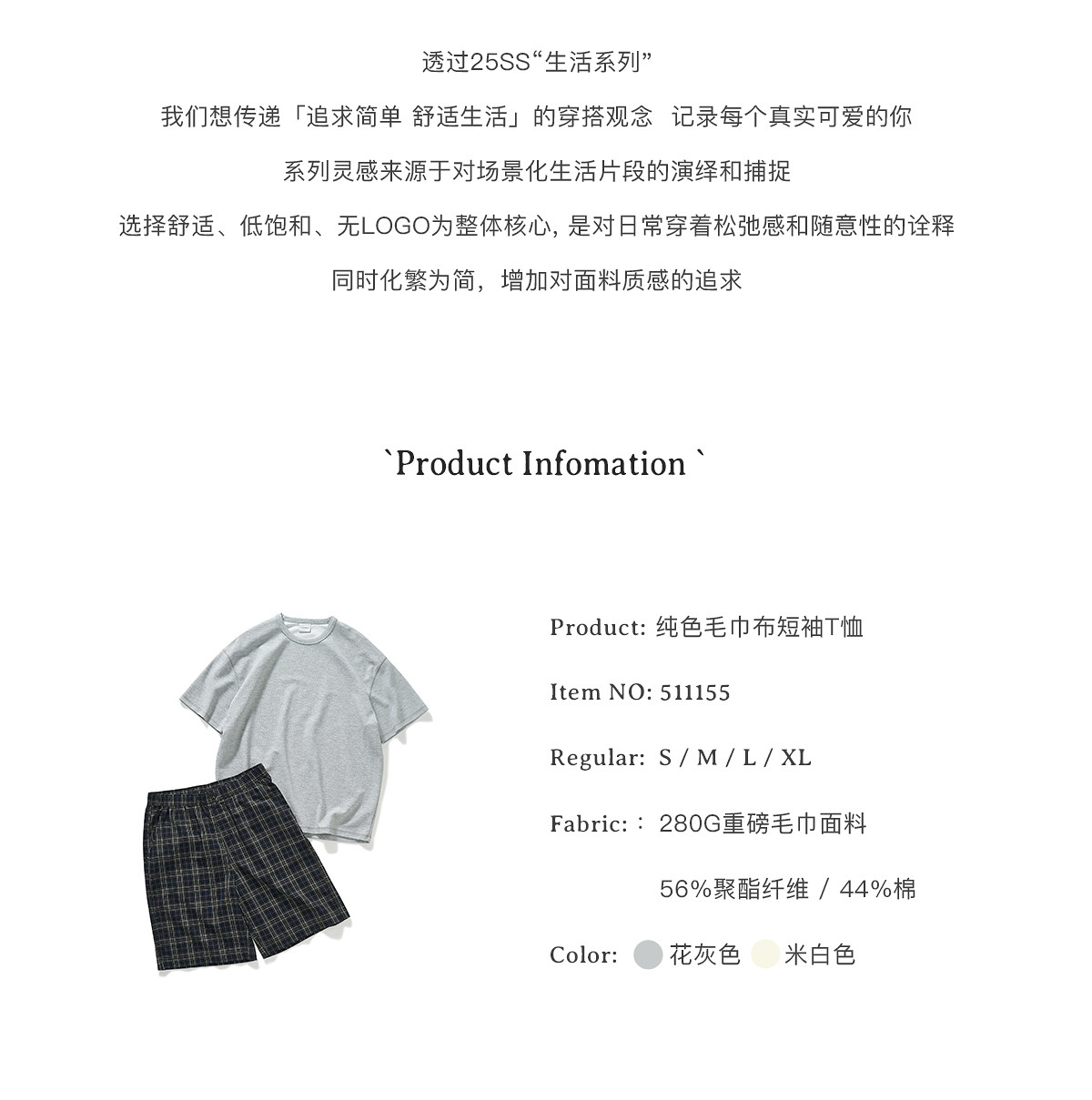 714street重磅纯色肌理感毛巾布短袖T恤男2025夏季新款基础款上衣