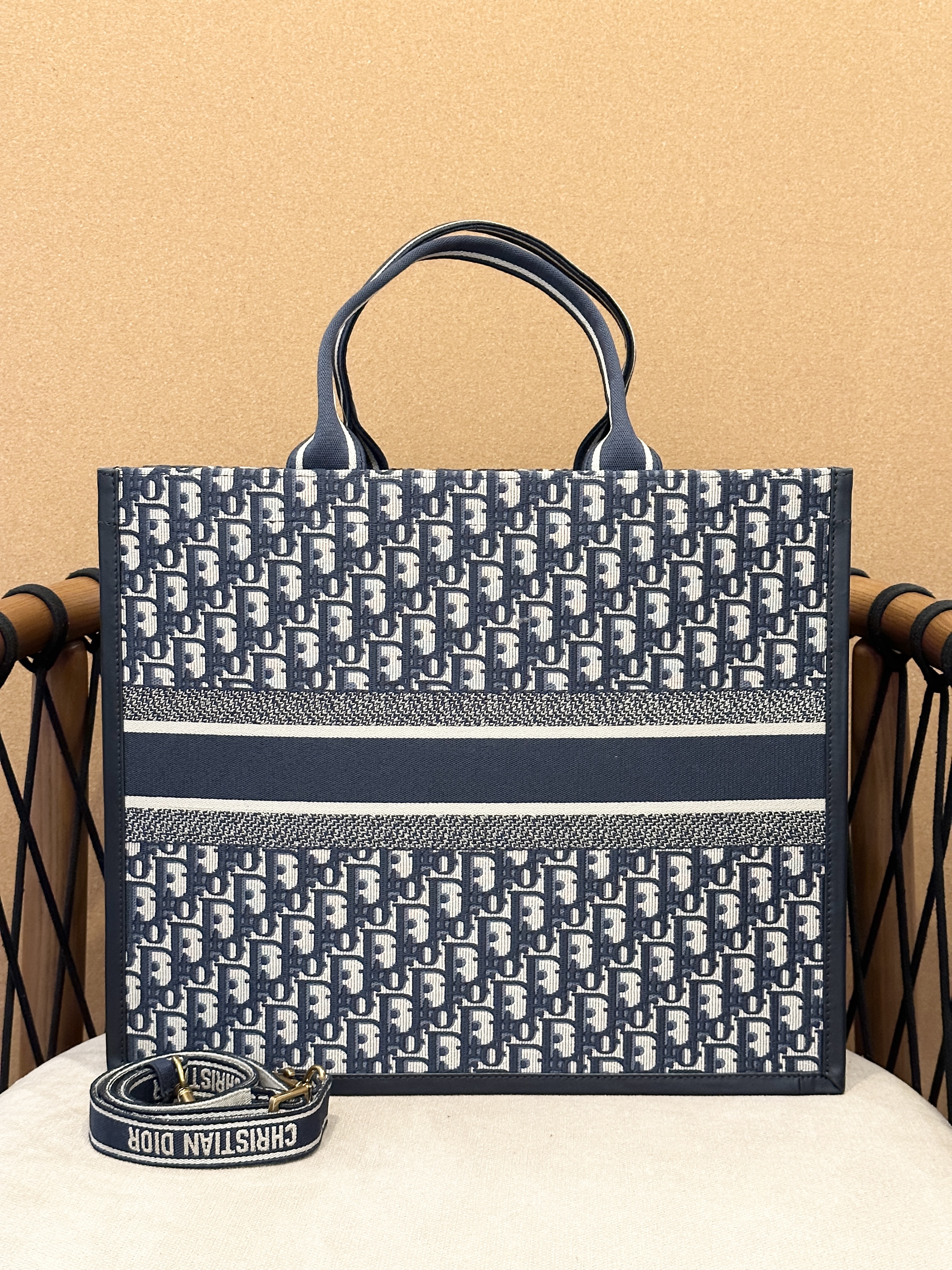 迪奥托特包大号老花蓝皮