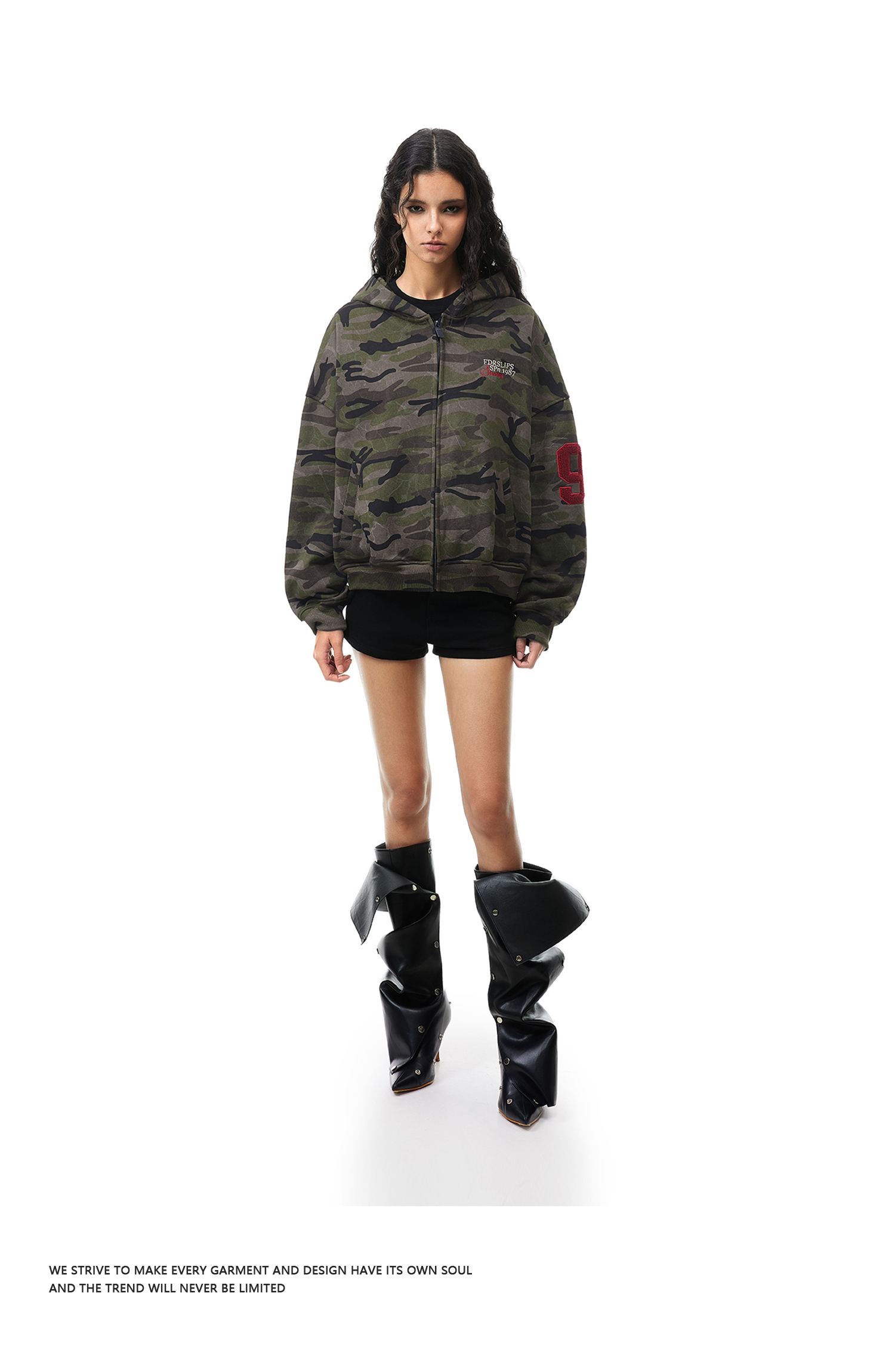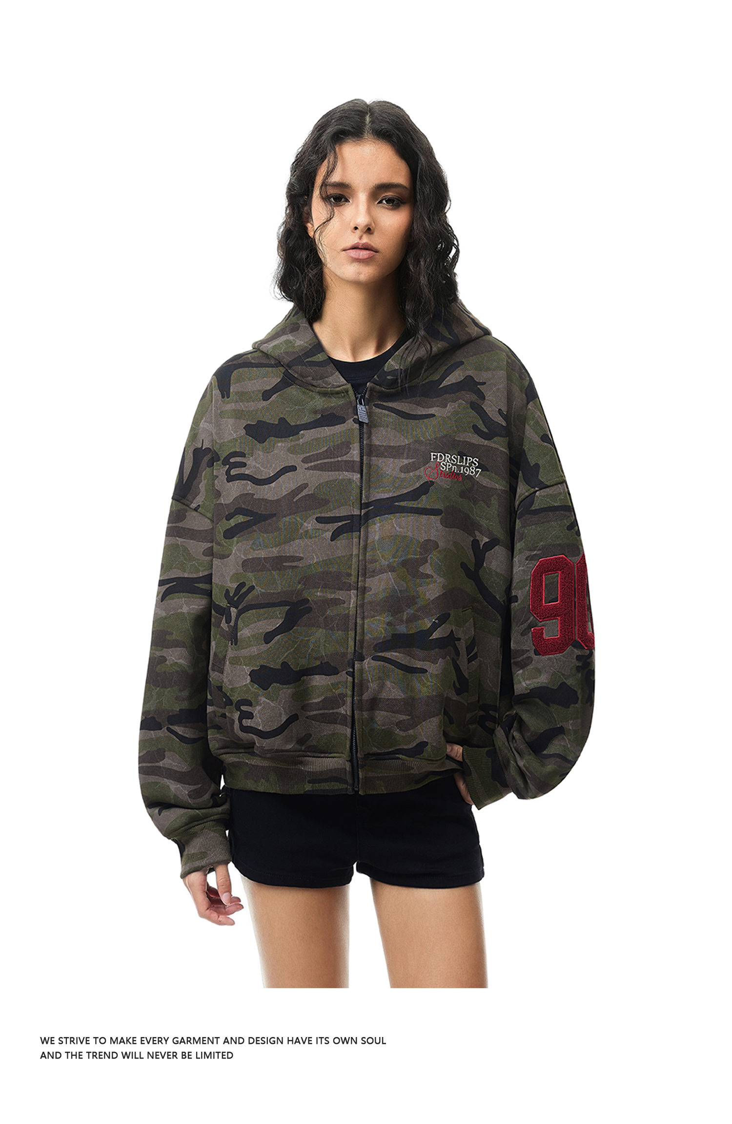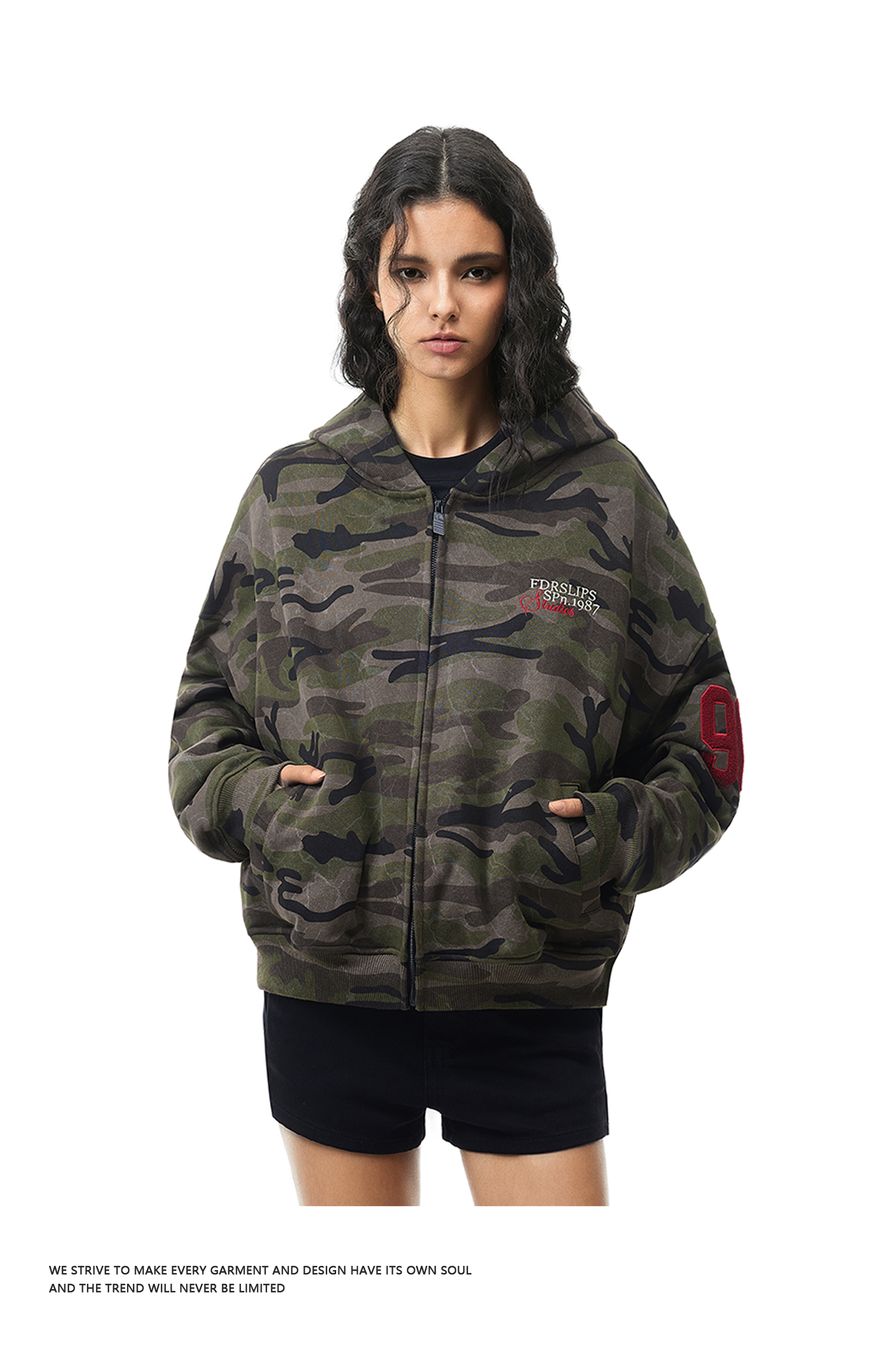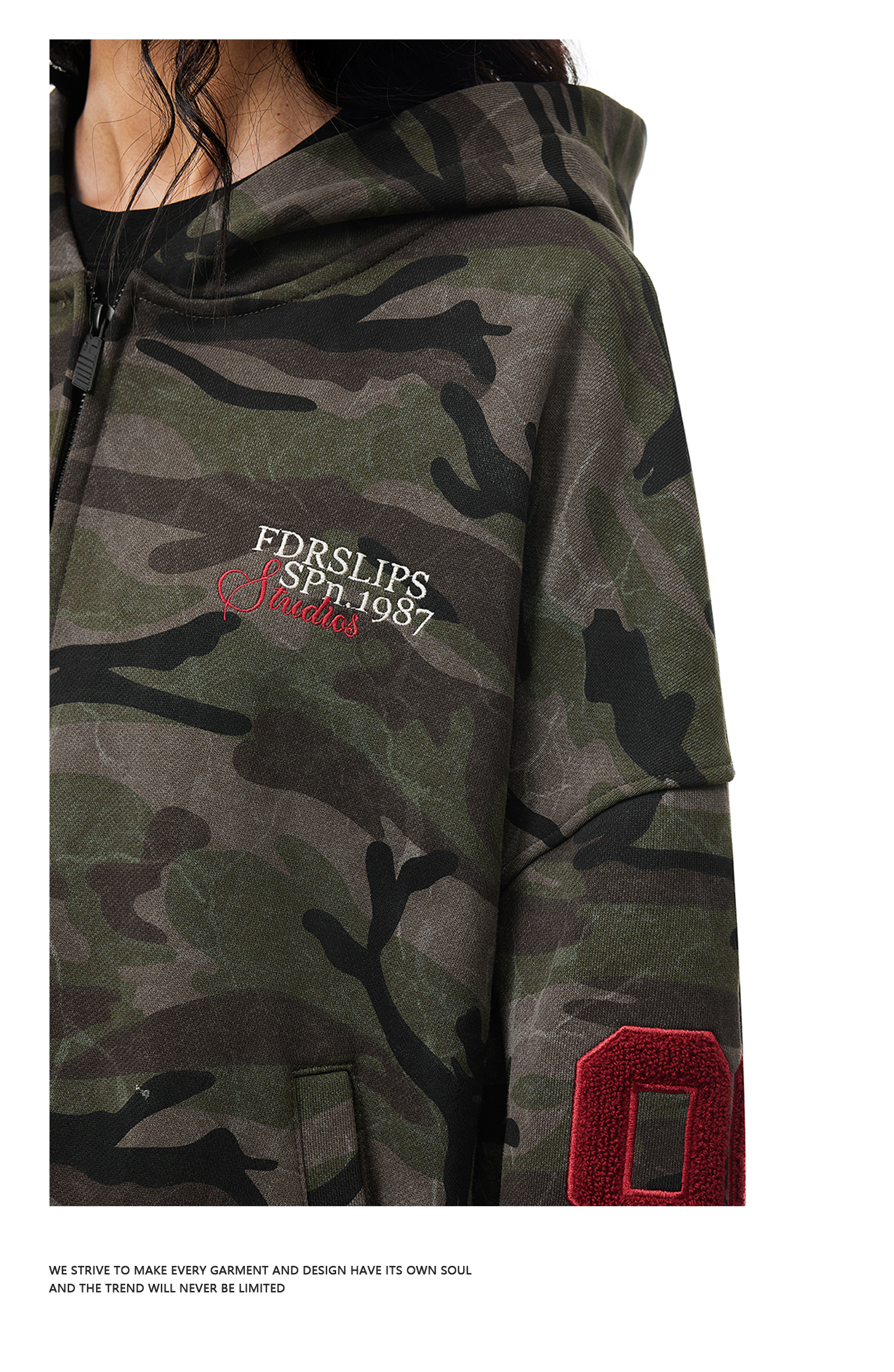 FDR官方店 后背09迷彩开衫连帽卫衣外套男女春季情侣装拉链上衣