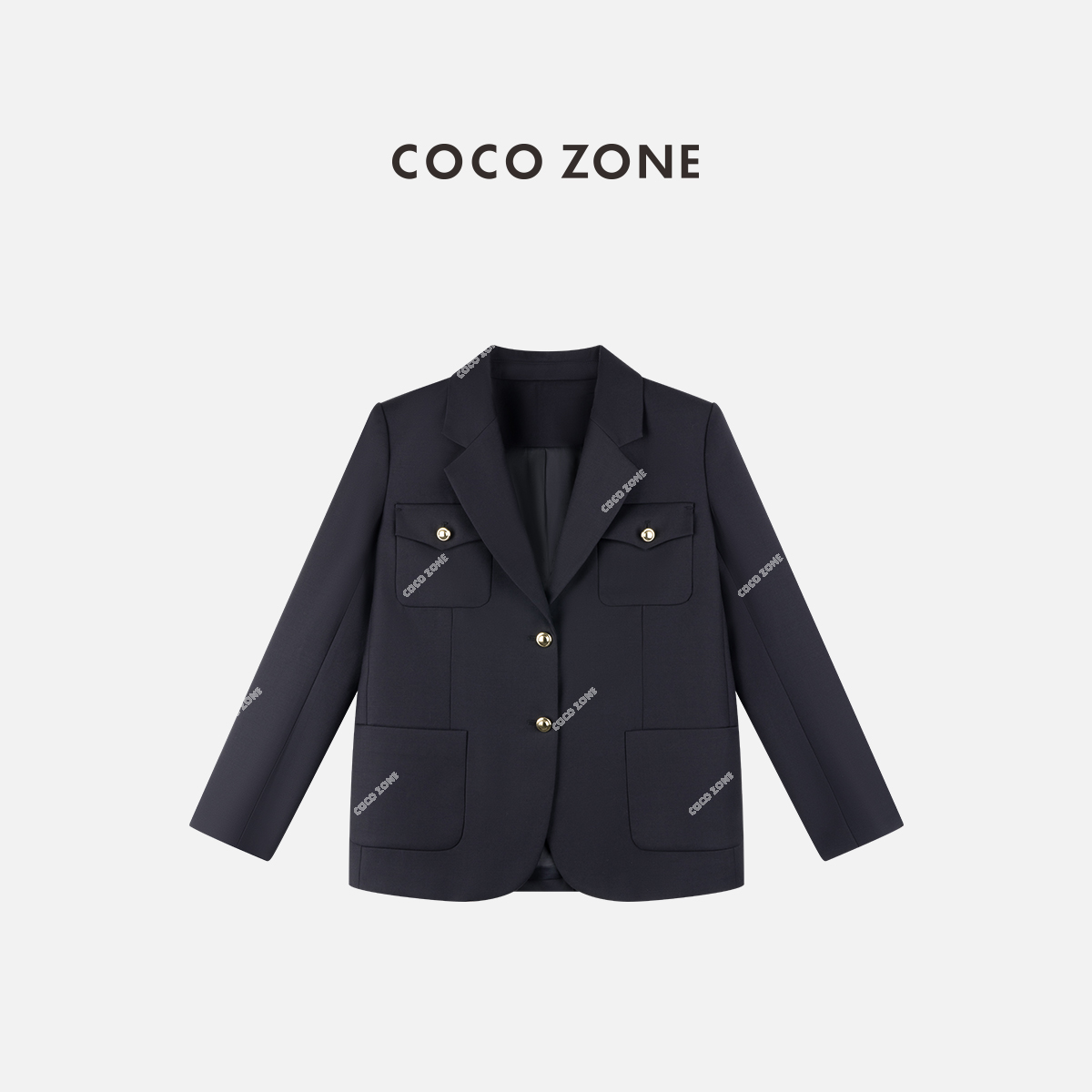 COCO ZONE 100绵羊毛学院风女士翻领西装外套CC1C1814