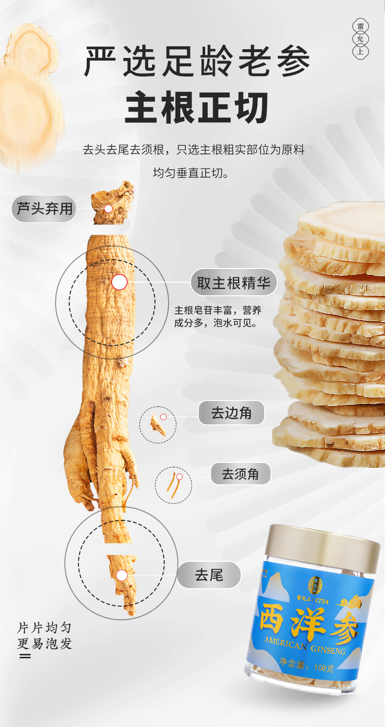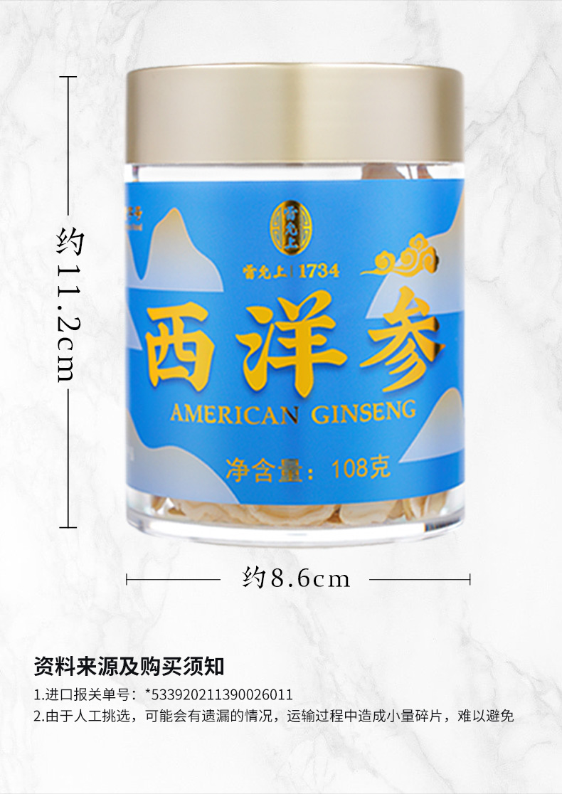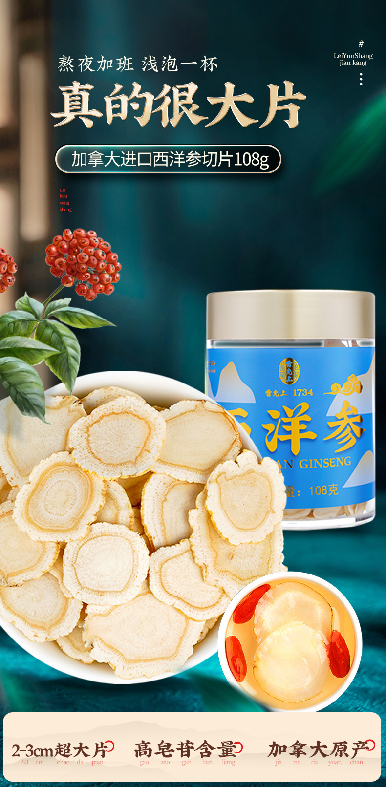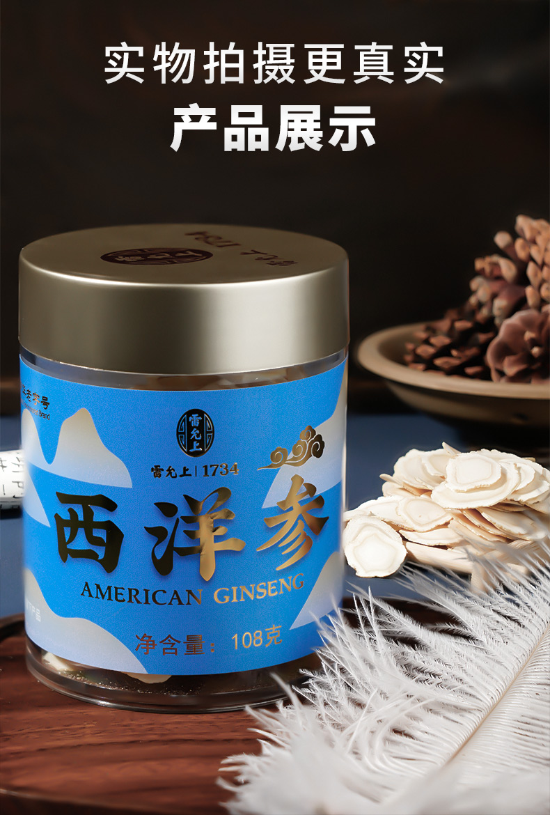 雷允上加拿大西洋参片108g/瓶(2cm-3cm)