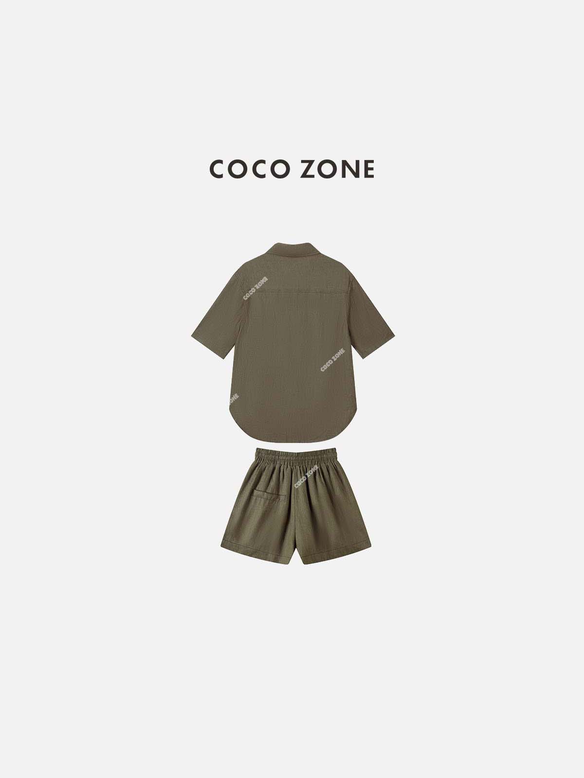 COCO ZONE 时尚休闲POLO领短袖衬衫上衣+系绳短裤 23C18578