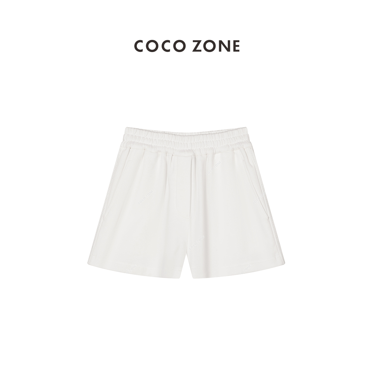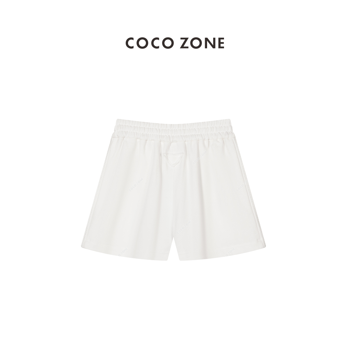 COCO ZONE纯色松紧腰短裤通勤风侧边绣花设计裤子23C29493