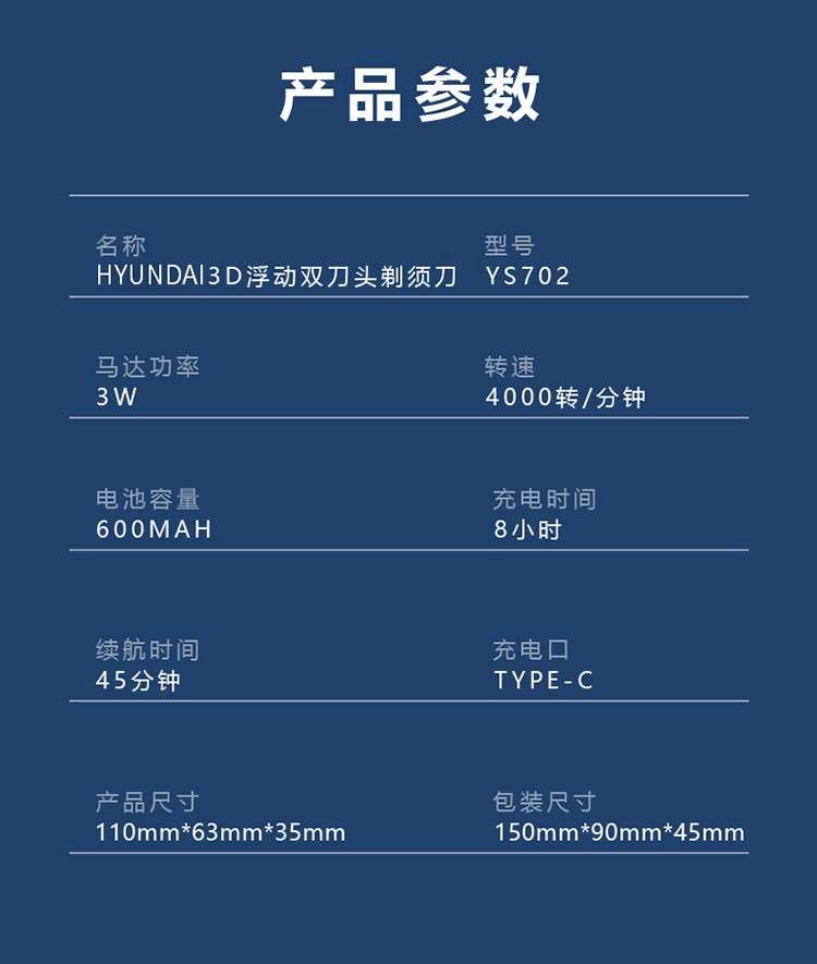 HYUNDAI现代-剃须刀双头浮动剃须刀YS702