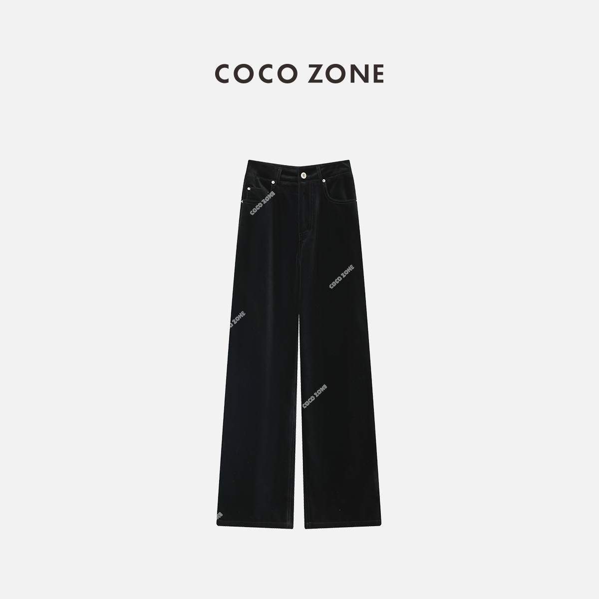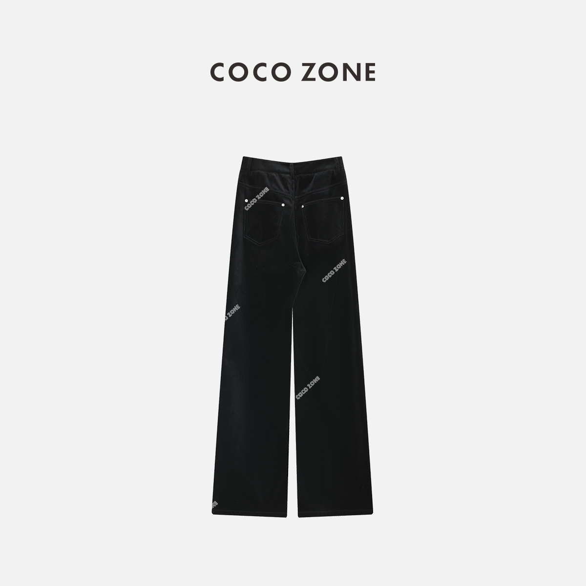 COCO ZONE100%棉小黑裤丝绒裤百搭显瘦直筒裤 23C19432