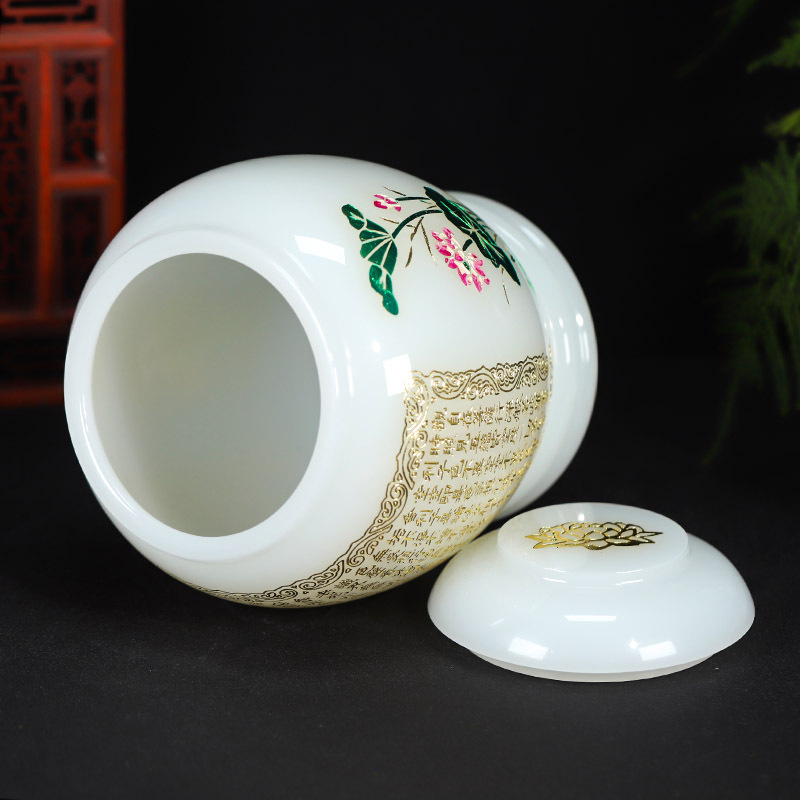 白玉瓷琉璃骨灰坛般若波罗蜜多心经莲花经文骨灰桶21*23cm