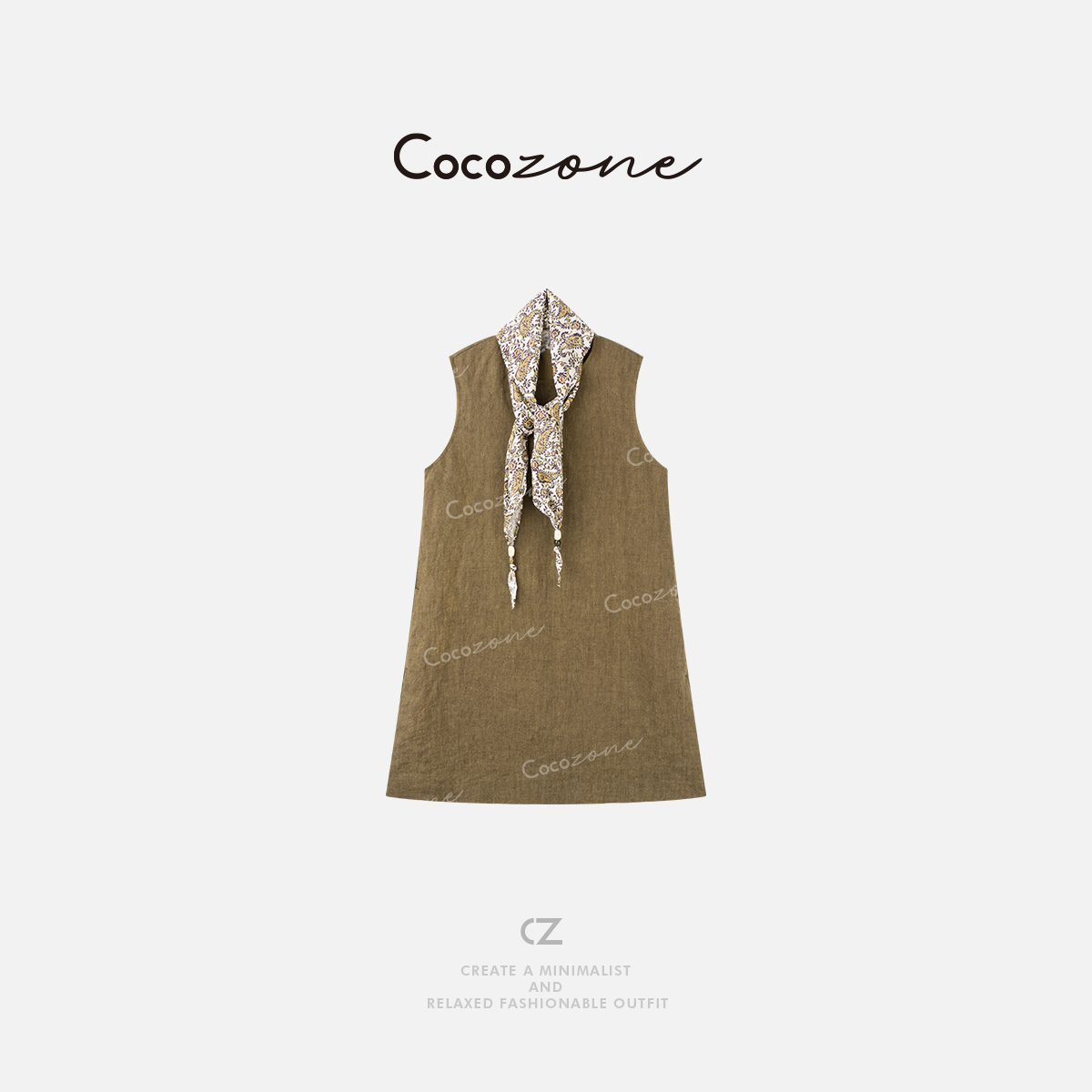 COCO ZONE 刘一一 【100亚麻】圆领无袖垂坠感连衣裙CD2A1251