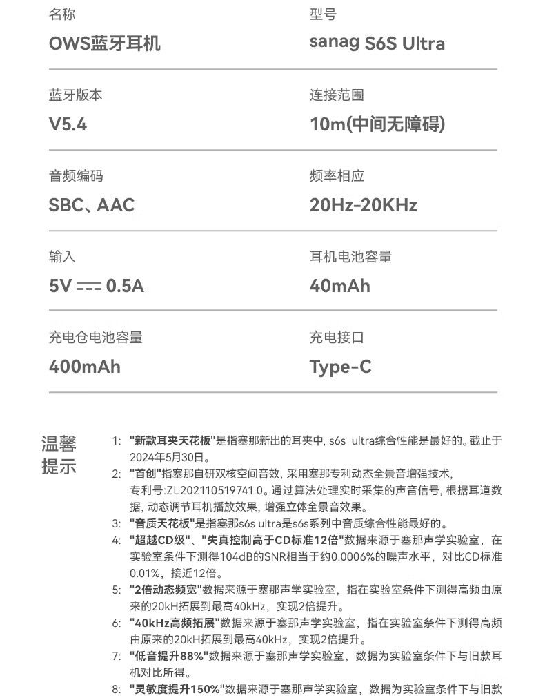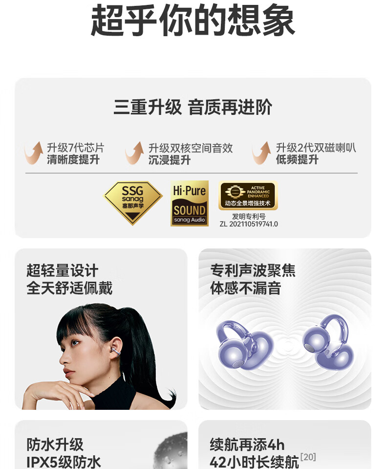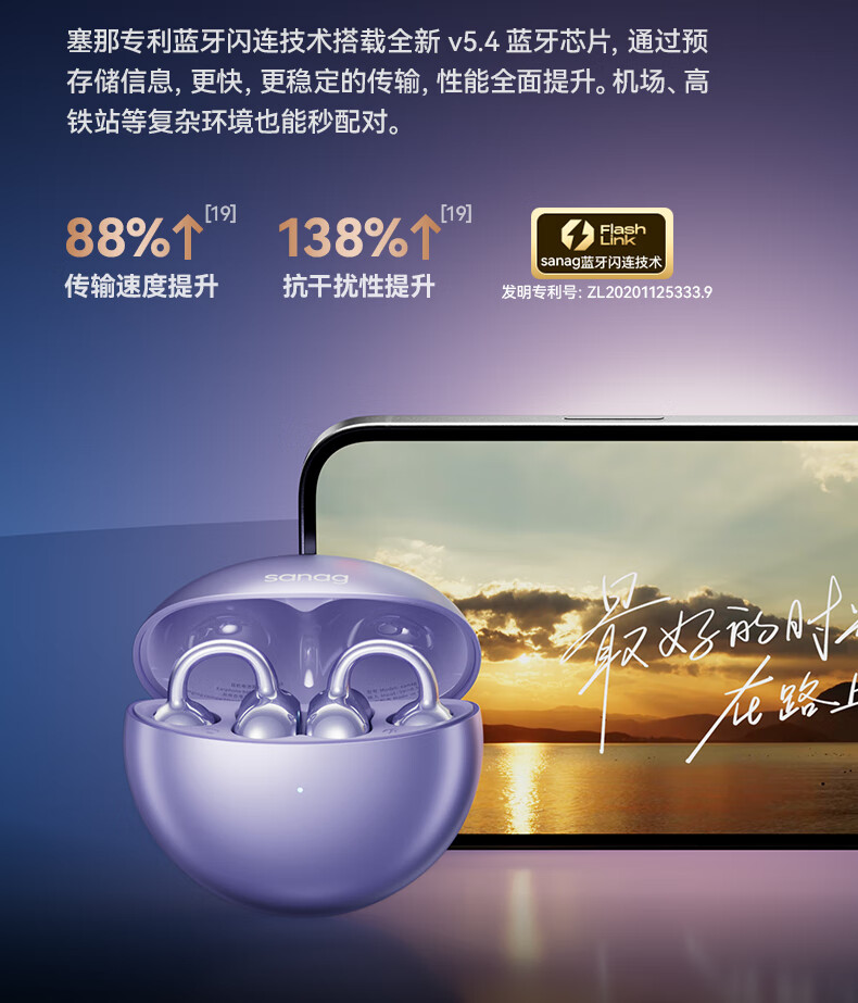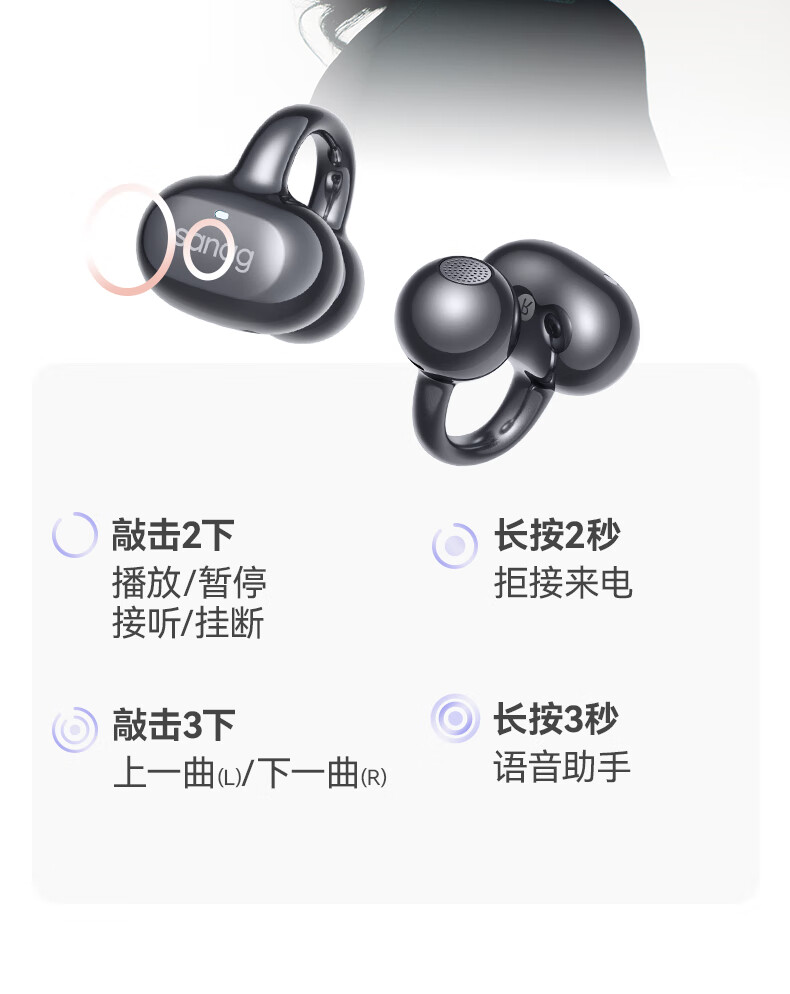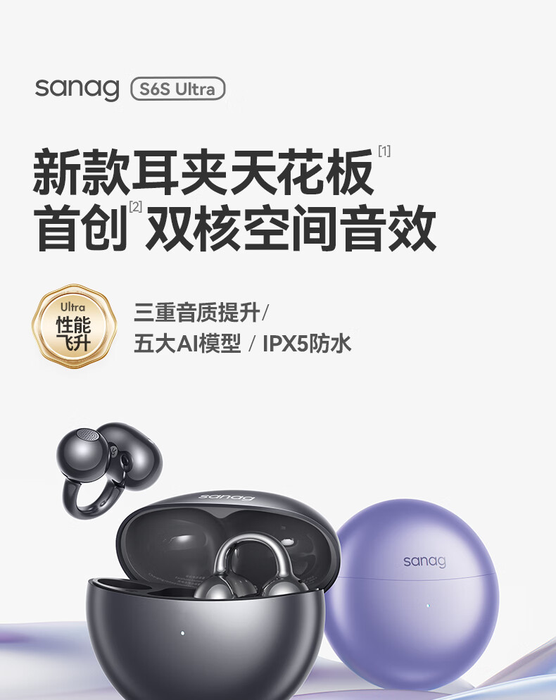 塞那 SANAG蓝牙耳机耳夹式不入耳运动跑步降噪耳机S6Spro