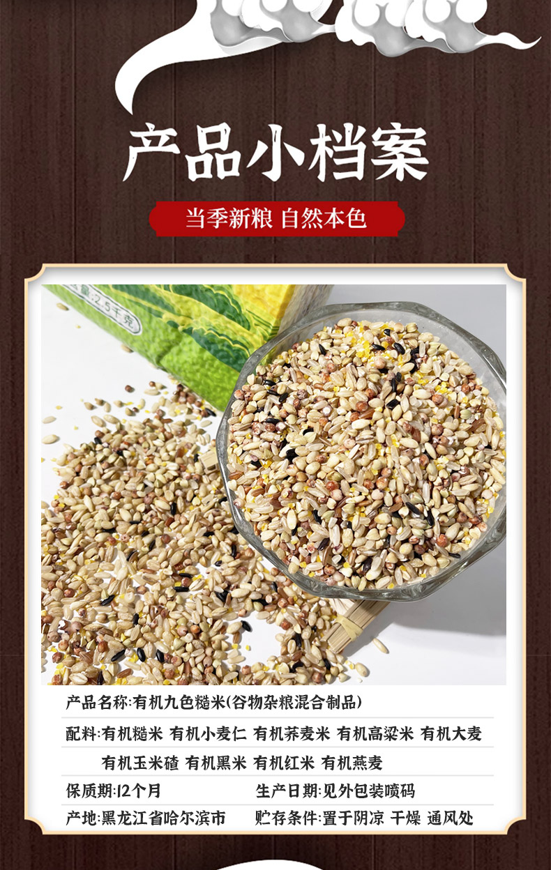 有机九色糙米5斤装五谷杂粮粗粮粗饭健身饱腹糙米饭