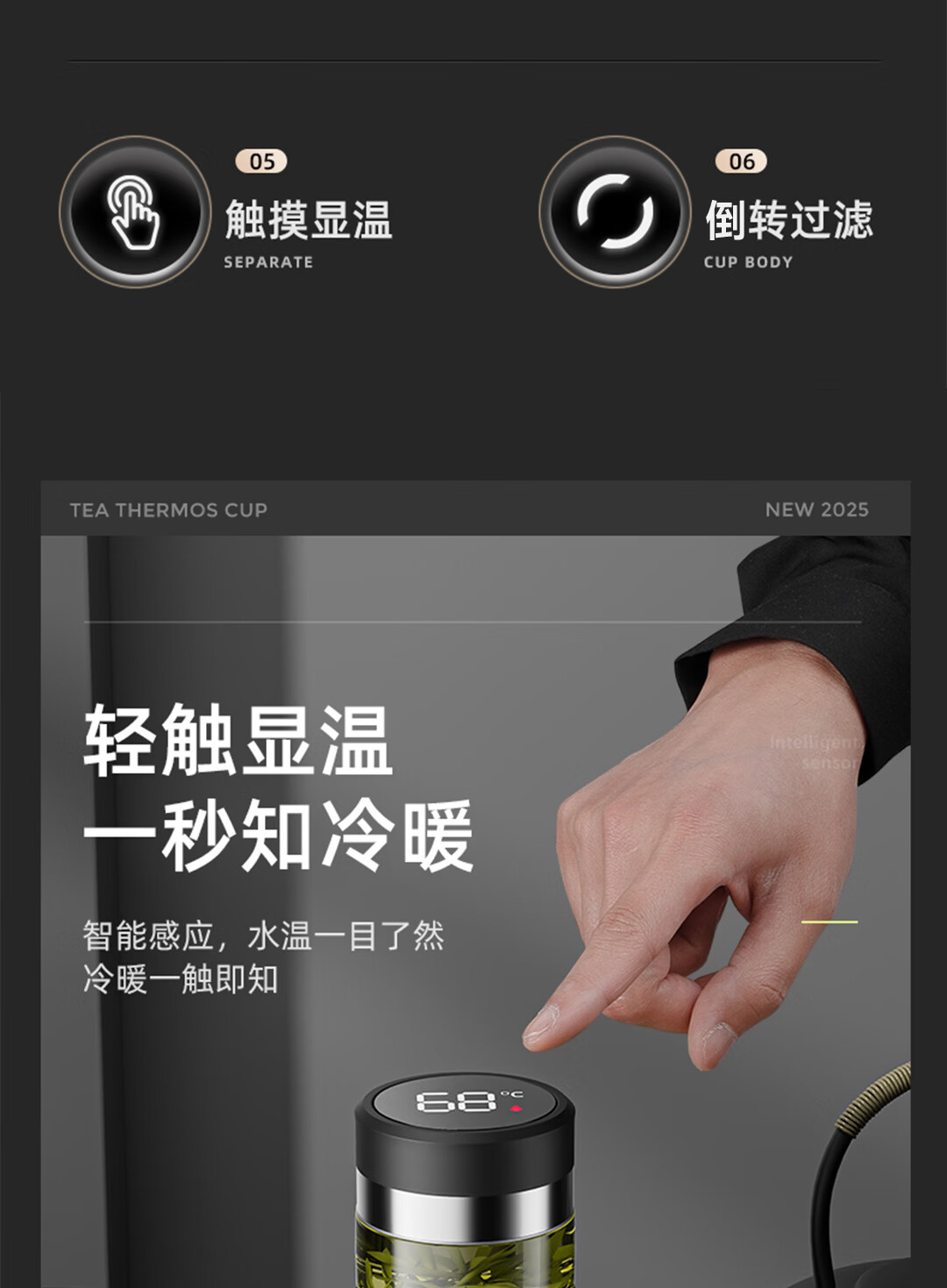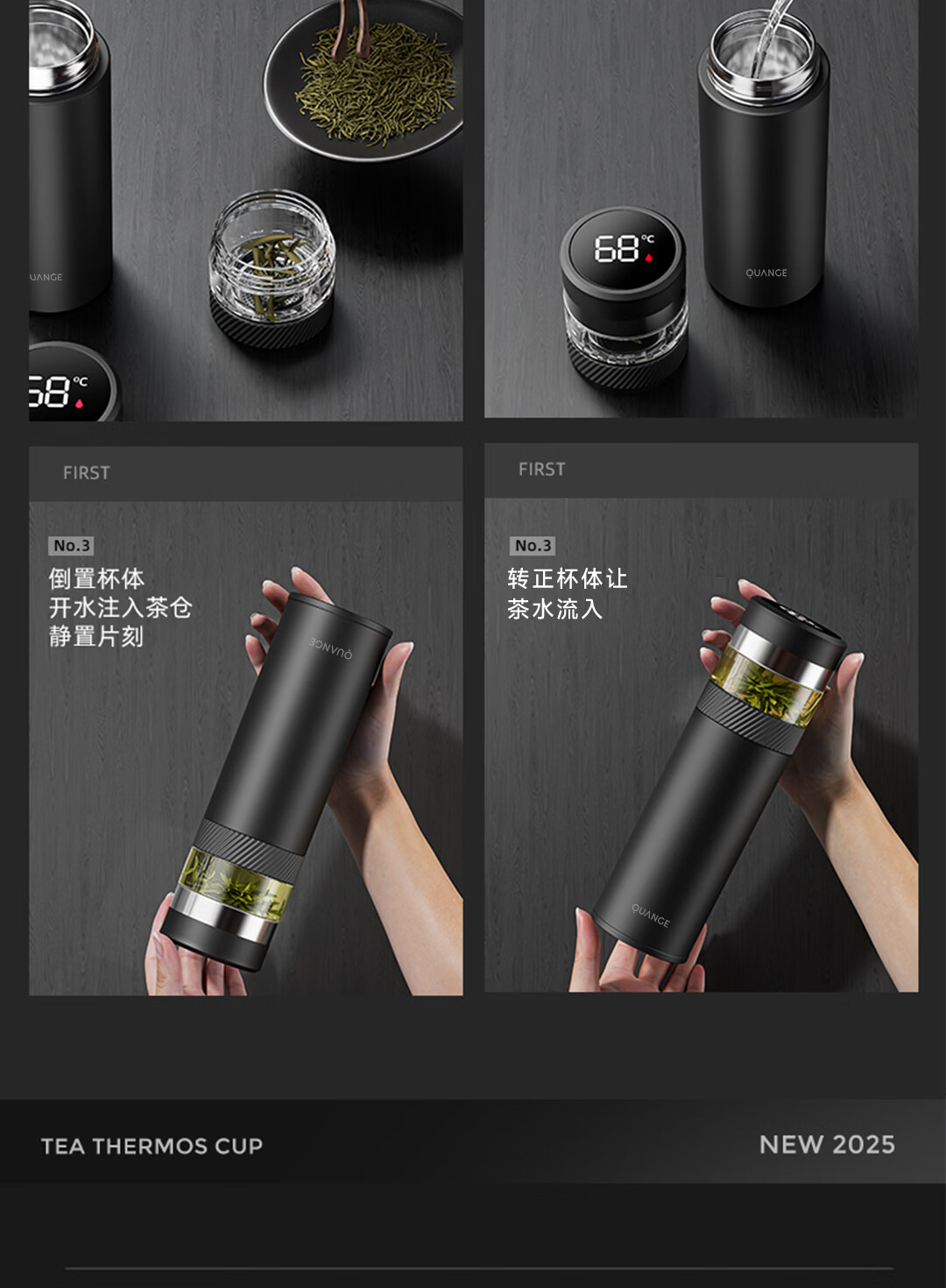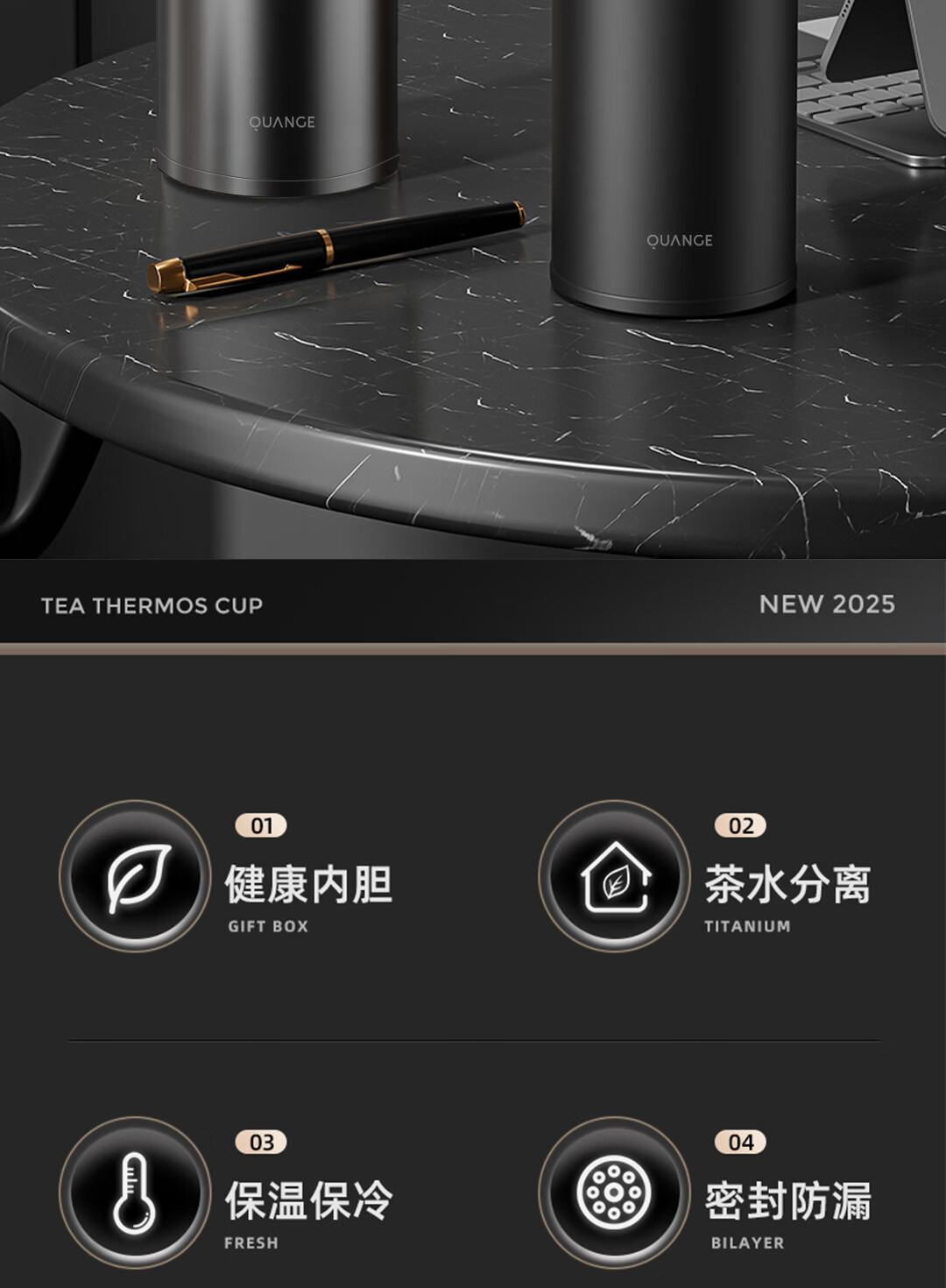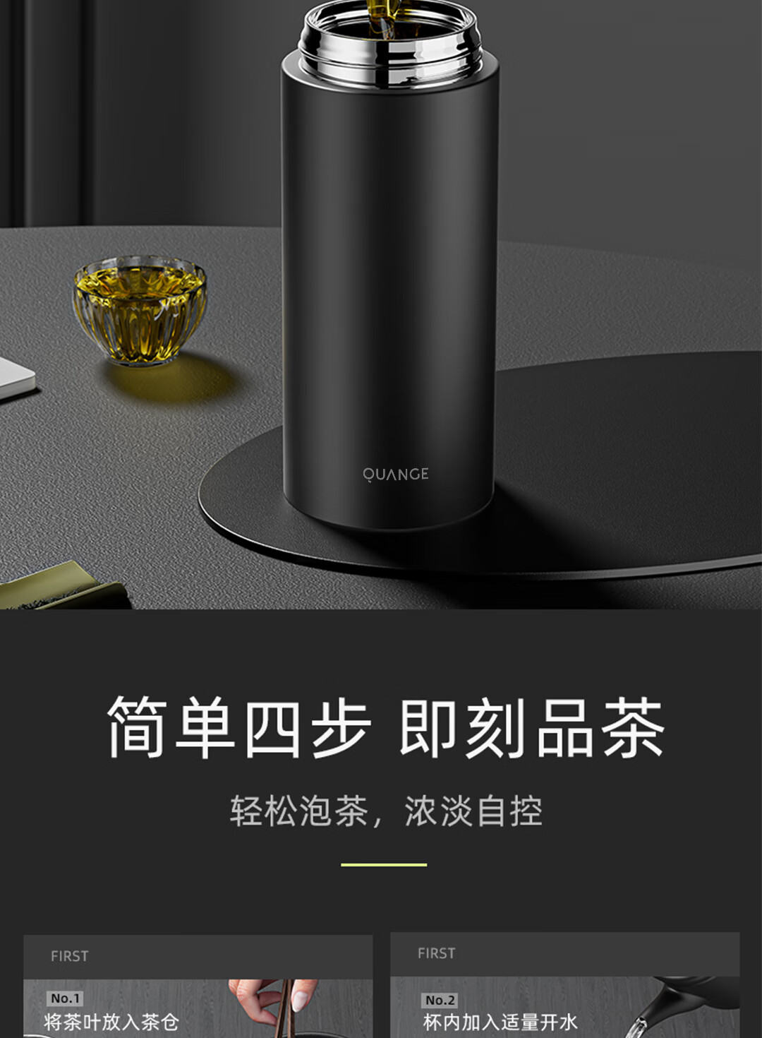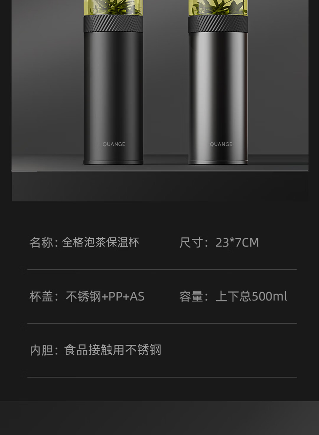 全格泡茶保温杯PC516-420黑色