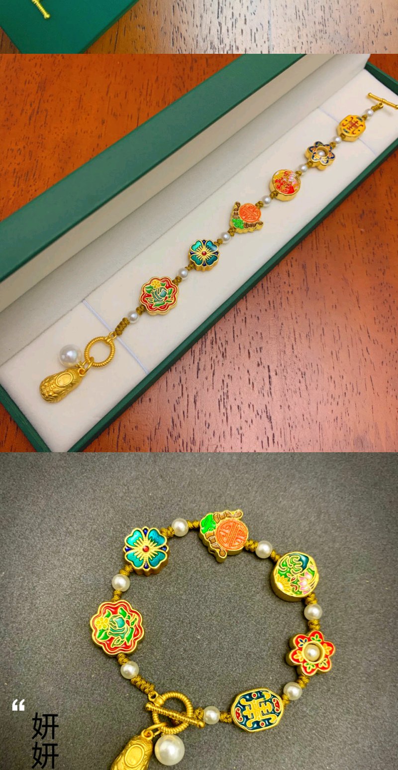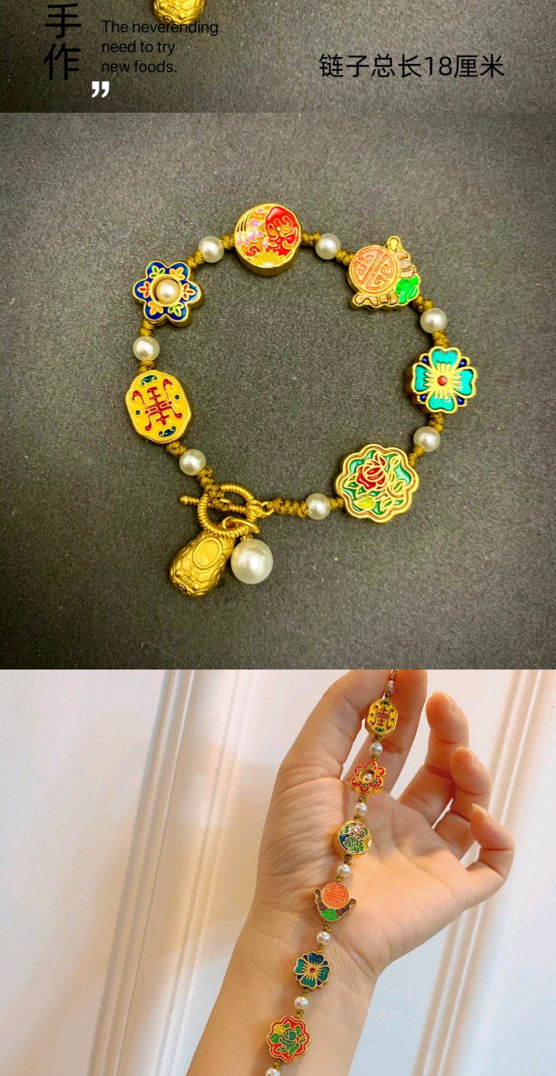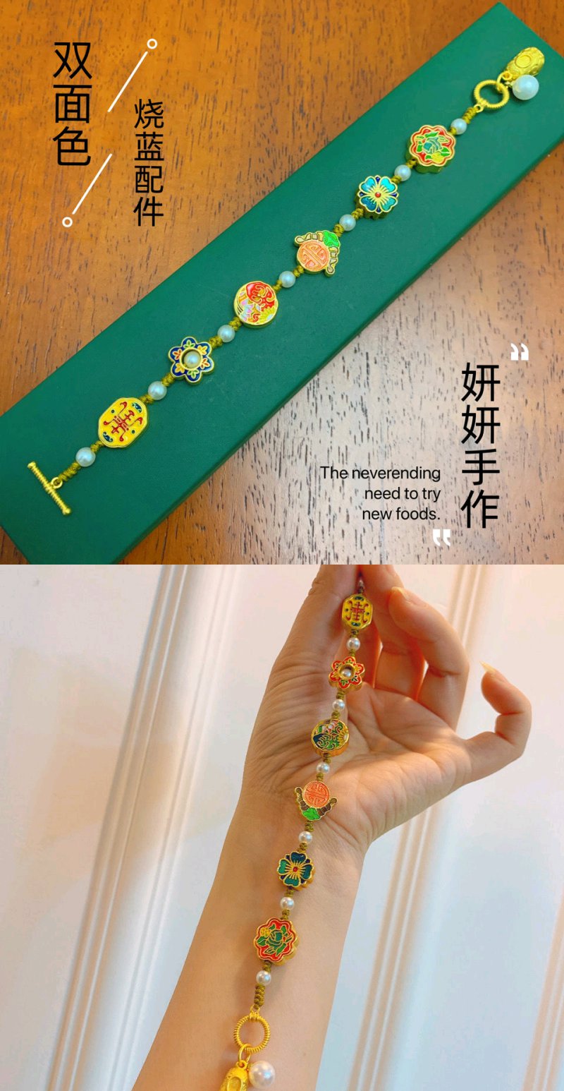 【新款 】古法金复古双面色烧蓝珍珠配件编织手链手绳