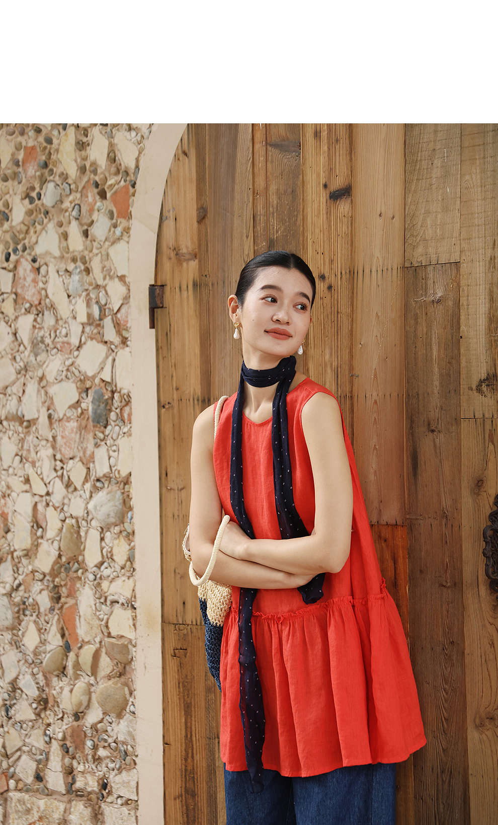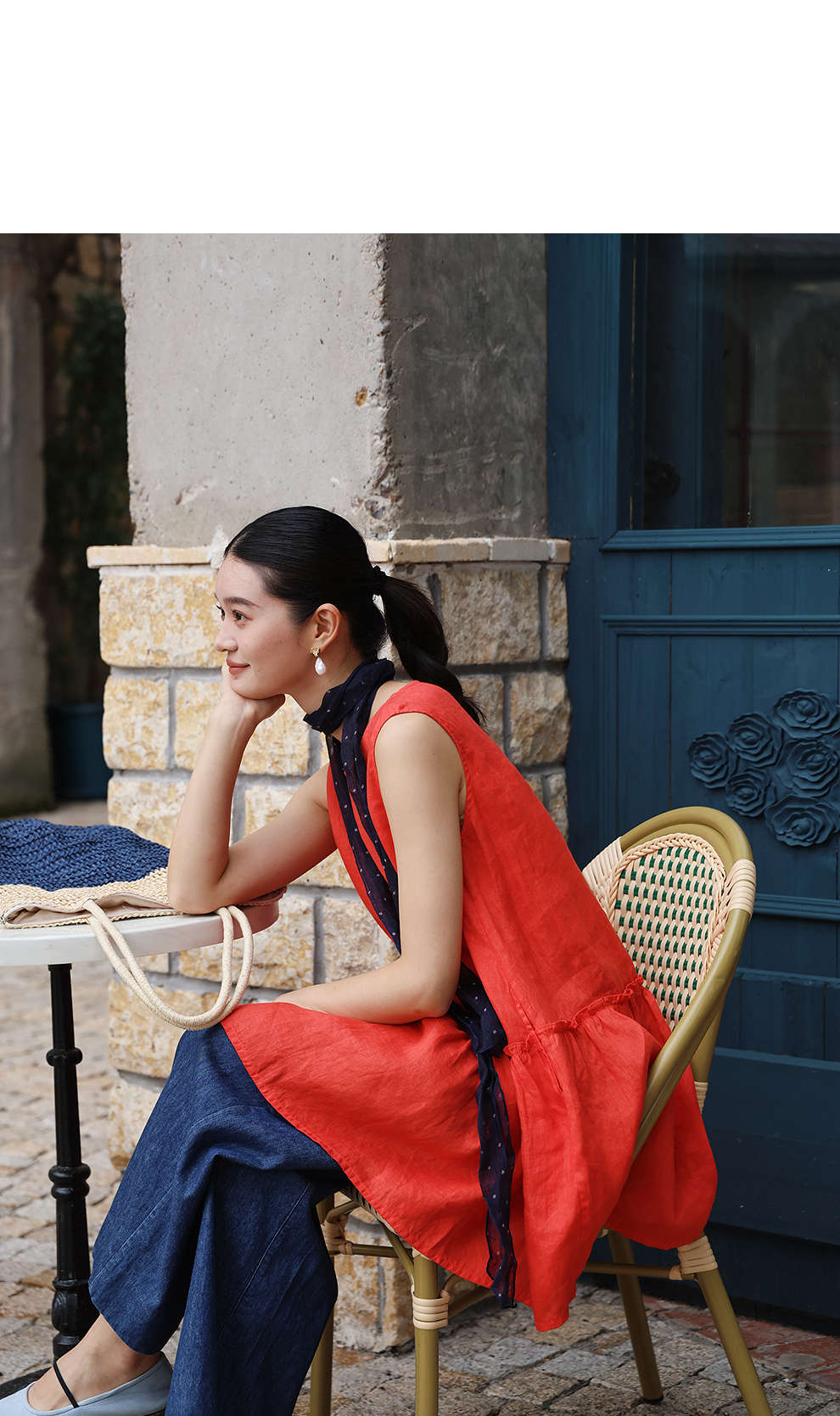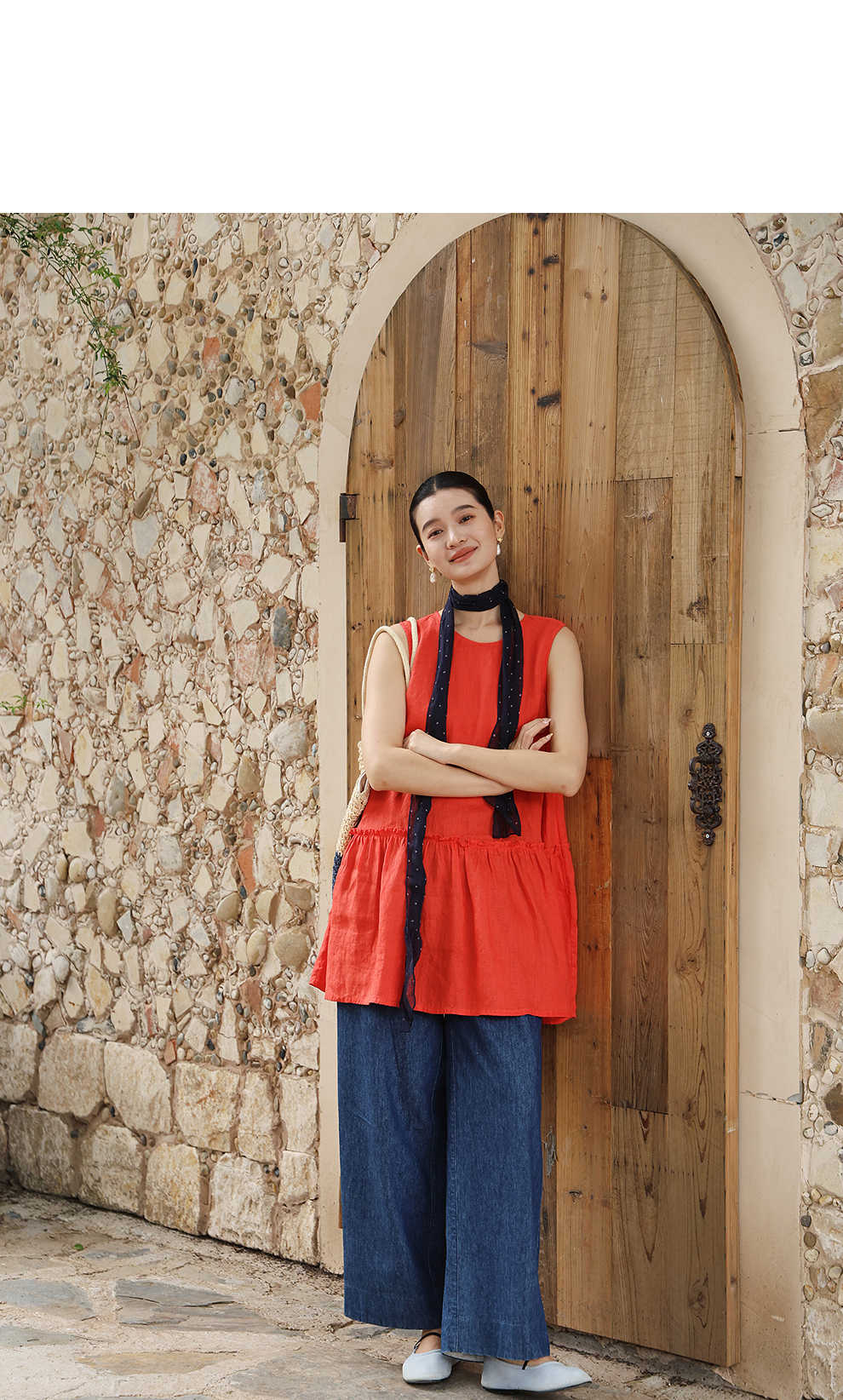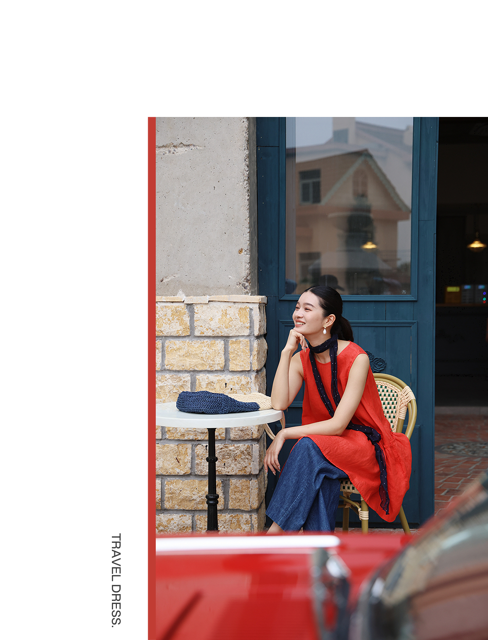 以天然亚麻为载体,融合热烈色彩与自在剪裁为身在城市、心怀远方的女性提供兼具美学与舒适的旅行着装