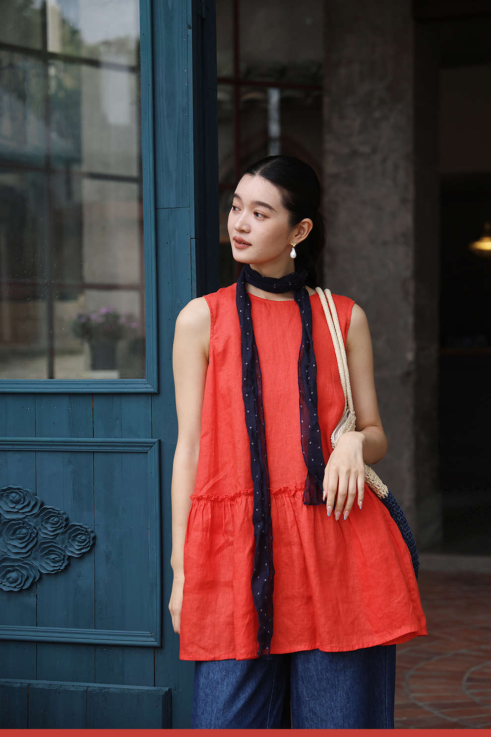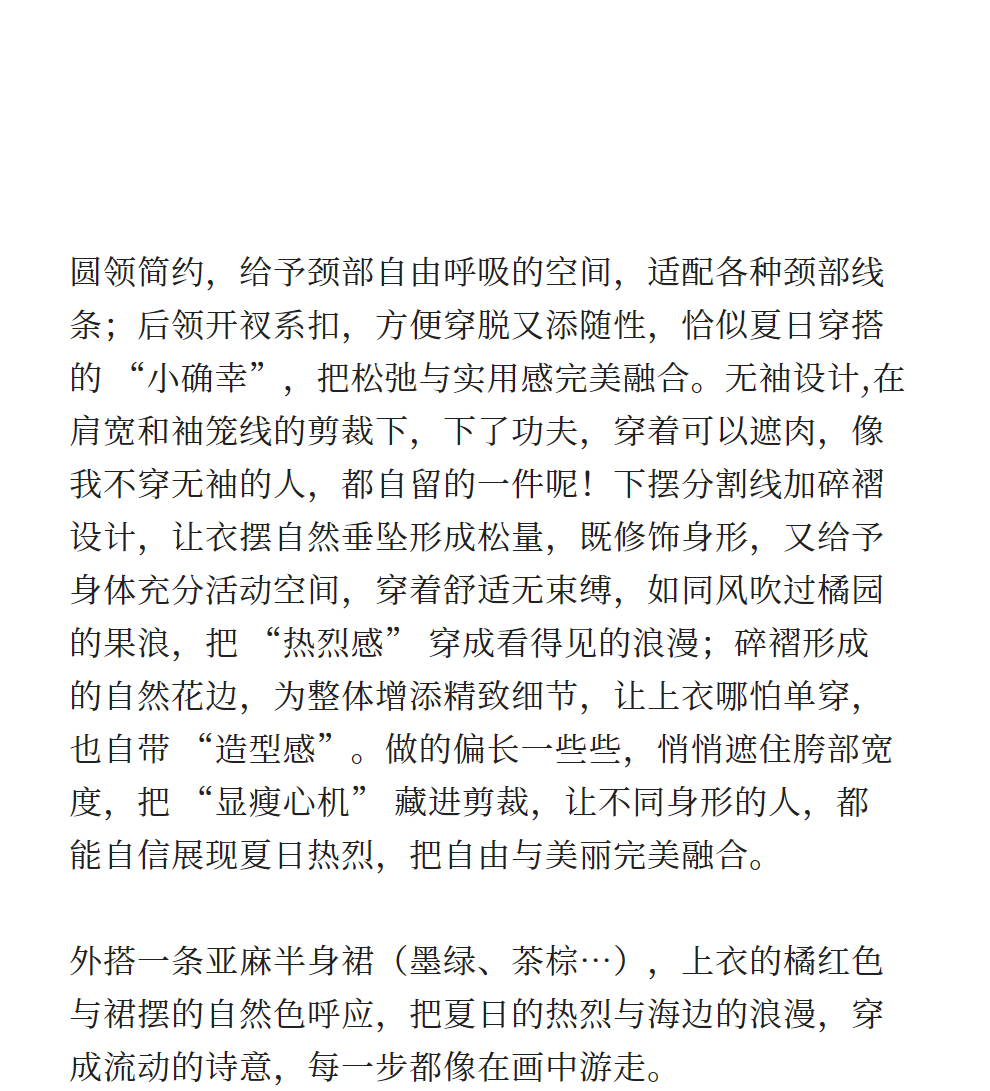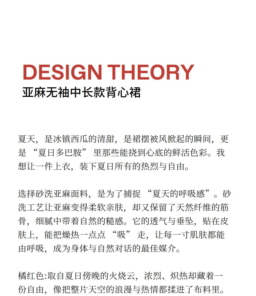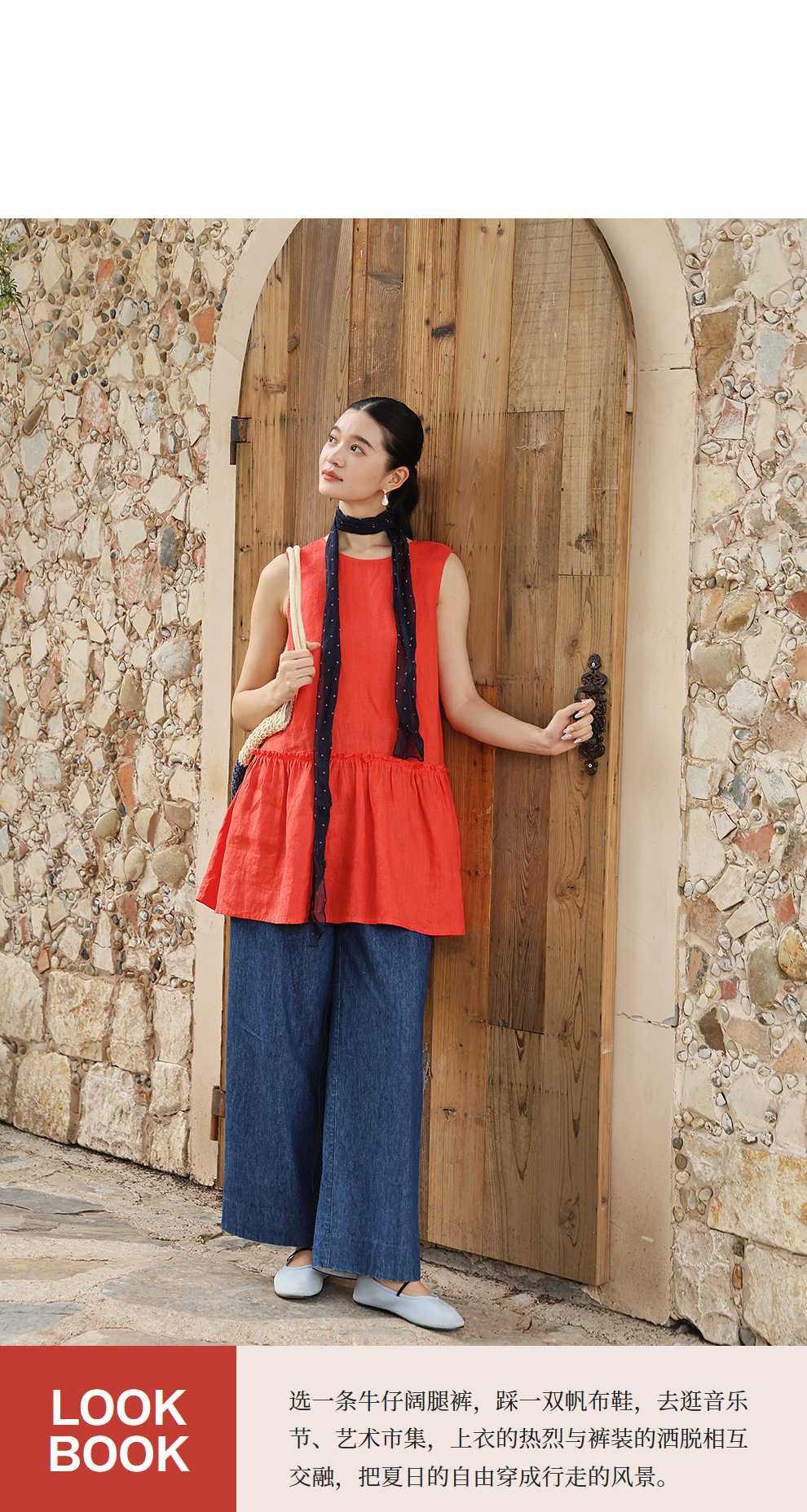 以天然亚麻为载体,融合热烈色彩与自在剪裁为身在城市、心怀远方的女性提供兼具美学与舒适的旅行着装