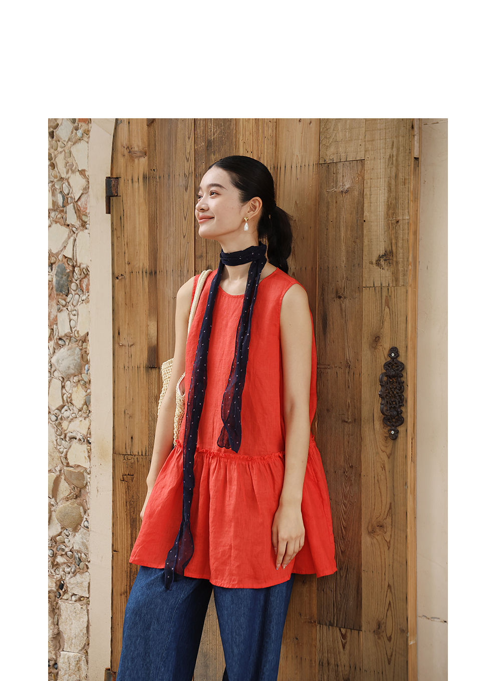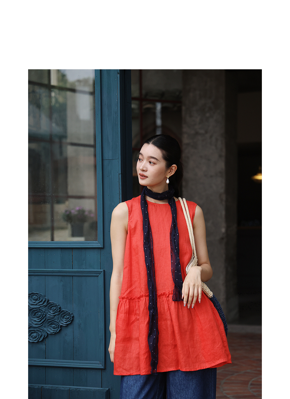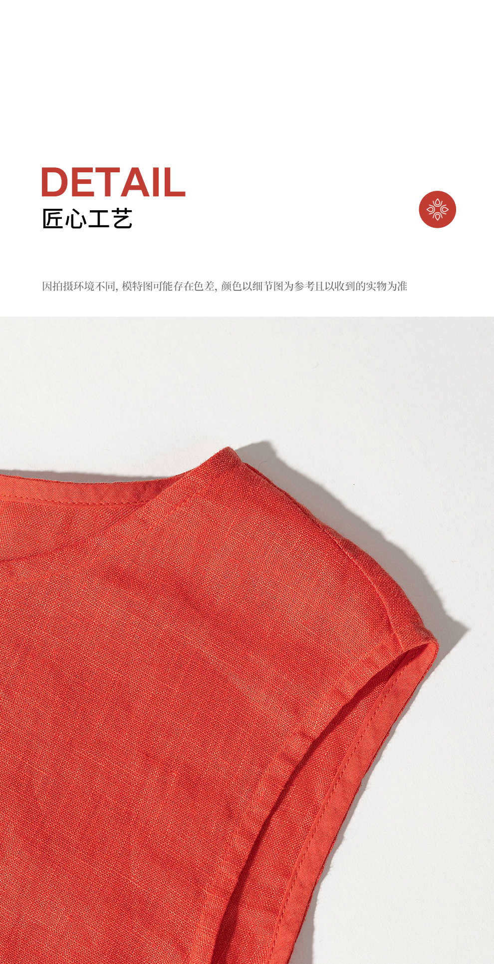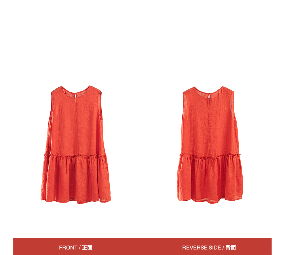 绽放366朵/【多巴胺系列】亚麻圆领下摆拼接花边无袖中长款背心裙