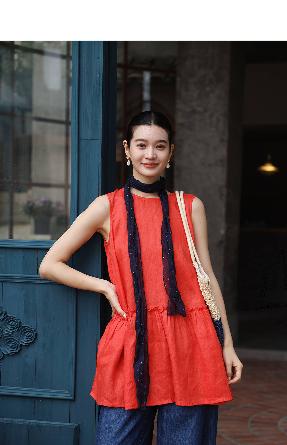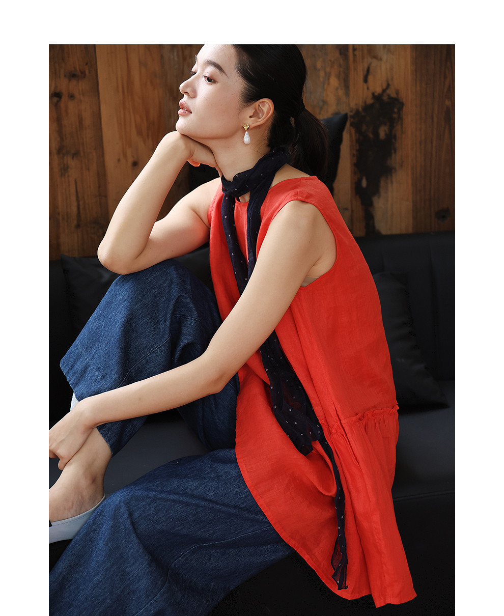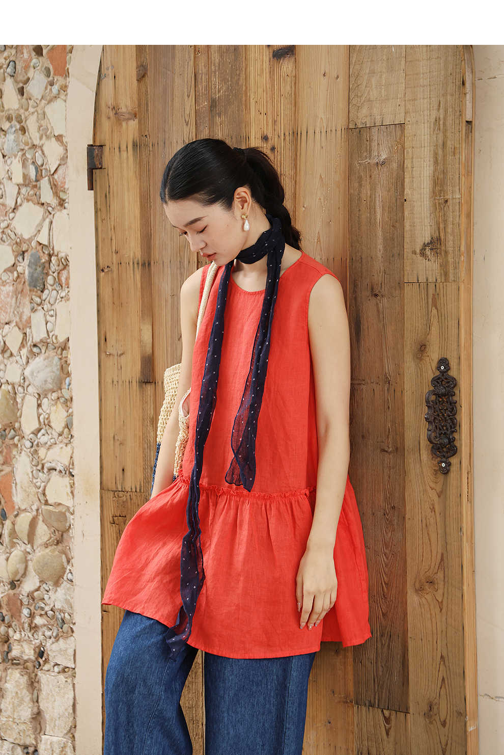 绽放366朵/【多巴胺系列】亚麻圆领下摆拼接花边无袖中长款背心裙