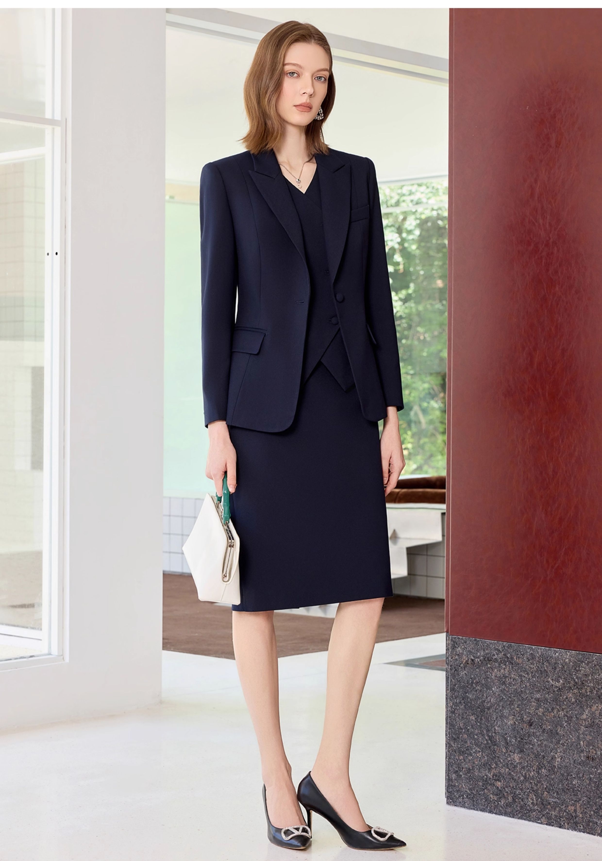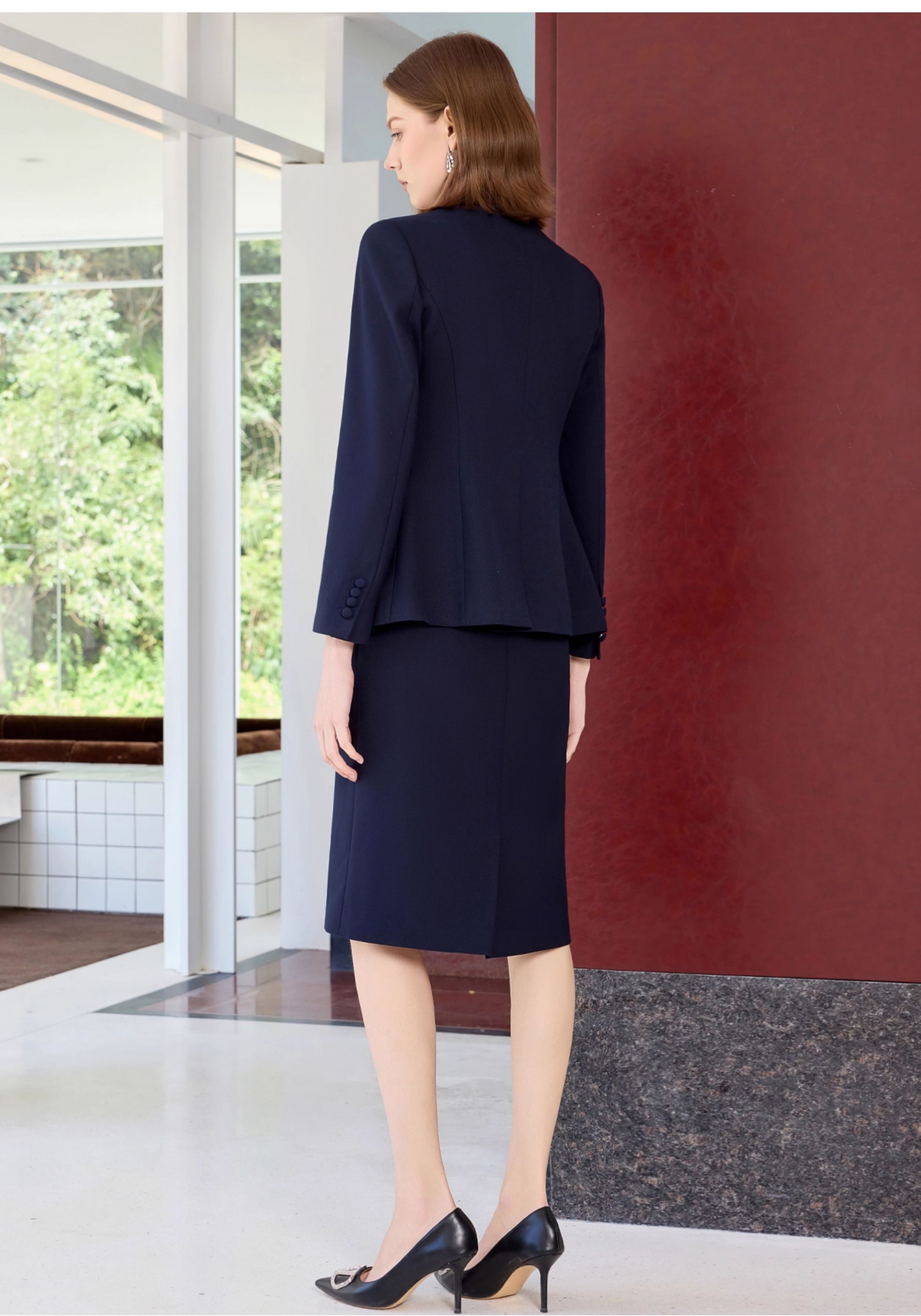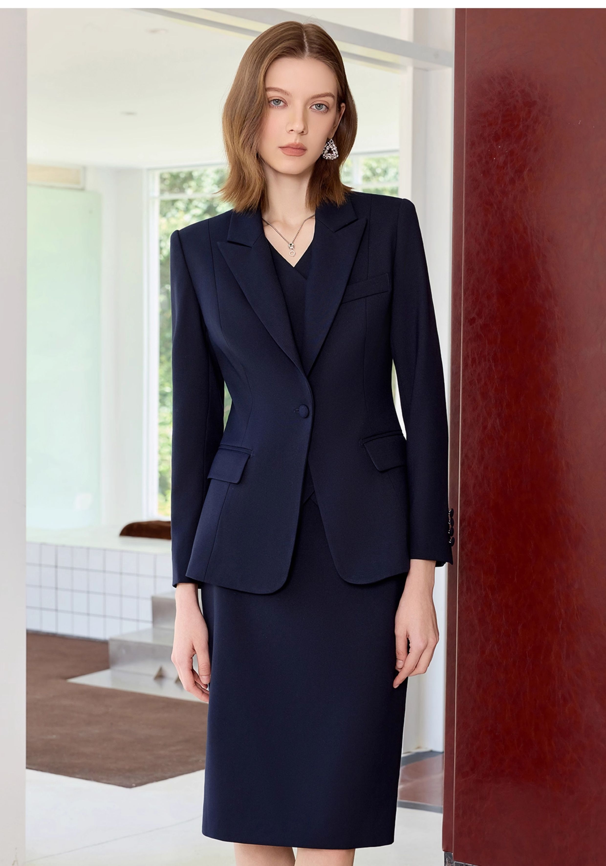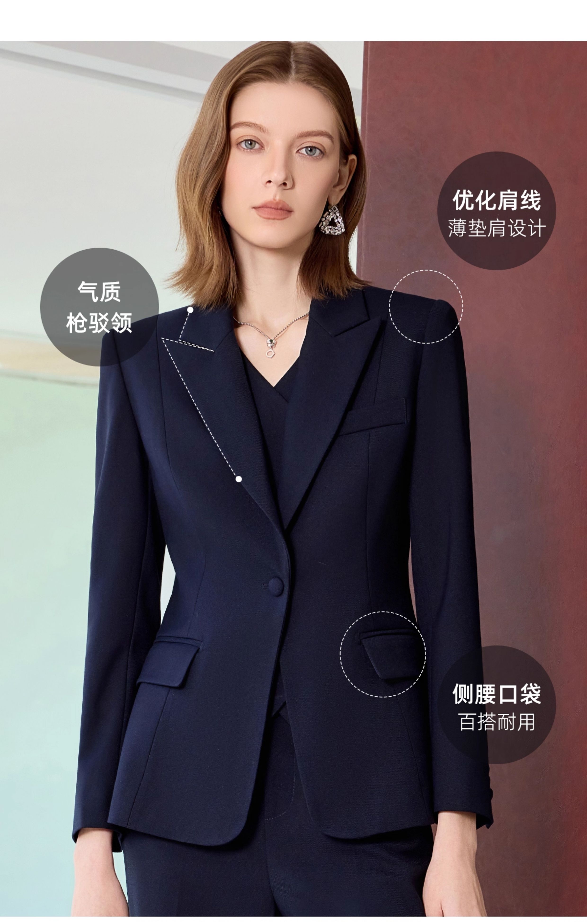 艾尚臣藏青色西装套装裙女高级感秋季气质商务正装小个子职业穿搭