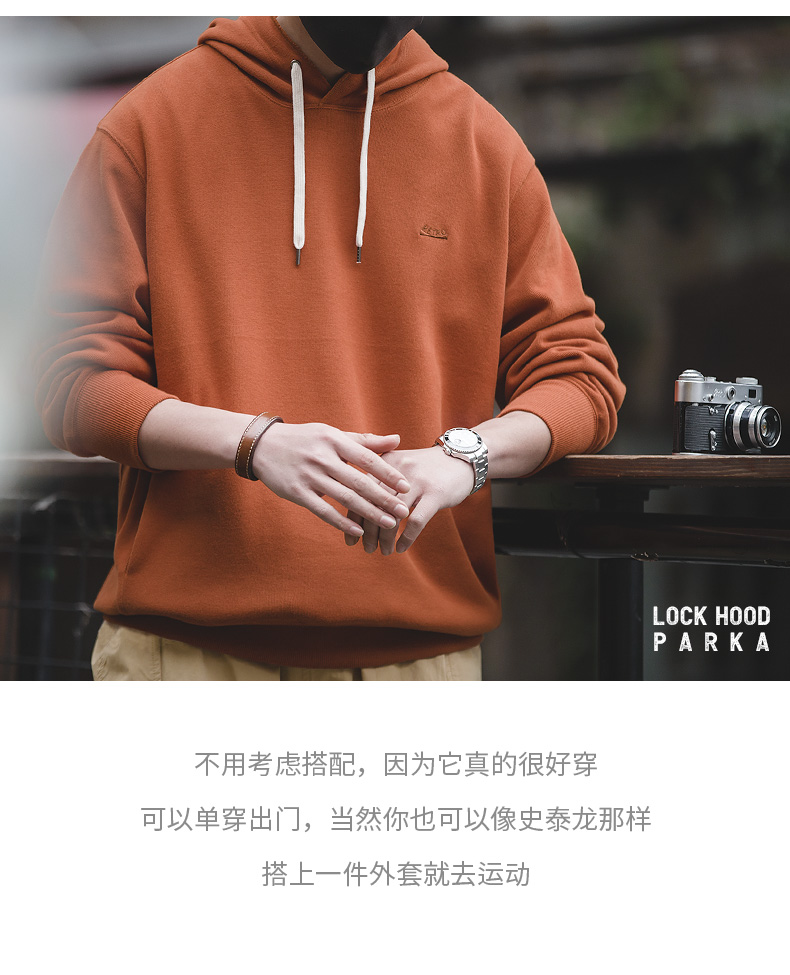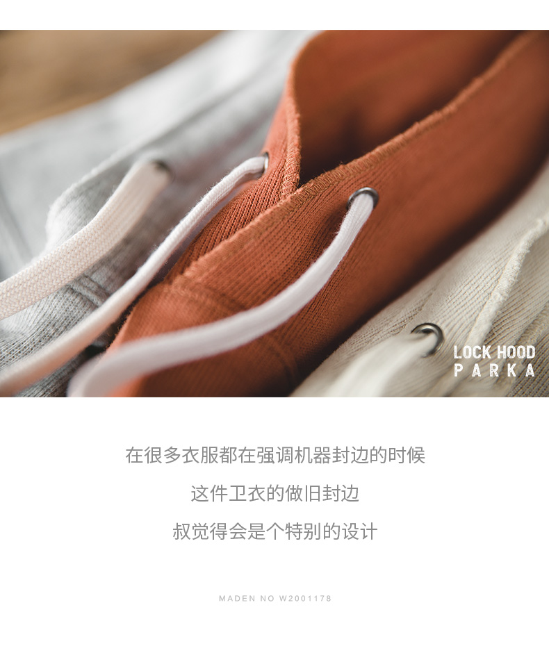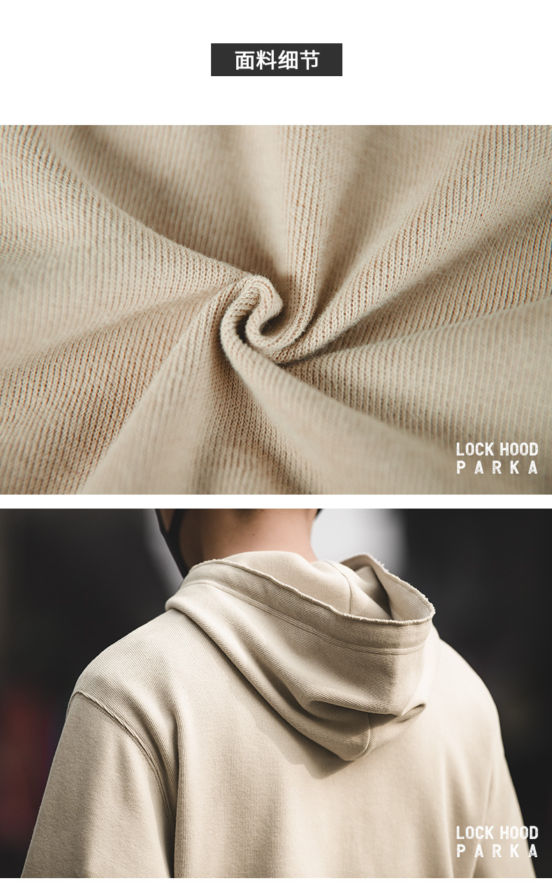 工装优选 日系复古做旧锁帽卫衣阿美咔叽纯色休闲百搭长袖男