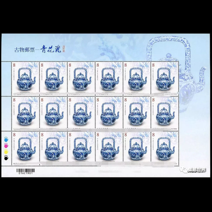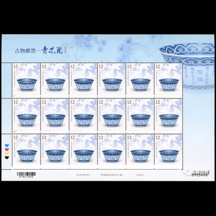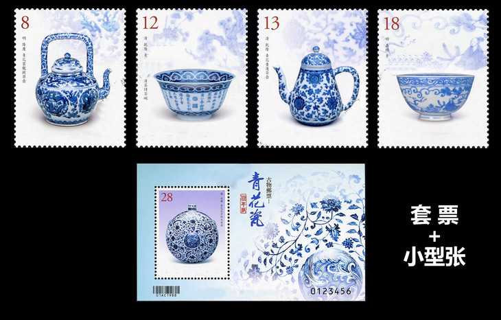 为阐扬我国历代青花瓷文物之美,台湾邮政以国立历史博物馆典藏的青花瓷器为题材,发行《历代皇家古物——青花瓷》第三组邮票。