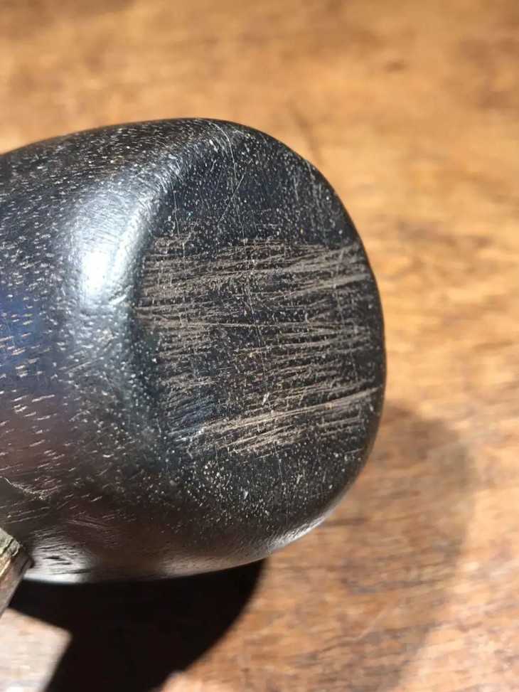 此硬木乐器敲击槌除长年使用之正常磨损痕外,保存完好,包浆皮壳温润细腻。