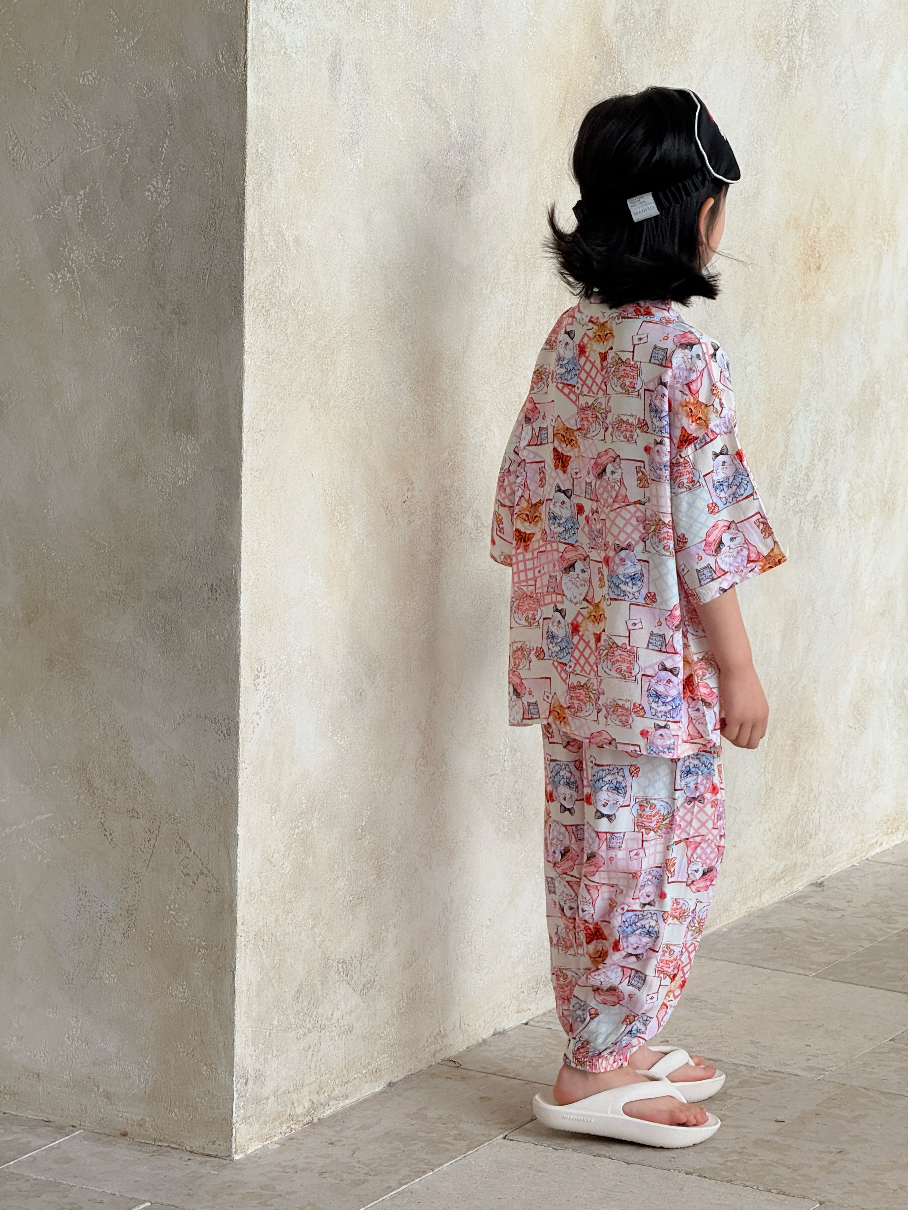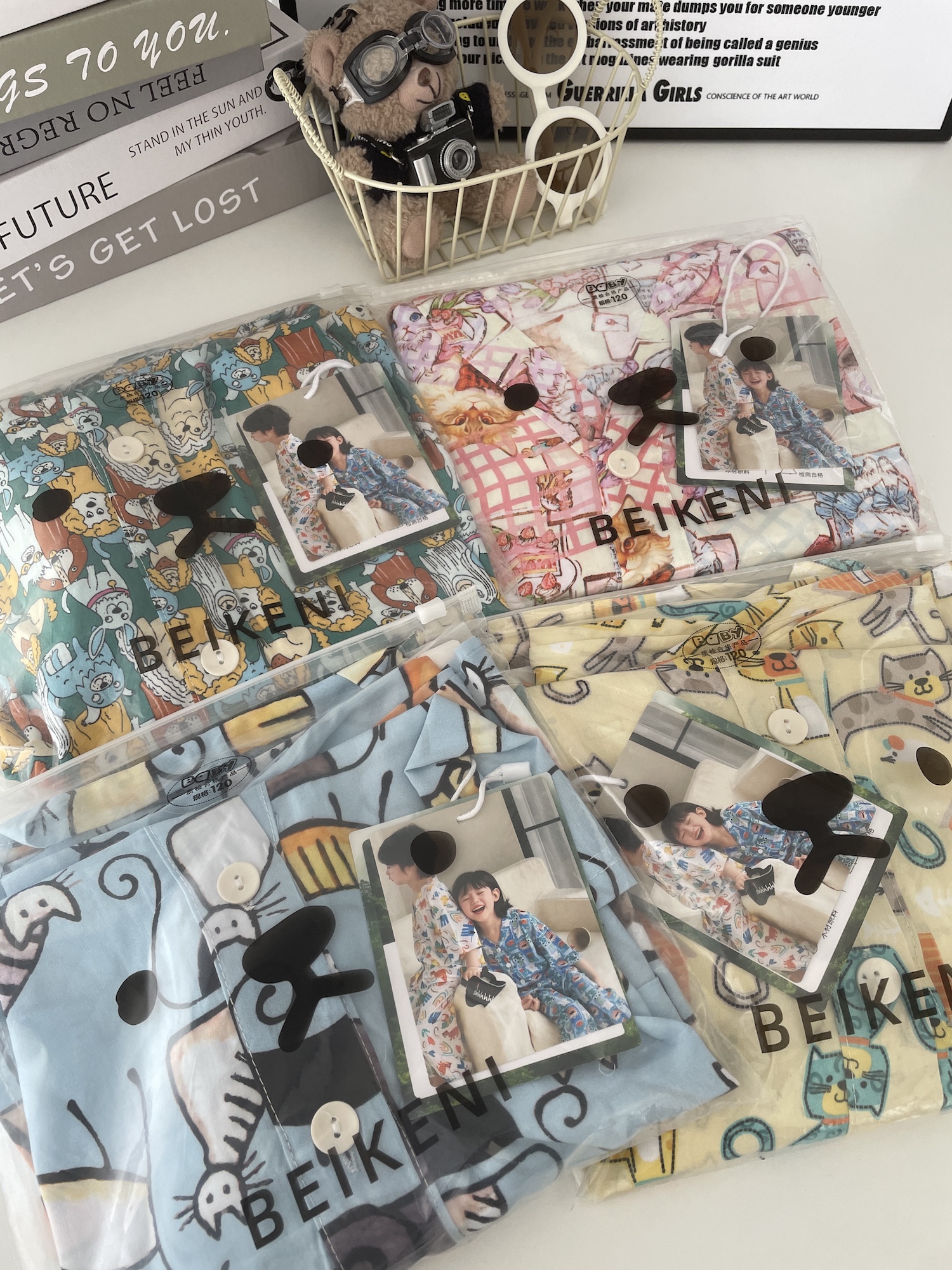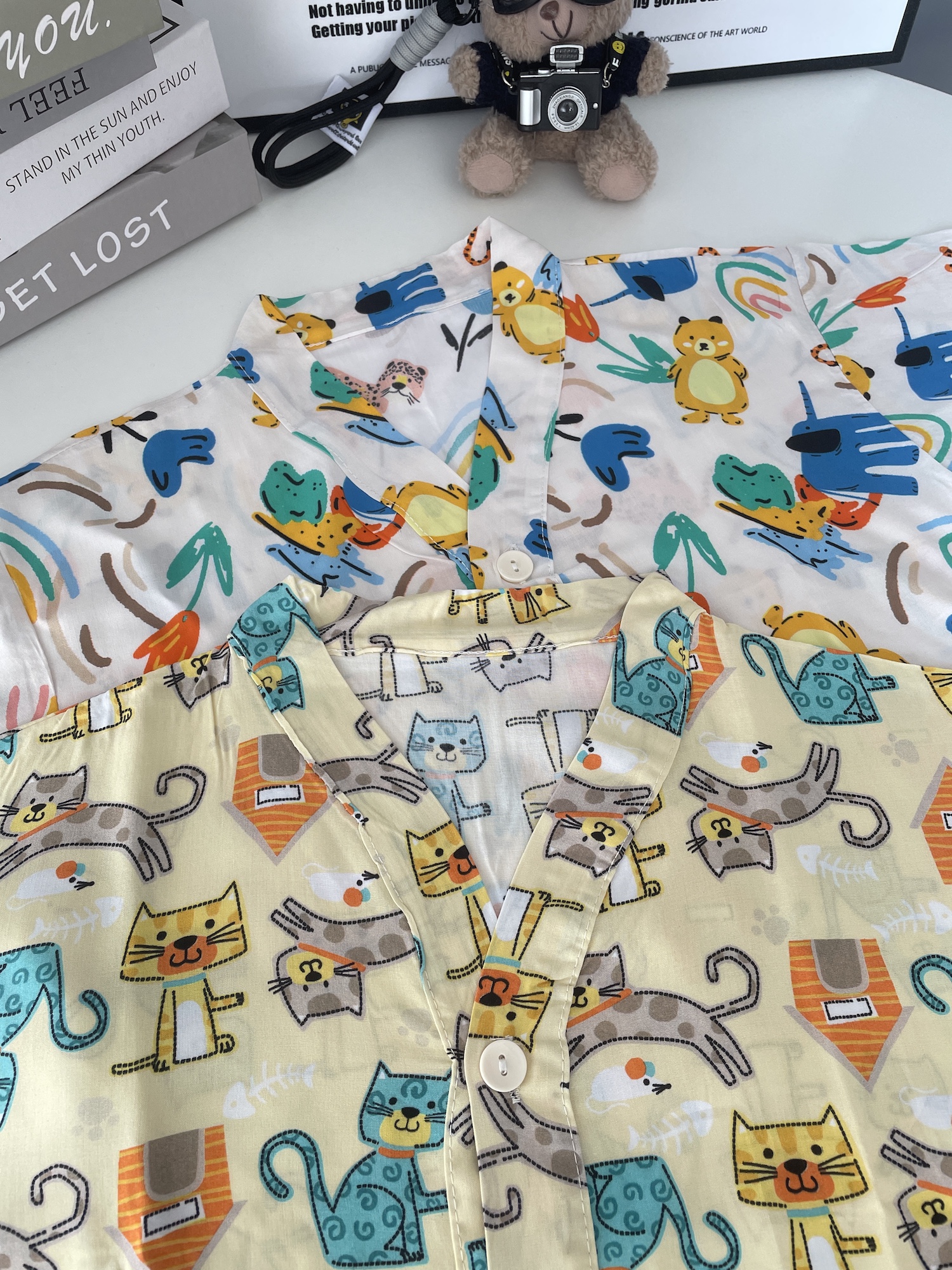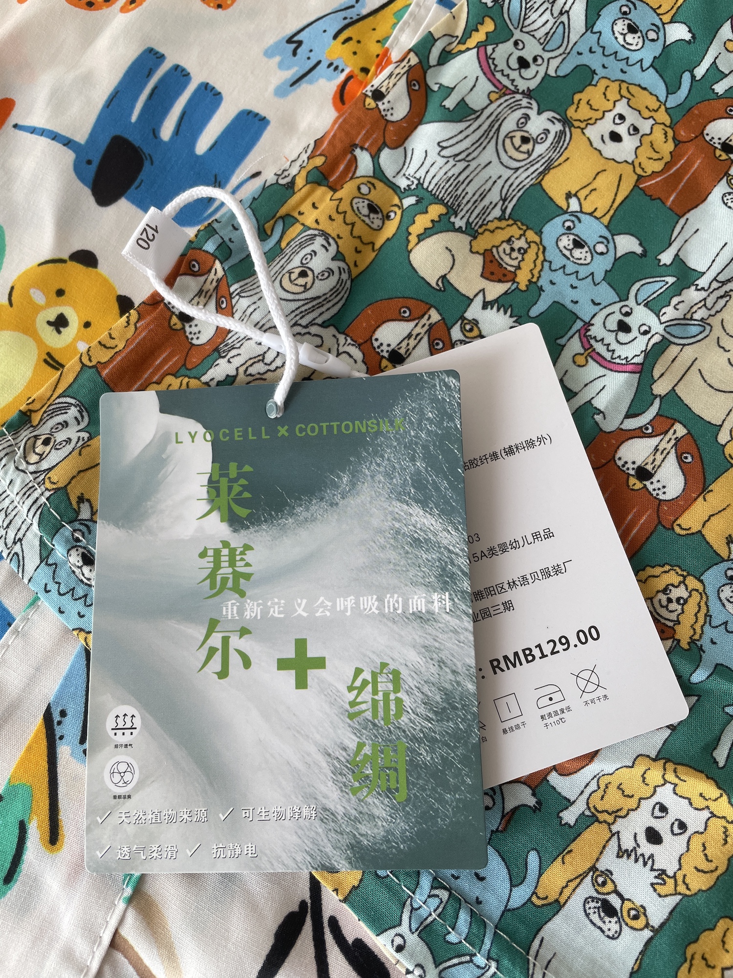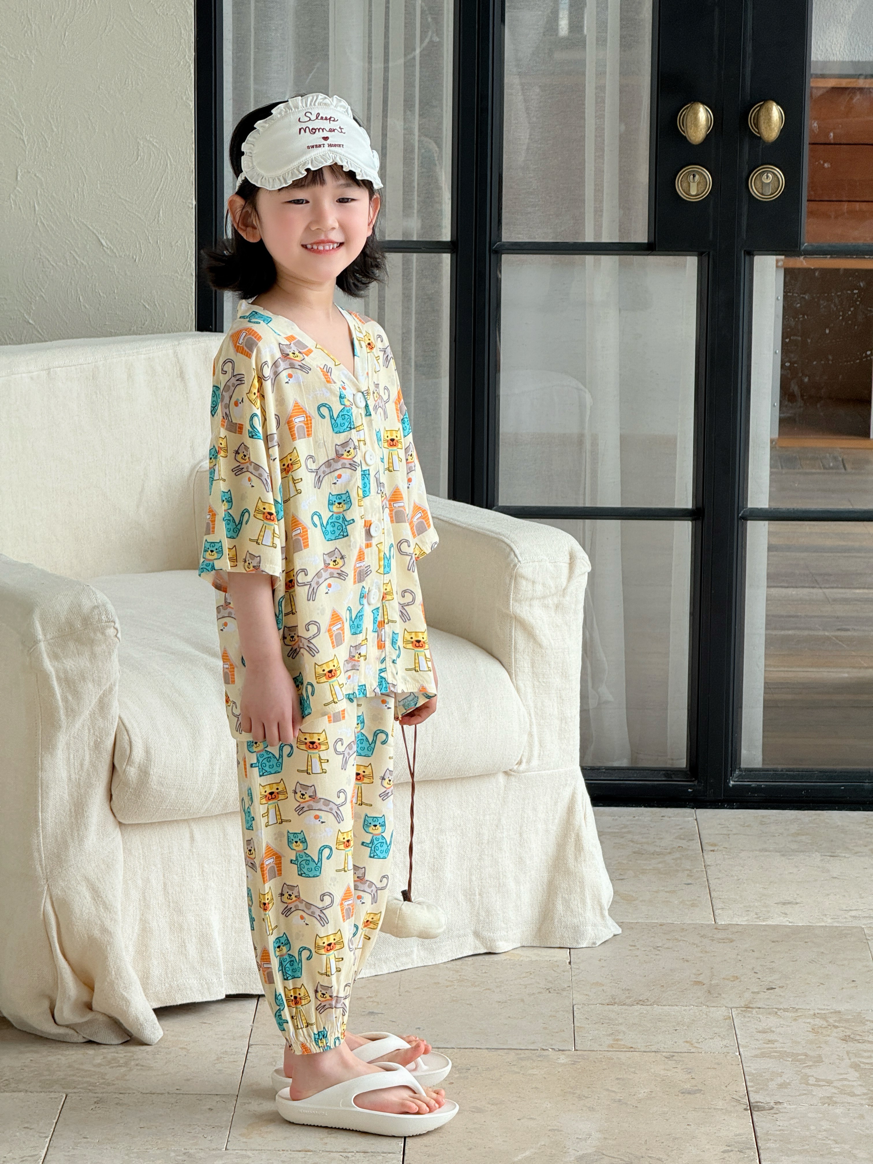 「59.9元2套 短袖➕长裤」喜林贝尔 莱纱绸儿童涂鸦家居服 居家遛弯不惧空调风,不怕蚊子咬
