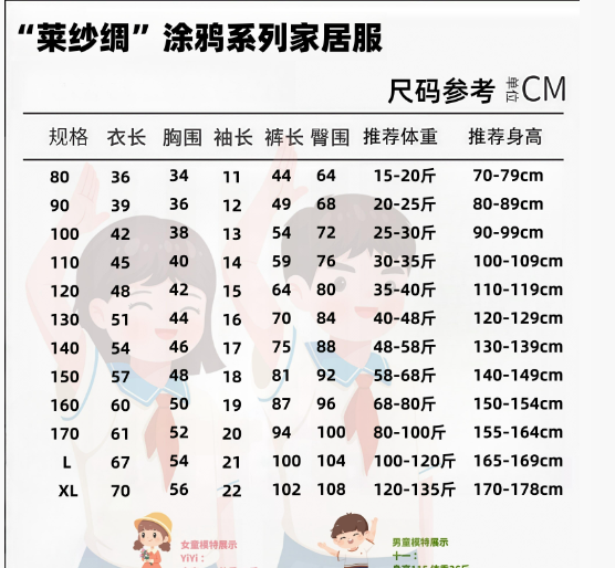 【尺码选择】男女童同款,儿童80-160,成人女士170、L、XL