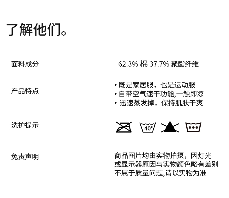 【品名】chunmolife 7A级抗菌冰感棉 可外穿休闲风家居套装 男女款 柔软透气 自带凉感 【规格】 男款:冰川灰、秘境绿、月岩灰 女款:浣纱粉、青柠黄、日暮蓝、芋紫色 【尺码】 女款:均码L 男款:XL、2XL 【产地】国内 【材质】棉62.3% 聚酯纤维37.7% 【发货包装】独立包装 【发货地】浙江 【发货快递】中通 【补邮费地区】新疆、西藏、青海+15/单 甘肃、内蒙、宁夏+5/单 【发货时效】48-72小时,周末节假日顺延 【售后标准】拦截、拒签、已出单号撤单、自取未取退回、更改地址等情况扣除发货运费4元。 |