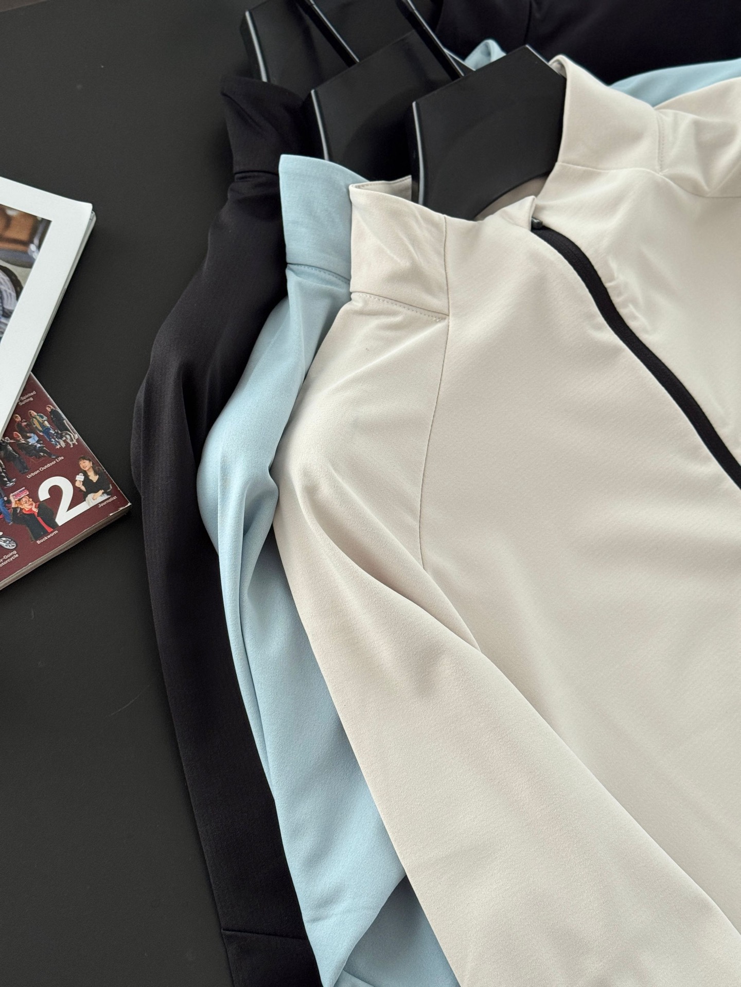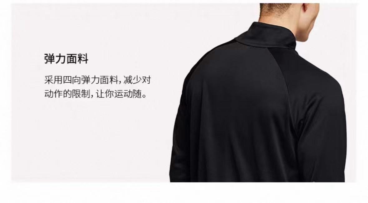 半拉链立领设计精神干练,后背中缝线,上身贴合亚洲男性身材曲线,3d立体剪裁出来的线条,自然流畅,后背都是显气质的!