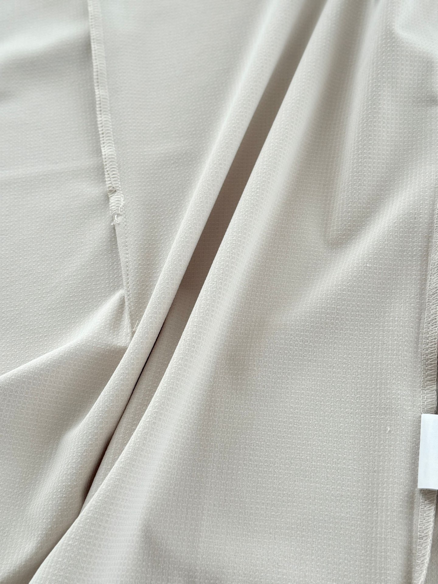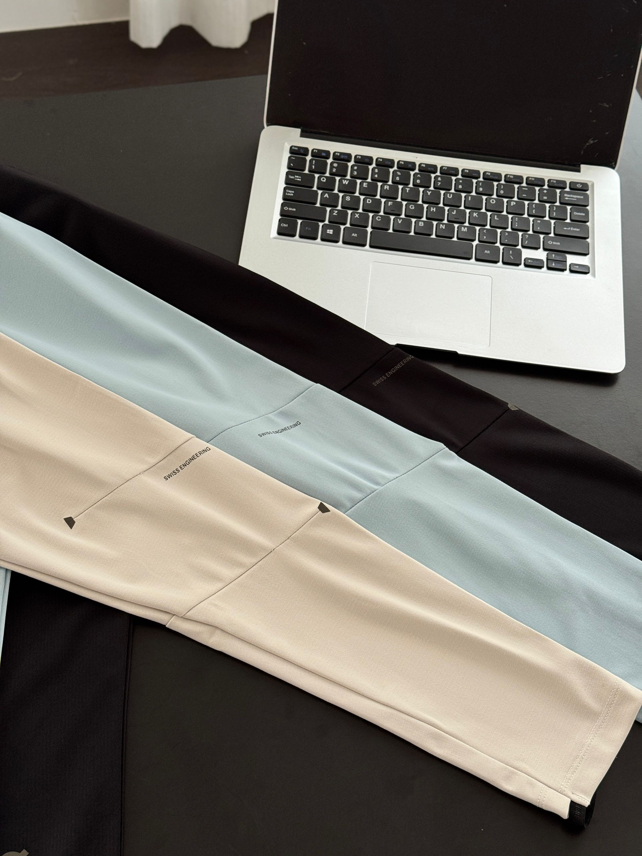 速干四面弹面料,外层织面光洁丝滑有光泽,触感滑爽不粘毛;内里特殊纹理,吸湿透气挥发体表汗汽,大量出汗也可以尽可能保持体感干爽!