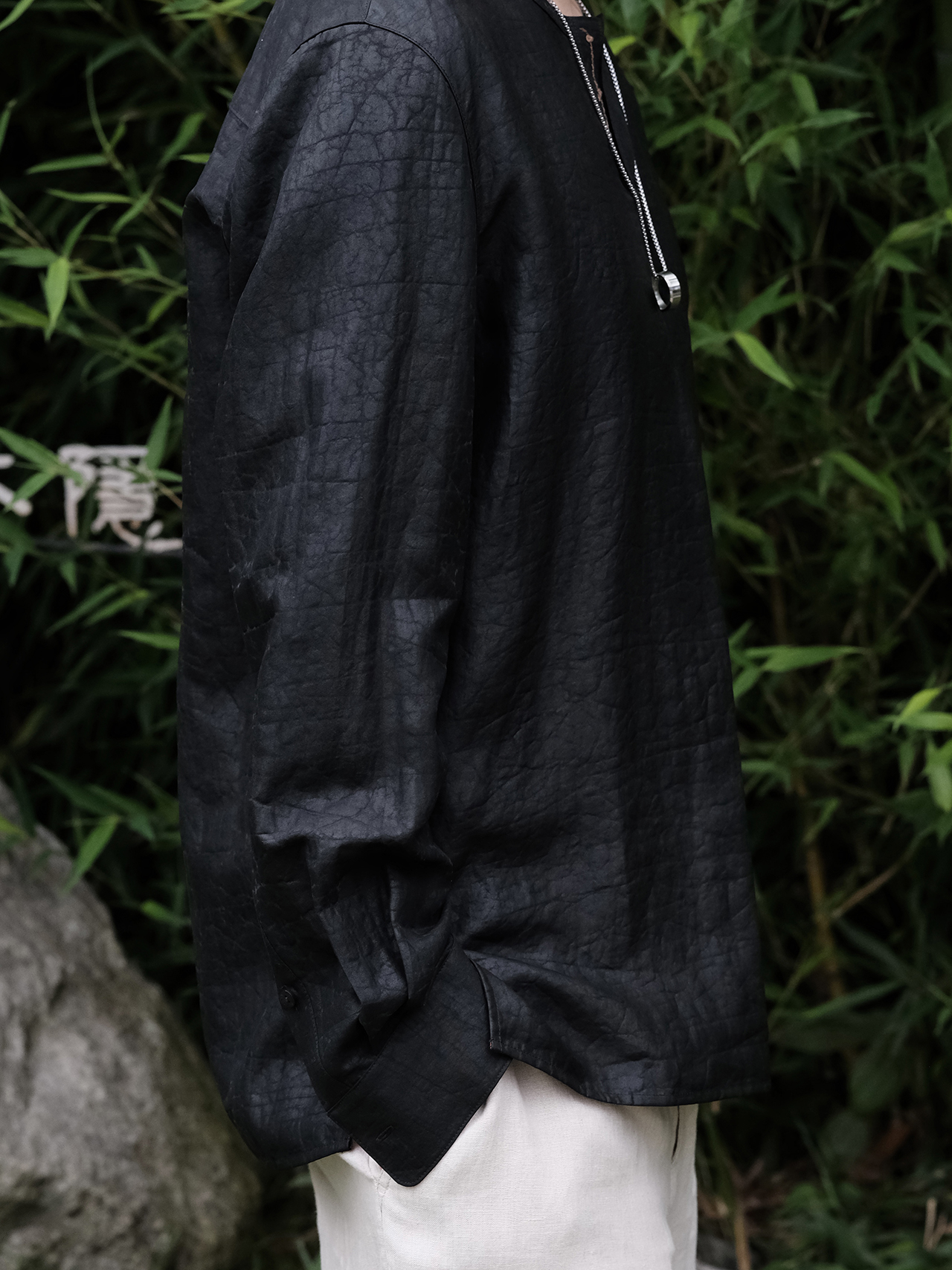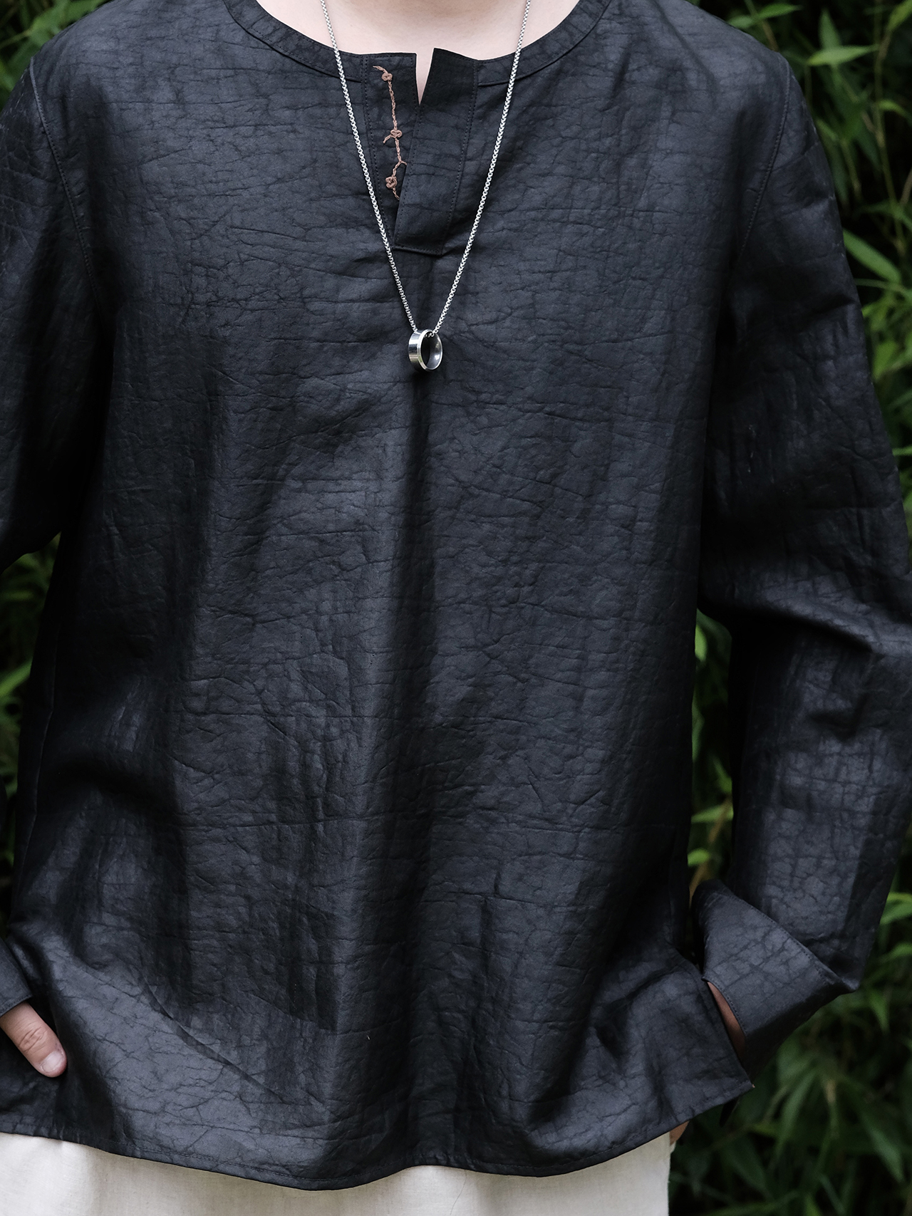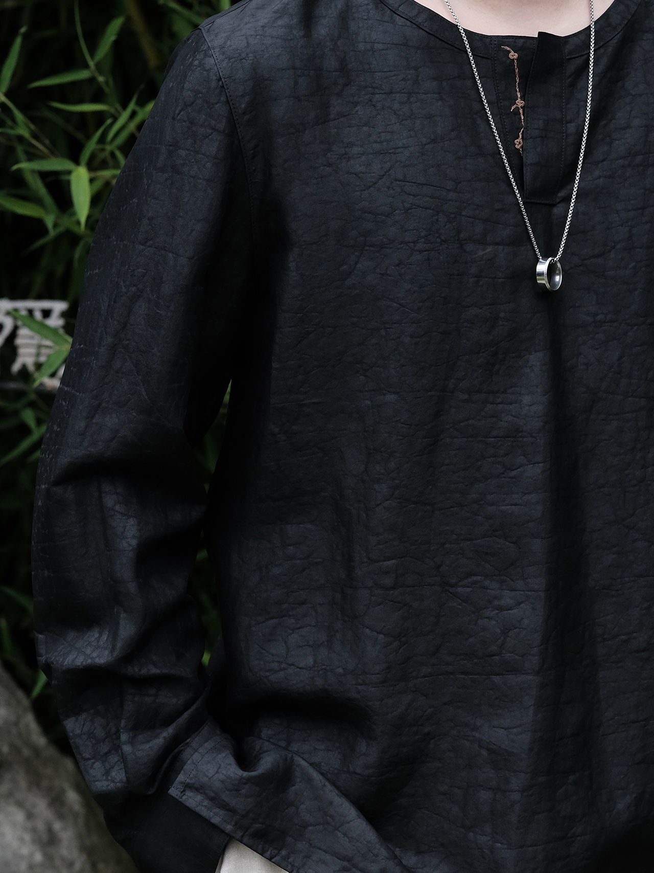 下架 |盛唐婧| 男士龟裂纹莨绸暗筒套头男恤