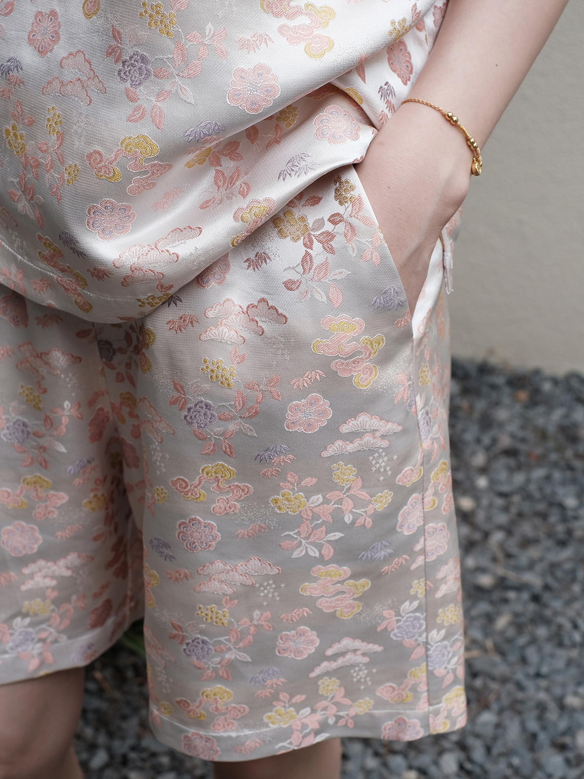 盛唐婧 |真丝宋锦朱颜粉黛短裤